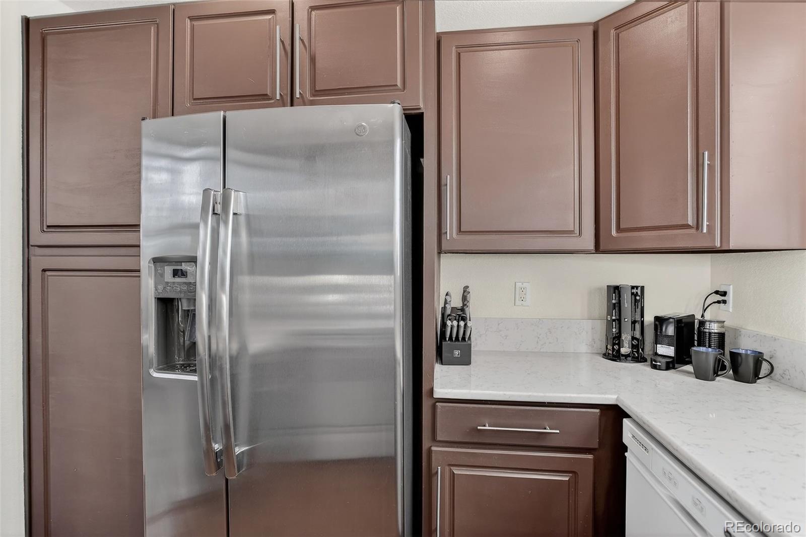 Welcome home! The lovely sunny bright open townhome features 1,319 sf one level living, it is in a beautiful gated community, 2 bedrooms and 2 bathrooms, the kitchen features new quartz counters, all appliances included, a large living room area w/a gas fireplace, a tranquil outdoor space backing to open space with nice trees for privacy, the primary suite offers a large walk-in closet and a full bathroom, the second large bedroom also has a lot of storage and a full size laundry area. There is a one car attached garage with nice storage shelves. New carpet, new flooring in the bathrooms, some new windows and blinds. Centrally located in the community and easy access to Cherry Creek, downtown Denver and DIA.