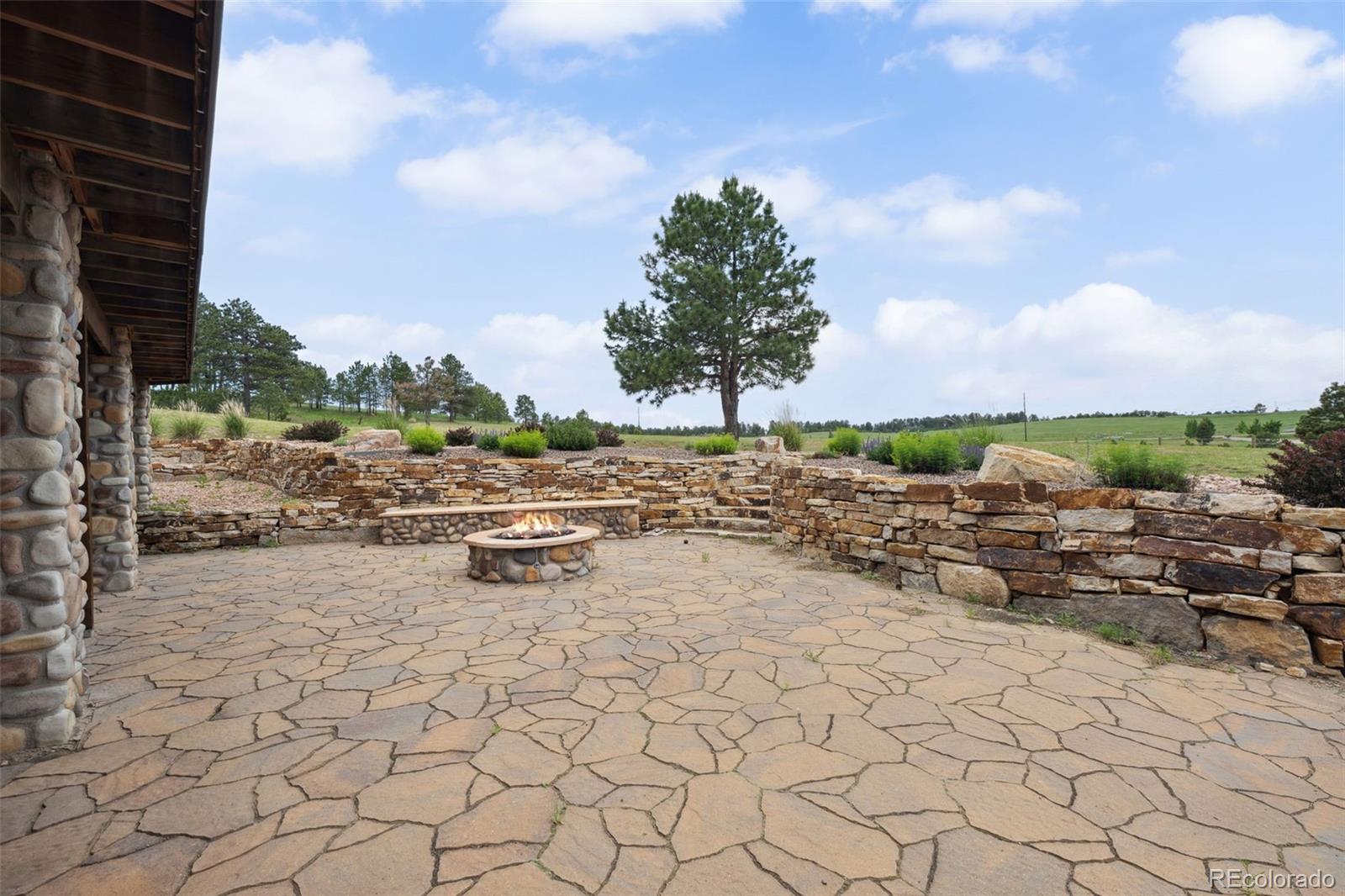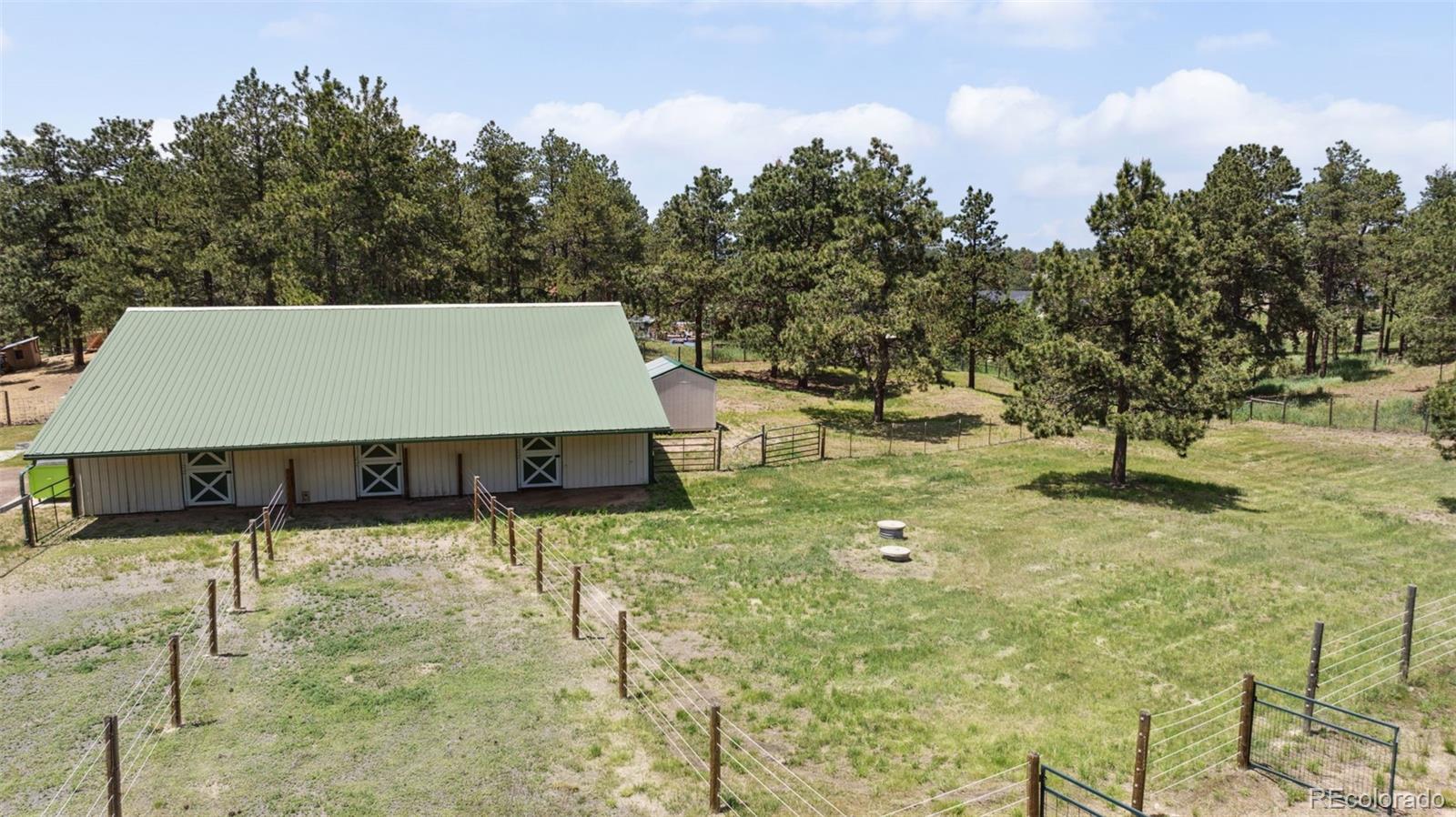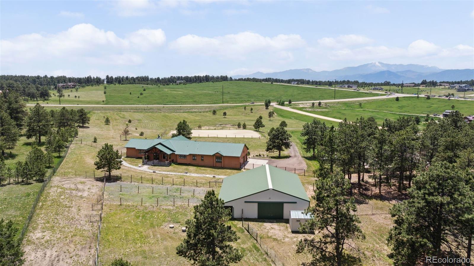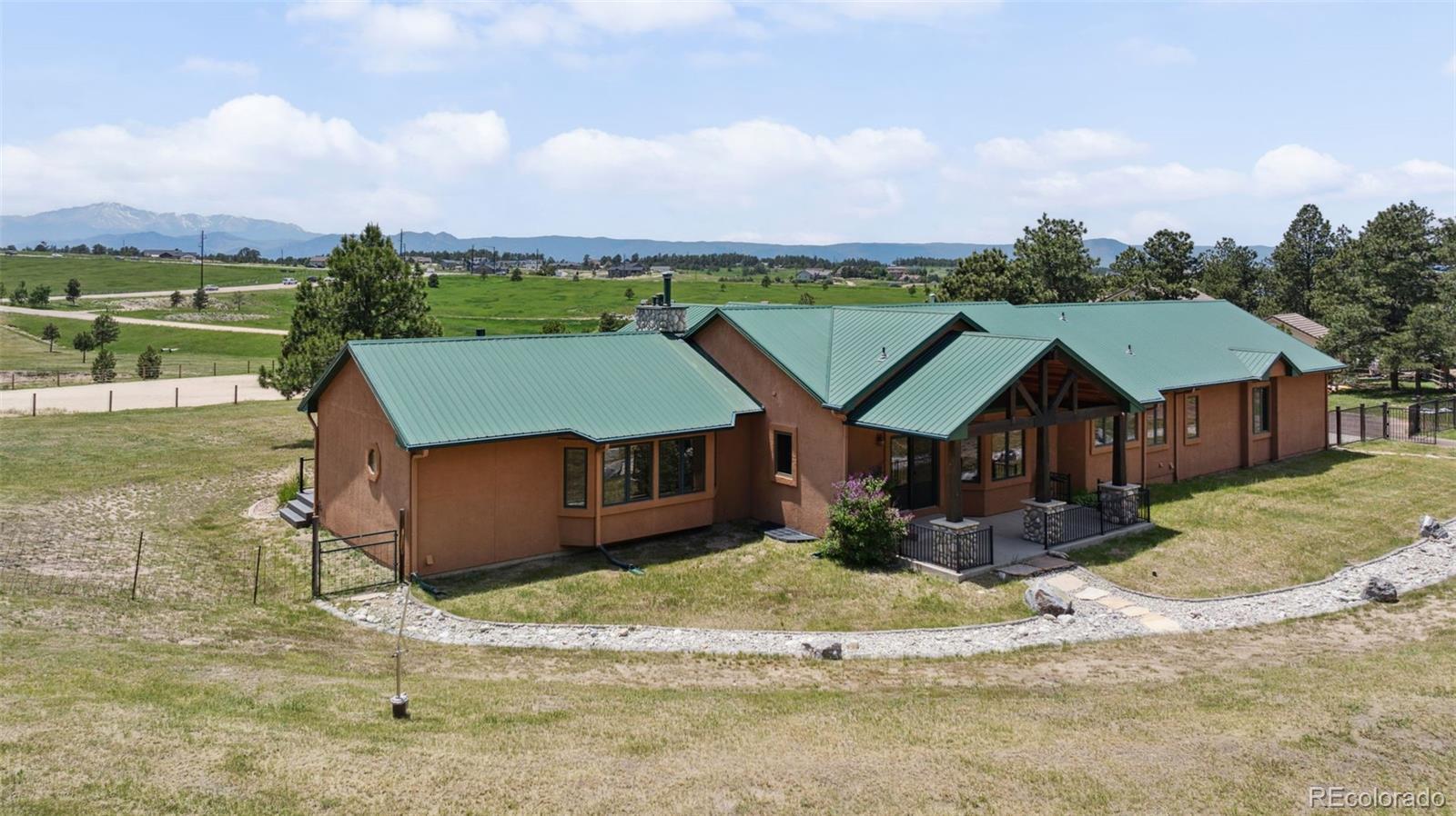 Stunning Ranch-Style Home on 10.66 Acres with Pikes Peak Views. This exceptional property offers the perfect blend of luxury, functionality, and serene country living—just minutes from shopping, dining, Fox Run Park, and with easy access to I-25, Denver, and Downtown Colorado Springs. Step inside the beautifully designed ranch-style home featuring a spacious Great Room with vaulted ceilings and a gourmet kitchen. The kitchen boasts ceramic tile floors, a Decor 6-burner gas stove with griddle, dual ovens, a maple top island, hand-painted tile accents, farm sink, two appliance garages, a prep sink, and a large pantry. The expansive main-level master suite offers its own gas fireplace, 5-piece bath, and direct access to the deck. A second bedroom is privately located in its own wing with an en-suite full bath, perfect for guests or multigenerational living. The main level also includes a formal dining room, stone fireplace, ceramic tile flooring throughout, and plush carpeting in the bedrooms. The finished walk-out basement adds even more living space with a large family room, two large bedrooms with adjoining baths, and a second office or finished storage. Enjoy Colorado’s outdoors year-round on the multiple outdoor living spaces, which includes a spacious covered deck, gas firepit area and a hot tub all offering breathtaking Pikes Peak views. Whether entertaining or relaxing, this home has it all. Equestrian and hobby enthusiasts will appreciate the 45' x 56' metal barn featuring three stall doors & two stalls, a 9-foot east-side overhang, electricity, water hydrant, a riding arena and a fenced turnout area—plus additional fenced pastures ideal for horses. The oversized 4-car attached garage is double-deep and includes an oil change service pit. Two gas furnaces separately controlled, AC, 2 water heaters, Cove heaters in bedrooms, heated bath floors, Generator hookup in garage, up to 4 horses or equivalent. Colorado living at its finest!