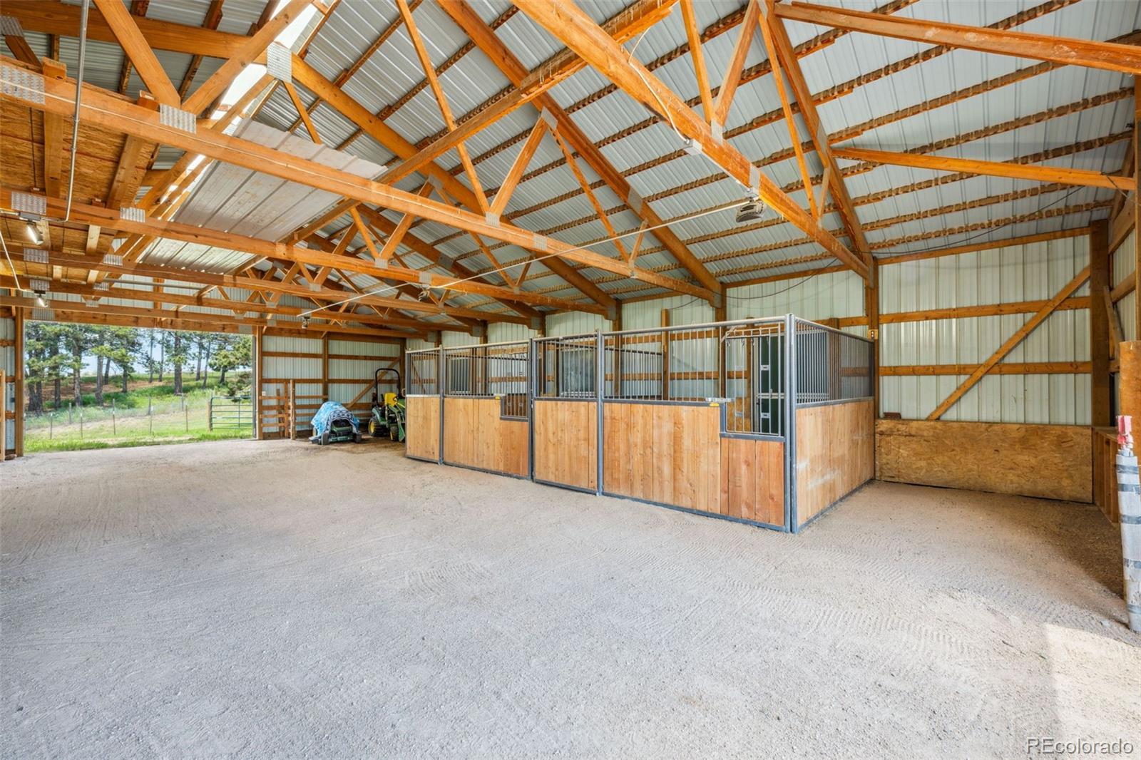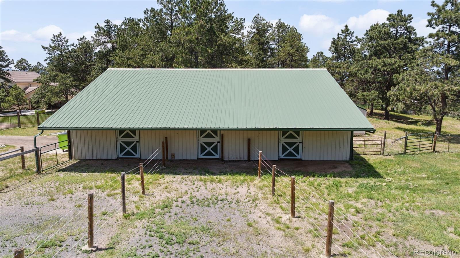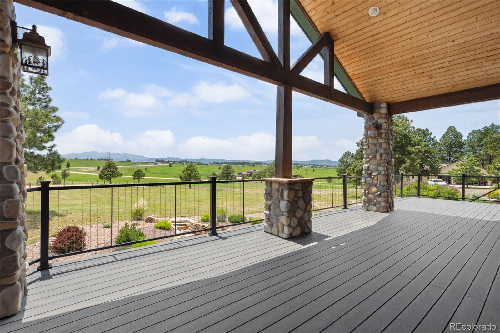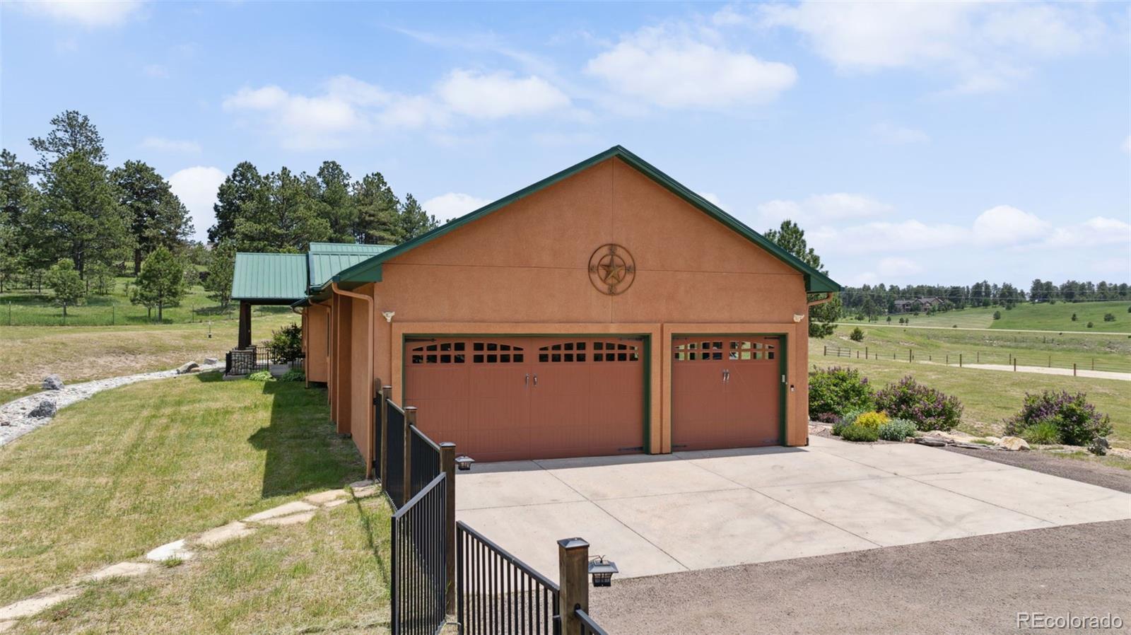 Stunning Ranch-Style Home on 10.66 Acres with Pikes Peak Views. This exceptional property offers the perfect blend of luxury, functionality, and serene country living—just minutes from shopping, dining, Fox Run Park, and with easy access to I-25, Denver, and Downtown Colorado Springs. Step inside the beautifully designed ranch-style home featuring a spacious Great Room with vaulted ceilings and a gourmet kitchen. The kitchen boasts ceramic tile floors, a Decor 6-burner gas stove with griddle, dual ovens, a maple top island, hand-painted tile accents, farm sink, two appliance garages, a prep sink, and a large pantry. The expansive main-level master suite offers its own gas fireplace, 5-piece bath, and direct access to the deck. A second bedroom is privately located in its own wing with an en-suite full bath, perfect for guests or multigenerational living. The main level also includes a formal dining room, stone fireplace, ceramic tile flooring throughout, and plush carpeting in the bedrooms. The finished walk-out basement adds even more living space with a large family room, two large bedrooms with adjoining baths, and a second office or finished storage. Enjoy Colorado’s outdoors year-round on the multiple outdoor living spaces, which includes a spacious covered deck, gas firepit area and a hot tub all offering breathtaking Pikes Peak views. Whether entertaining or relaxing, this home has it all. Equestrian and hobby enthusiasts will appreciate the 45' x 56' metal barn featuring three stall doors & two stalls, a 9-foot east-side overhang, electricity, water hydrant, a riding arena and a fenced turnout area—plus additional fenced pastures ideal for horses. The oversized 4-car attached garage is double-deep and includes an oil change service pit. Two gas furnaces separately controlled, AC, 2 water heaters, Cove heaters in bedrooms, heated bath floors, Generator hookup in garage, up to 4 horses or equivalent. Colorado living at its finest!