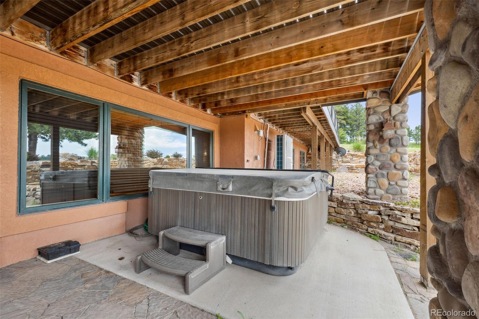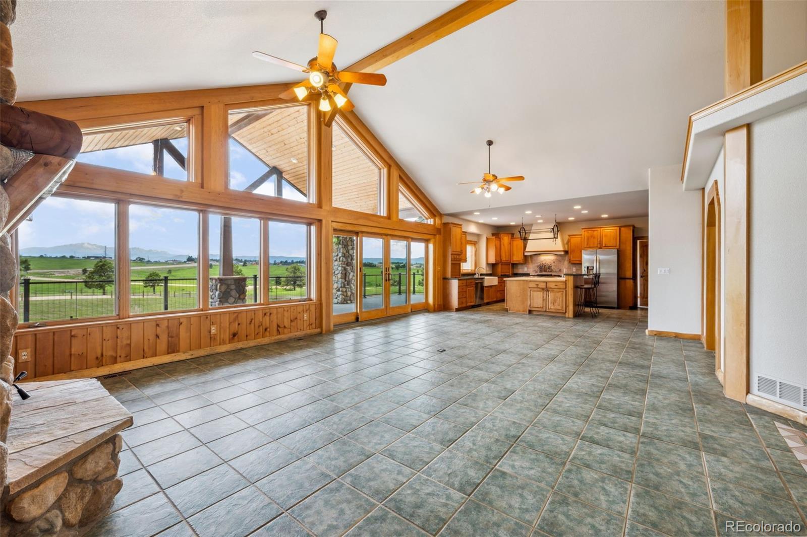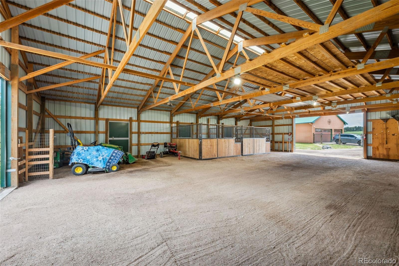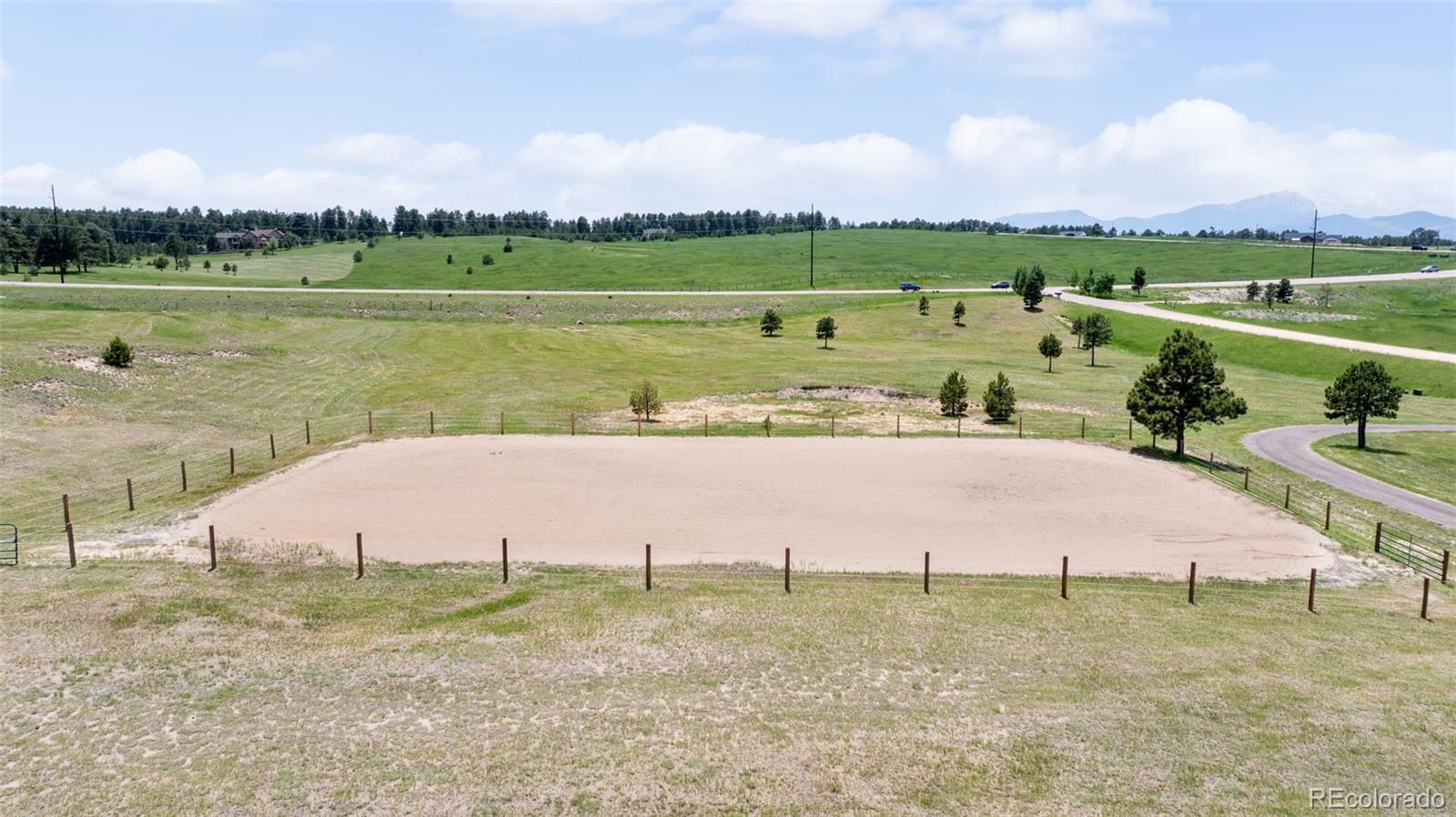 Stunning Ranch-Style Home on 10.66 Acres with Pikes Peak Views. This exceptional property offers the perfect blend of luxury, functionality, and serene country living—just minutes from shopping, dining, Fox Run Park, and with easy access to I-25, Denver, and Downtown Colorado Springs. Step inside the beautifully designed ranch-style home featuring a spacious Great Room with vaulted ceilings and a gourmet kitchen. The kitchen boasts ceramic tile floors, a Decor 6-burner gas stove with griddle, dual ovens, a maple top island, hand-painted tile accents, farm sink, two appliance garages, a prep sink, and a large pantry. The expansive main-level master suite offers its own gas fireplace, 5-piece bath, and direct access to the deck. A second bedroom is privately located in its own wing with an en-suite full bath, perfect for guests or multigenerational living. The main level also includes a formal dining room, stone fireplace, ceramic tile flooring throughout, and plush carpeting in the bedrooms. The finished walk-out basement adds even more living space with a large family room, two large bedrooms with adjoining baths, and a second office or finished storage. Enjoy Colorado’s outdoors year-round on the multiple outdoor living spaces, which includes a spacious covered deck, gas firepit area and a hot tub all offering breathtaking Pikes Peak views. Whether entertaining or relaxing, this home has it all. Equestrian and hobby enthusiasts will appreciate the 45' x 56' metal barn featuring three stall doors & two stalls, a 9-foot east-side overhang, electricity, water hydrant, a riding arena and a fenced turnout area—plus additional fenced pastures ideal for horses. The oversized 4-car attached garage is double-deep and includes an oil change service pit. Two gas furnaces separately controlled, AC, 2 water heaters, Cove heaters in bedrooms, heated bath floors, Generator hookup in garage, up to 4 horses or equivalent. Colorado living at its finest!