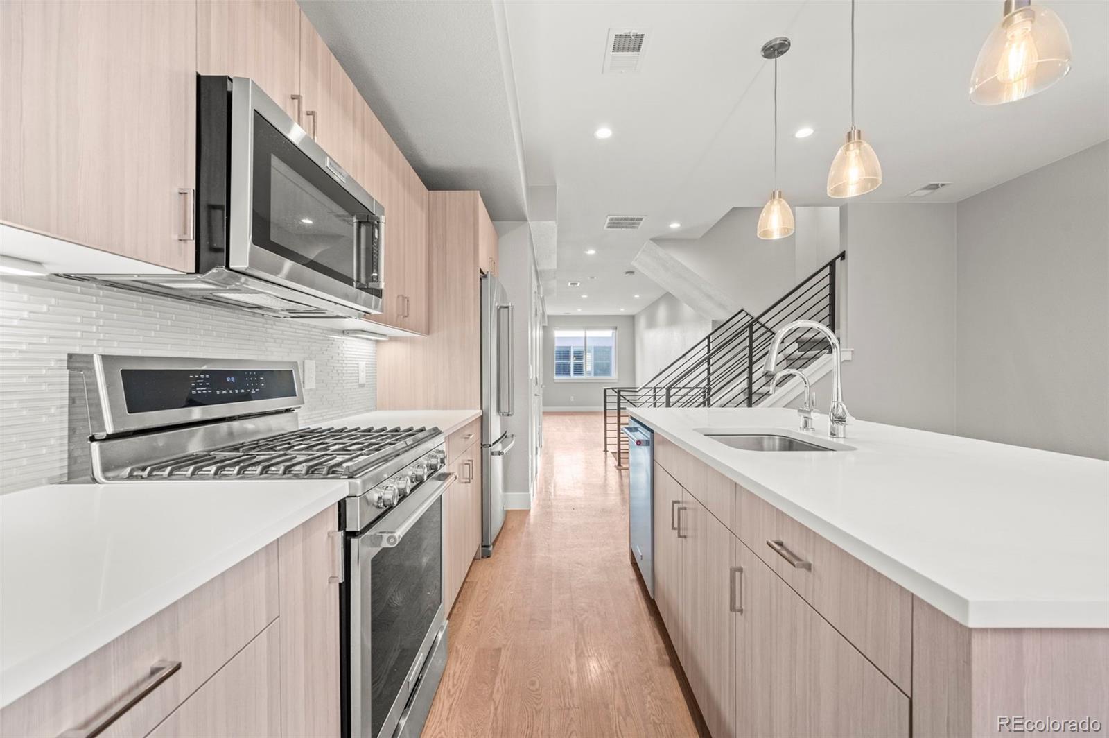 Are you looking to live in the city close to everything? This is your opportunity to rent a move-in ready row home in LoHi. This fantastic home boasts two large sized bedrooms and four bathrooms. On the main floor, you have the oversized tandem garage with plenty of storage, powder bath and coat closet. Up the stairs, you'll find a spacious and bright living room with gas fireplace, gourmet kitchen with countertop seating, separate dining room and additional powder room. Upstairs, you will find a large primary bedroom an en suite primary bathroom with dual vanities and tub/shower combo. On the fourth floor, you have a bonus room and two rooftop decks with gorgeous views of Downtown Denver. This unit was built in 2018 and barely lived in and very well cared for. Just a stones throw from amazing restaurants, shops, parks and quick access to the freeway.