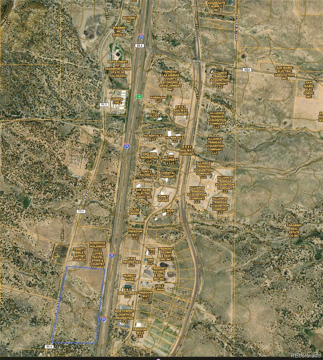 Discover over 36 acres of prime, buildable land offering unparalleled opportunity and visibility, perfectly positioned with easy access off a maintained county road and bordering I-25. With thousands of vehicles passing daily, this location ensures maximum exposure, whether you envision building a home, establishing a business, or both. Enjoy stunning views of Fishers Peak and the convenience of being just minutes from downtown Trinidad's vibrant shopping, dining, and event scene. Outdoor enthusiasts will love the proximity to two state parks, one with lake access and both featuring extensive trail systems. This property is a rare blend of accessibility, visibility, and natural beauty—ready to bring your vision to life! This property adjoins an 11.5 acre property to the north that is also for sale - giving additional acreage, large I-25 frontage and increasing the possibilities!