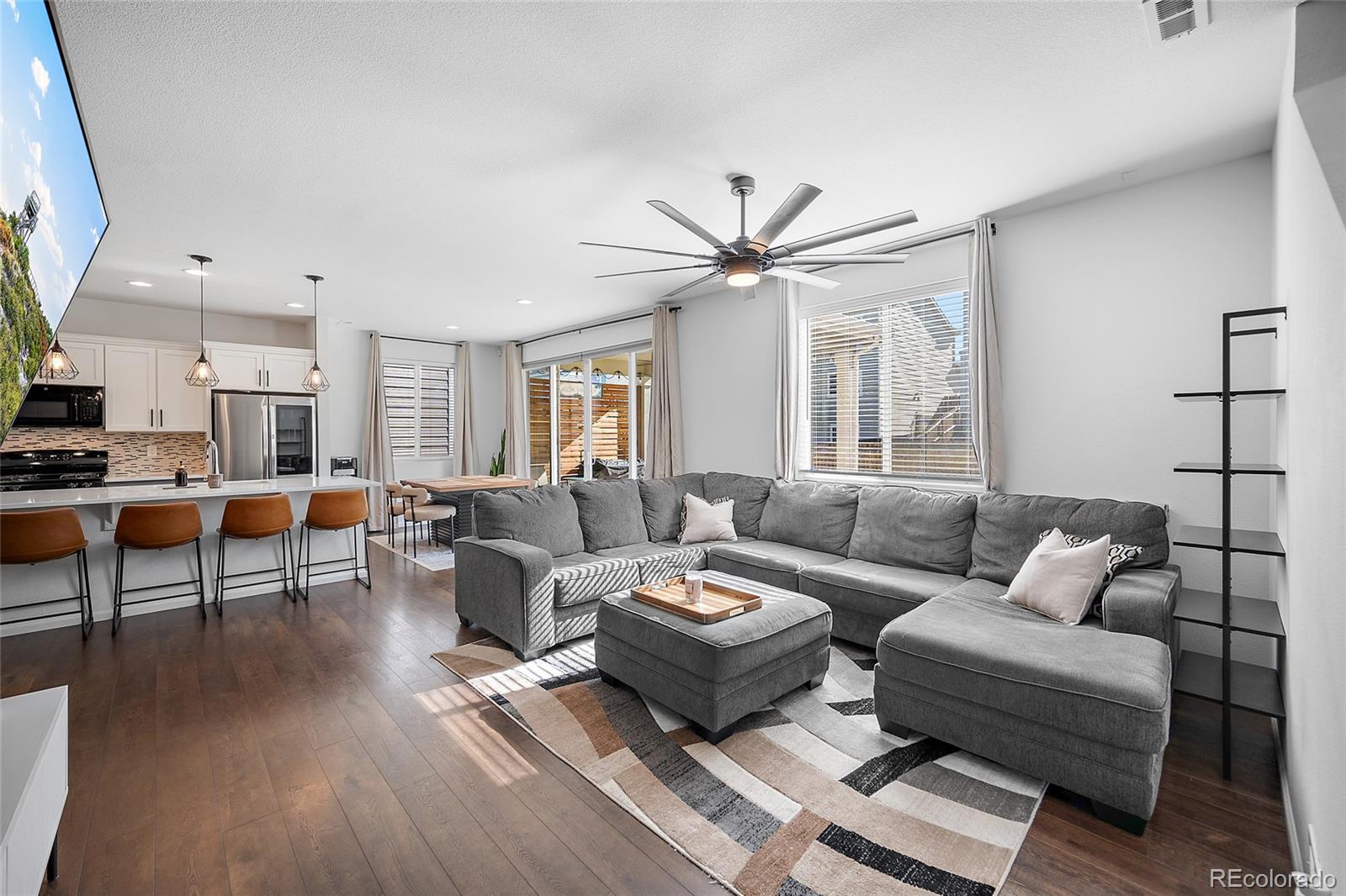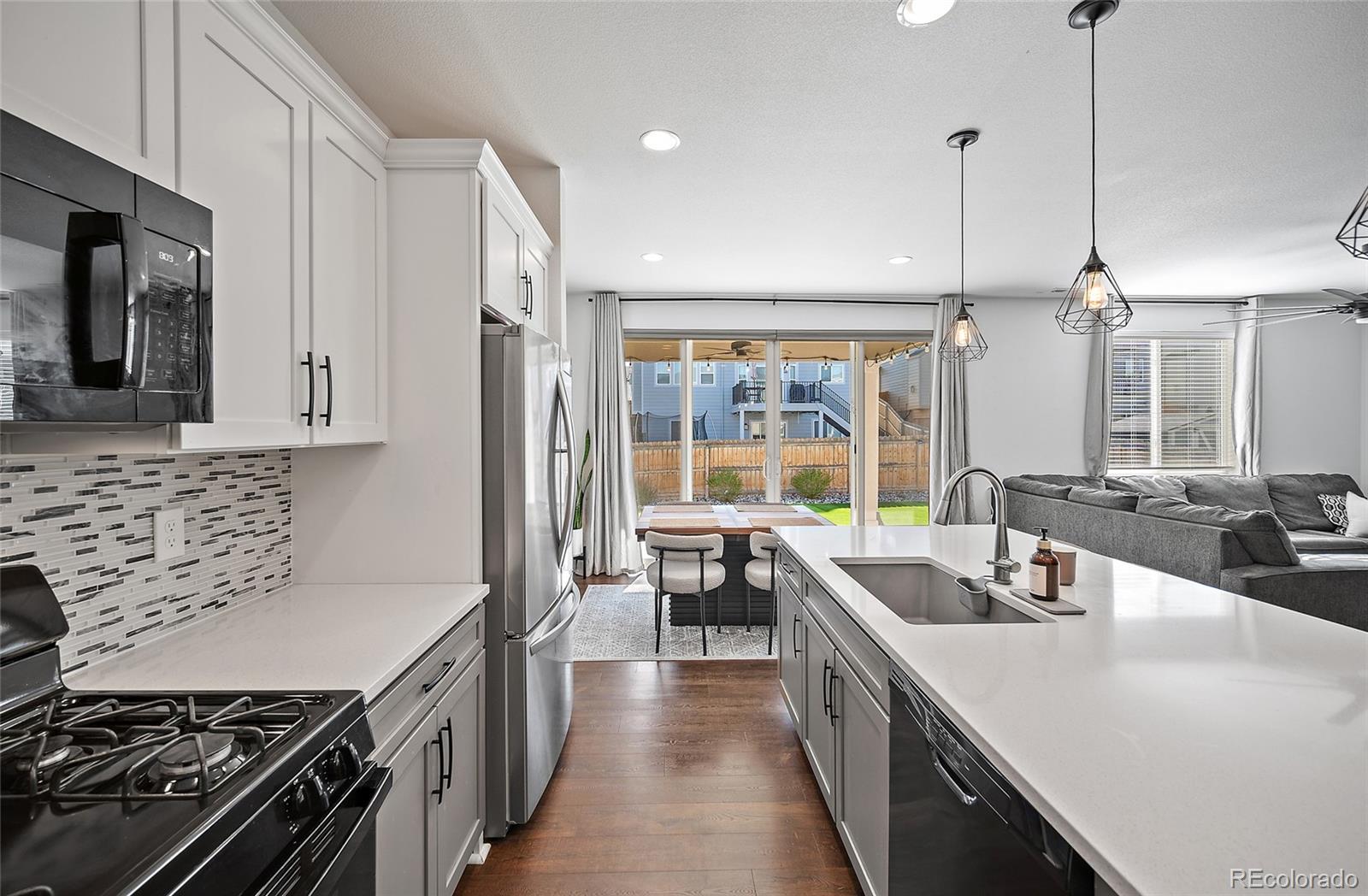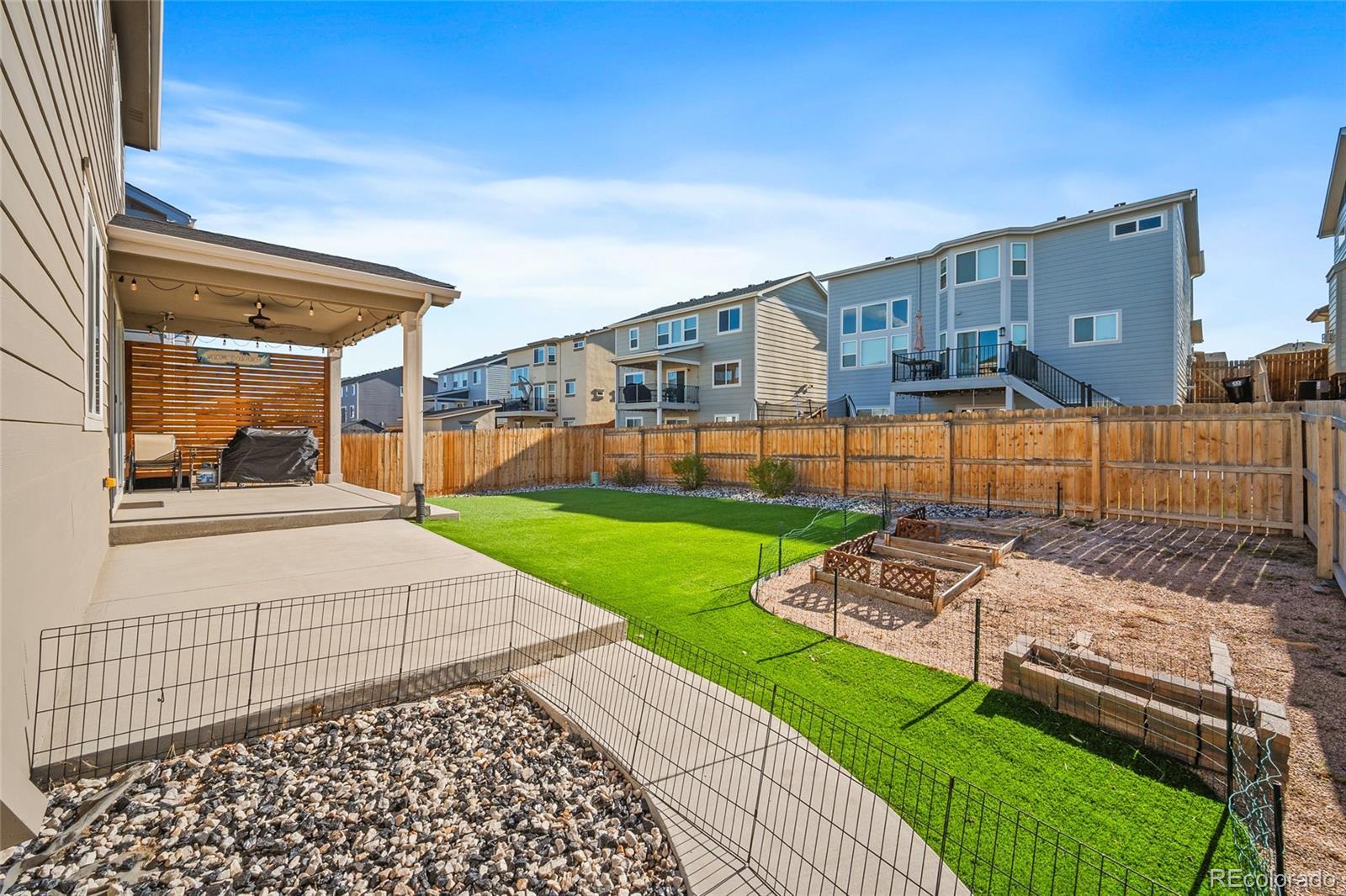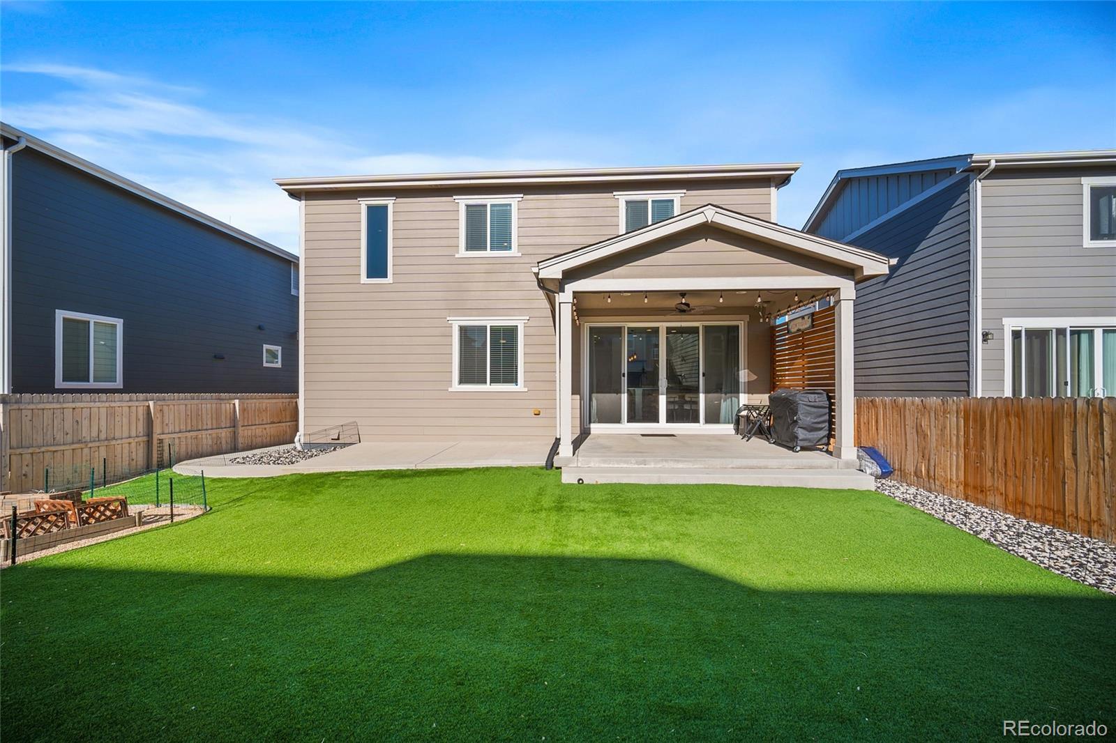 WELCOME HOME to this beautifully maintained 2 story home with so many EXTRAS!! The spacious kitchen features all stainless steel appliances, including gas stove, the large island is perfect for creating meals and there is plenty of space for seating, there is plenty of storage with a pantry and cabinet space, make sure to check out the beautiful backsplash that finishes off this space. The kitchen opens to the dining area with walk out to large extended covered patio and beautifully maintained fenced yard. The living room is a great place to relax and you will love the custom black paneled accent wall that also extends to the entry area. Upstairs you will enjoy the extra living space in the large loft, the primary bedroom with adjoined bath and a large walk in closet, there are 2 additional bedrooms, a full bath and laundry area. This home is conveniently located to just about everything schools, parks, hiking trails, shopping, restaurants and all types of entertainment on Powers Corridor, Peterson AFB, Schriever AFB and 10 minutes to Fort Carson! You don't want to miss this gem, it will not last long call for your private showing today!