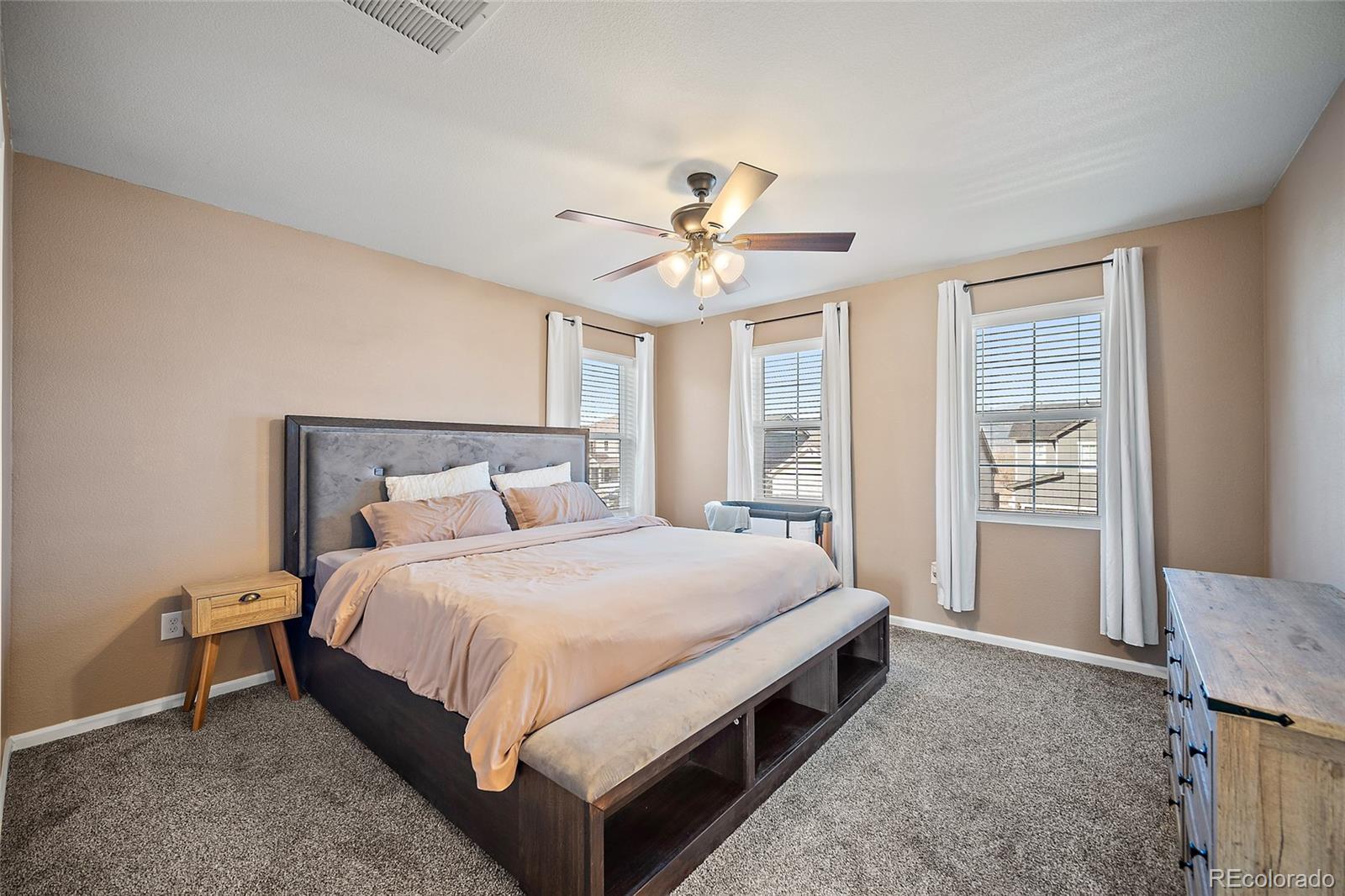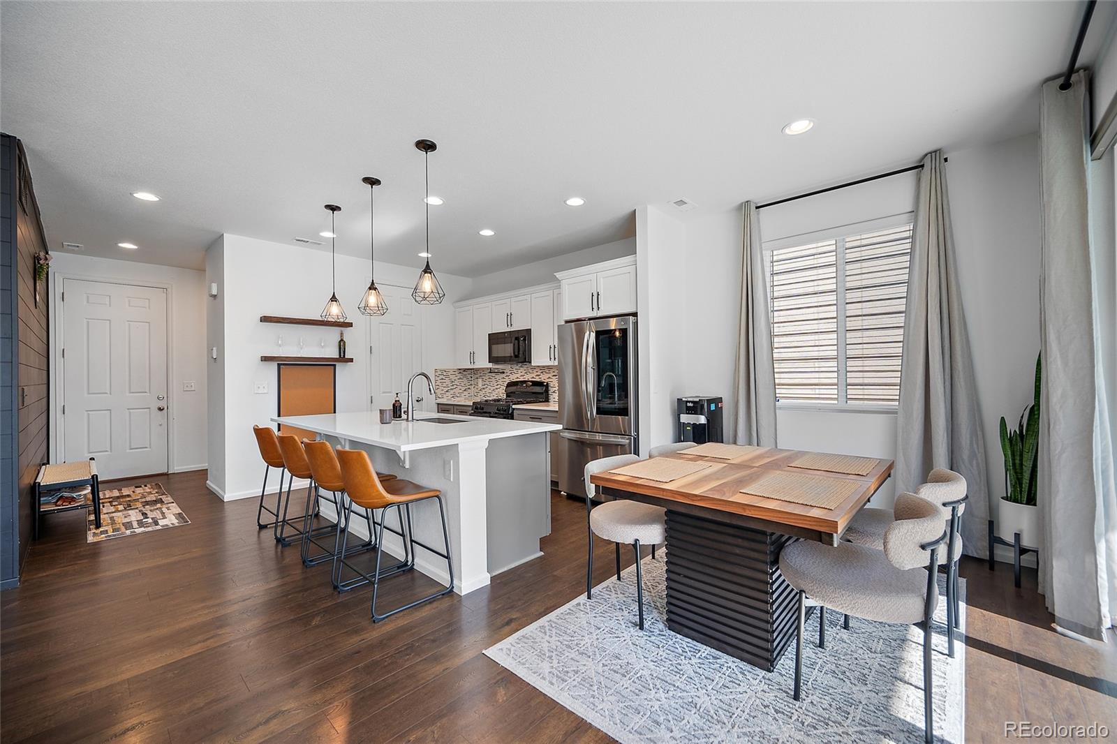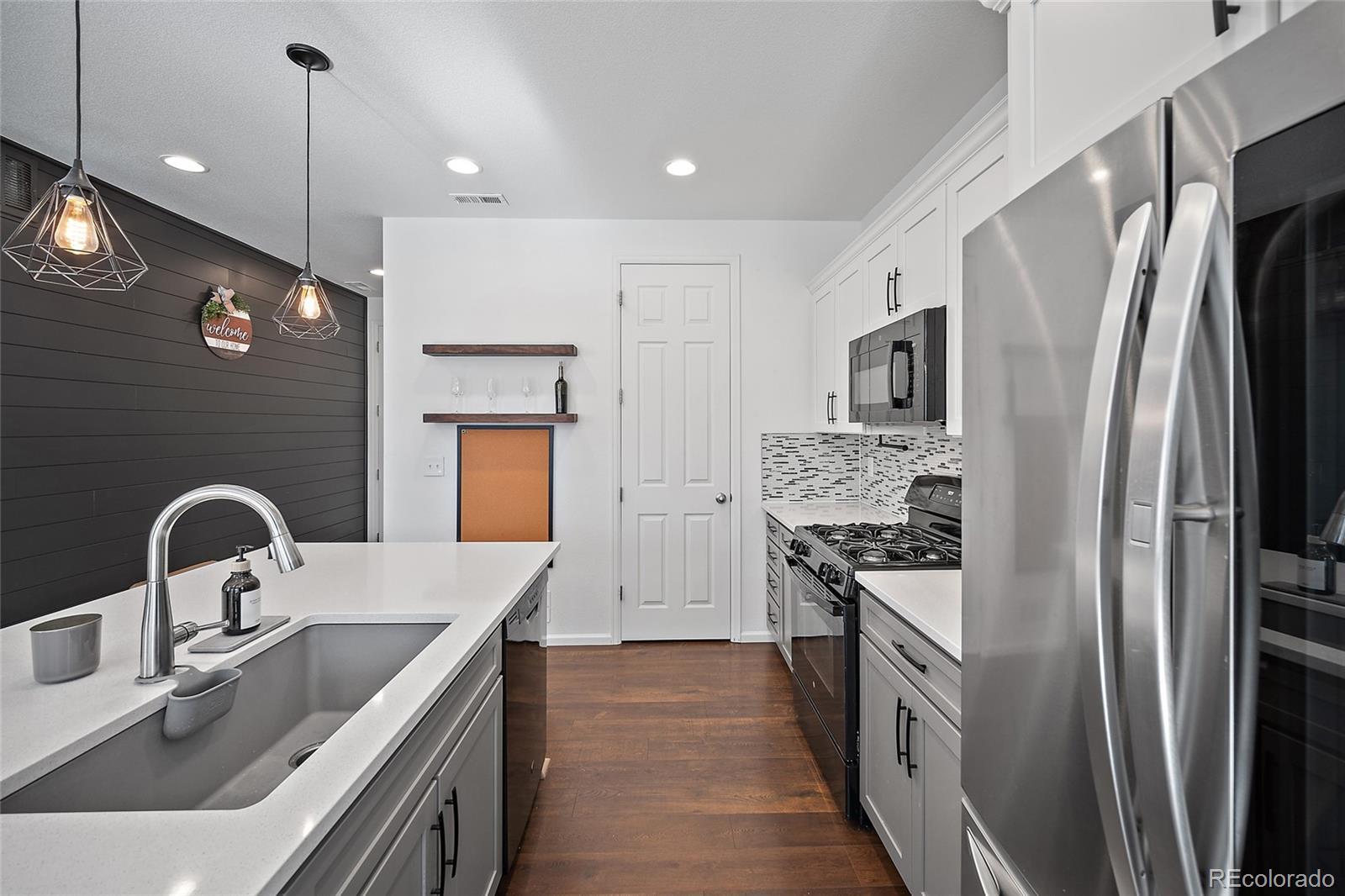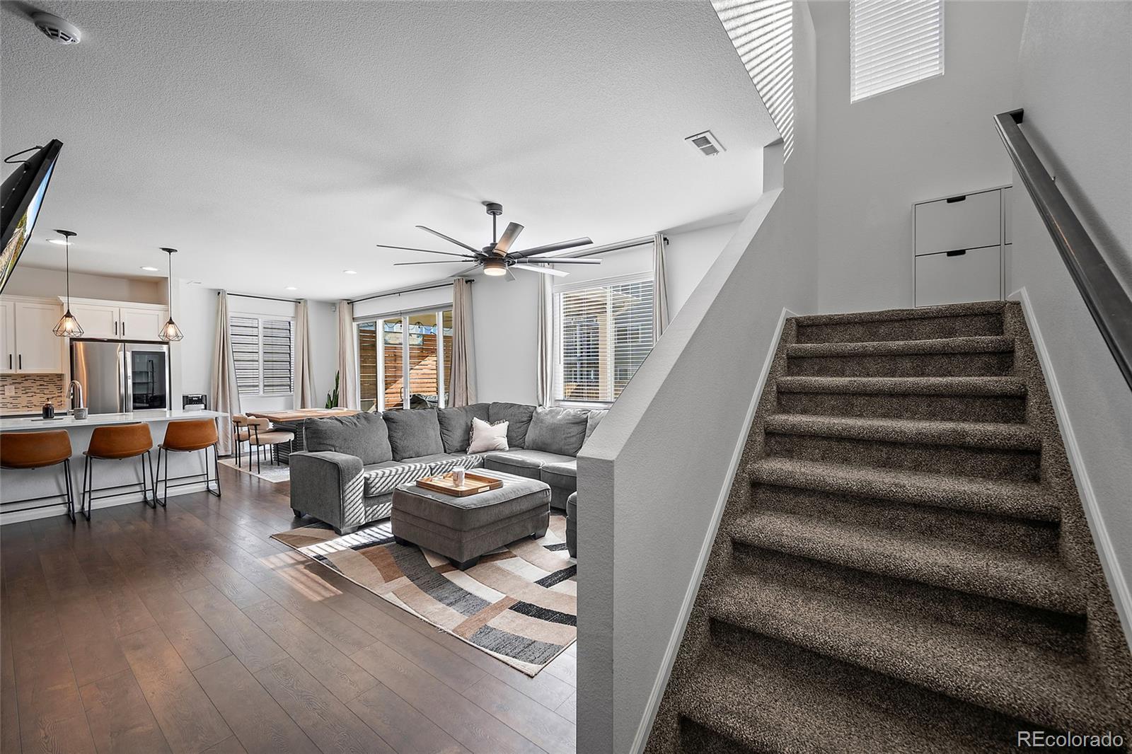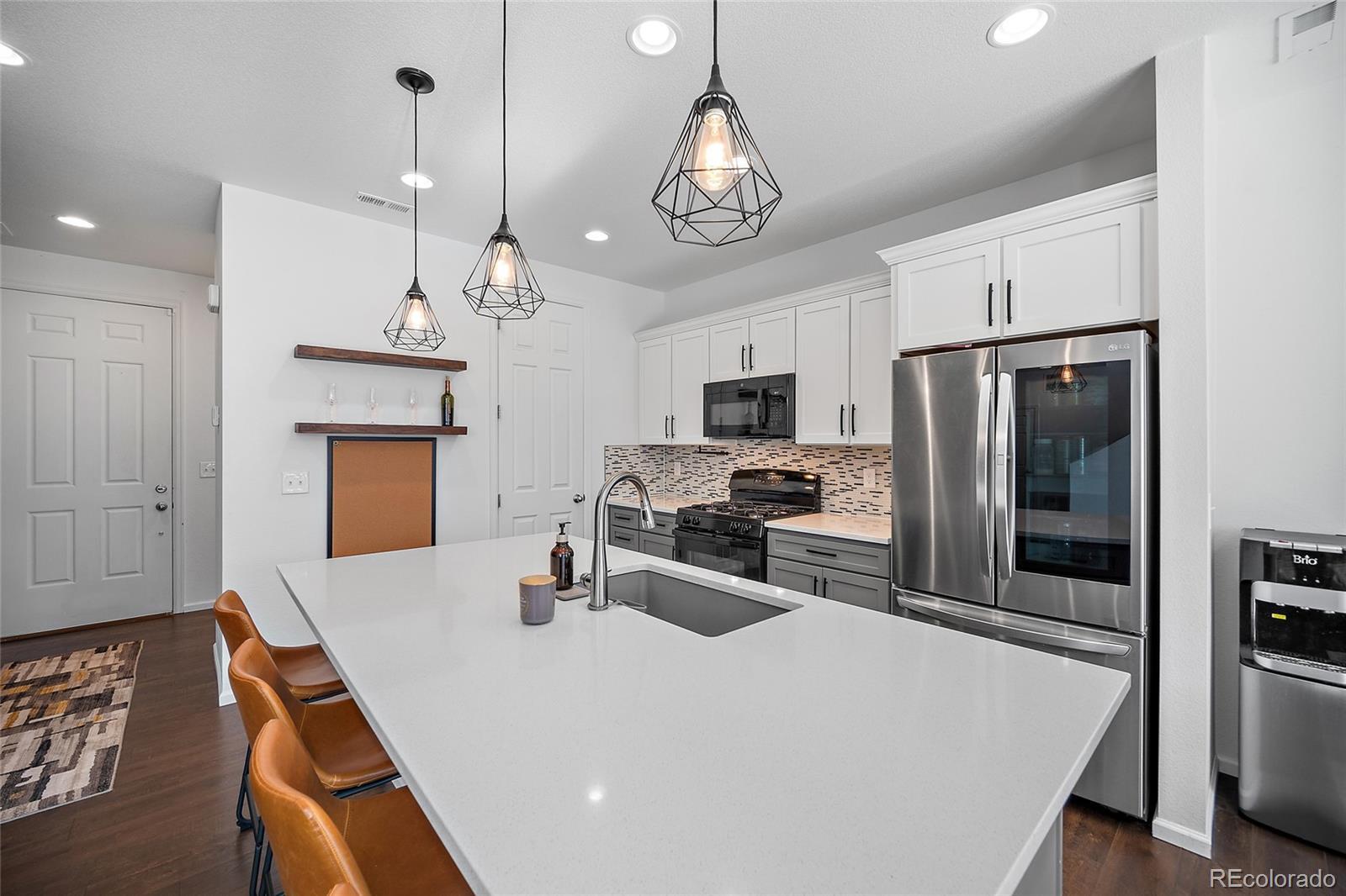 WELCOME HOME to this beautifully maintained 2 story home with so many EXTRAS!! The spacious kitchen features all stainless steel appliances, including gas stove, the large island is perfect for creating meals and there is plenty of space for seating, there is plenty of storage with a pantry and cabinet space, make sure to check out the beautiful backsplash that finishes off this space. The kitchen opens to the dining area with walk out to large extended covered patio and beautifully maintained fenced yard. The living room is a great place to relax and you will love the custom black paneled accent wall that also extends to the entry area. Upstairs you will enjoy the extra living space in the large loft, the primary bedroom with adjoined bath and a large walk in closet, there are 2 additional bedrooms, a full bath and laundry area. This home is conveniently located to just about everything schools, parks, hiking trails, shopping, restaurants and all types of entertainment on Powers Corridor, Peterson AFB, Schriever AFB and 10 minutes to Fort Carson! You don't want to miss this gem, it will not last long call for your private showing today!