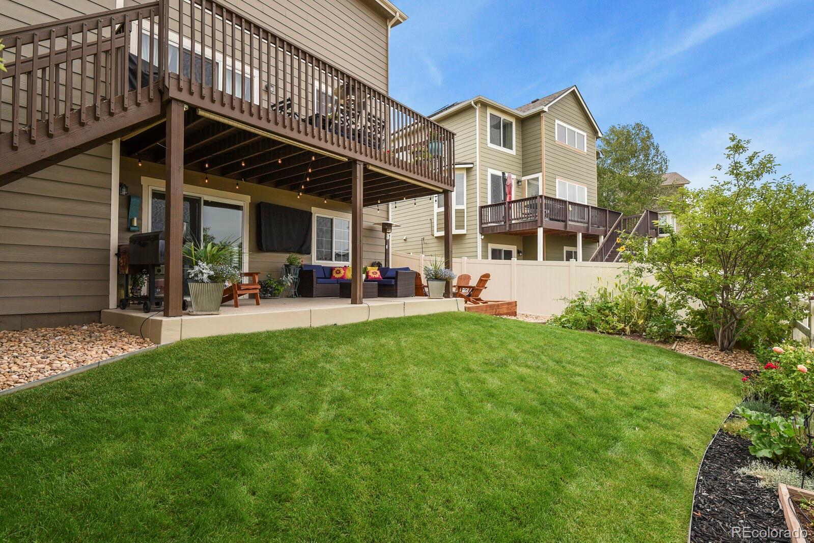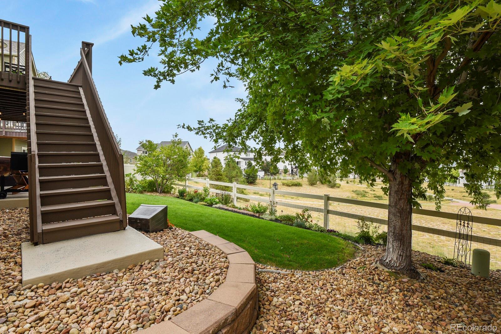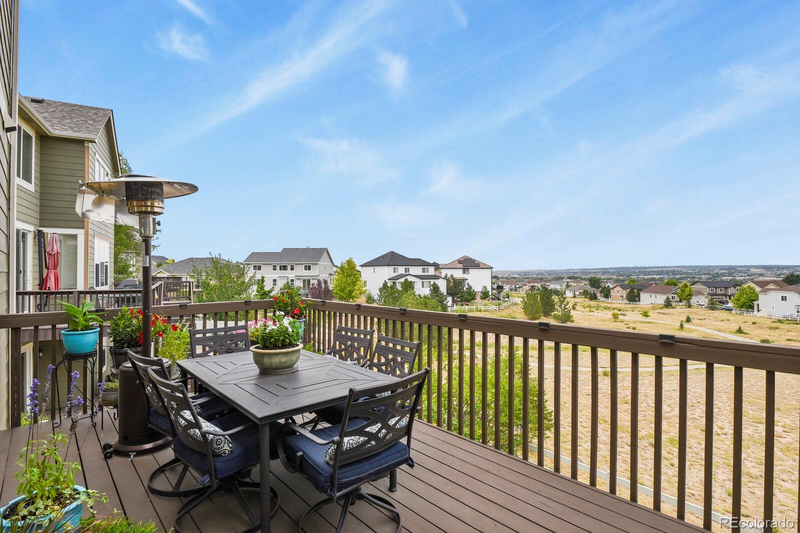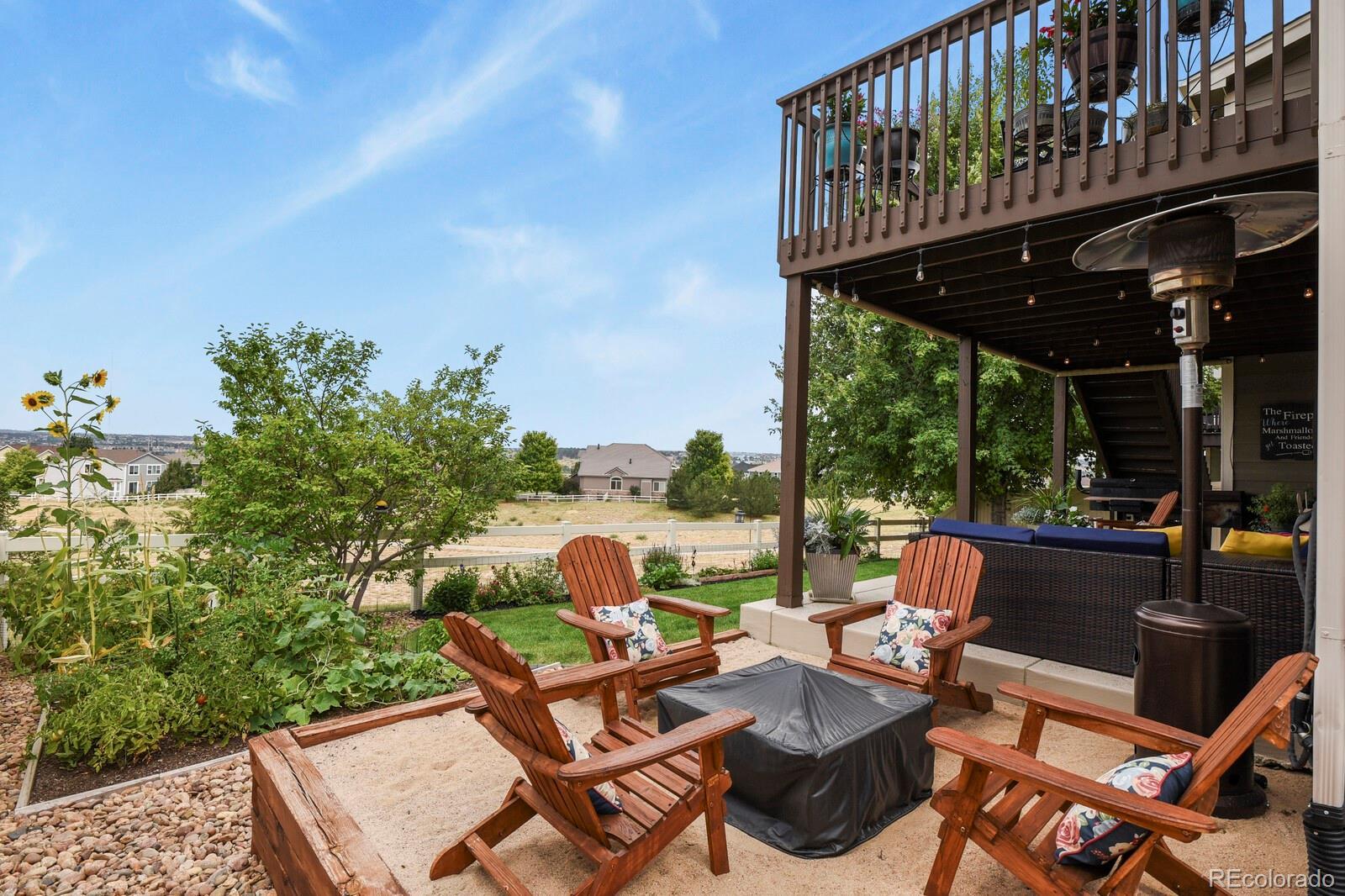 Pristine 5-Bedroom Home Backing to Open Space in Horseshoe Ridge! Welcome to this beautifully maintained 5-bedroom, 4-bathroom home offering the perfect blend of comfort, style, and functionality. Backing to open space, this home features numerous updates including an impact-resistant roof, tankless water heater, new garage door, and more. The main level boasts a bright and open floor plan with spacious living and dining areas, a private office, and a gourmet kitchen with access to a large deck overlooking serene open space. Upstairs, the primary suite provides a relaxing retreat with a spa-like bath, accompanied by three additional bedrooms and a convenient laundry room. The finished walk-out basement is designed for entertaining, complete with a large bar featuring a sink and beverage fridge, an expansive den, a full bedroom, and a bathroom. Step outside to the entertainment patio and enjoy the meticulously cared-for landscaping, fenced yard, and outdoor living spaces. Additional highlights include a 3-car tandem garage with ample parking and storage. With its thoughtful upgrades, versatile floor plan, and incredible outdoor setting, this home truly has it all!