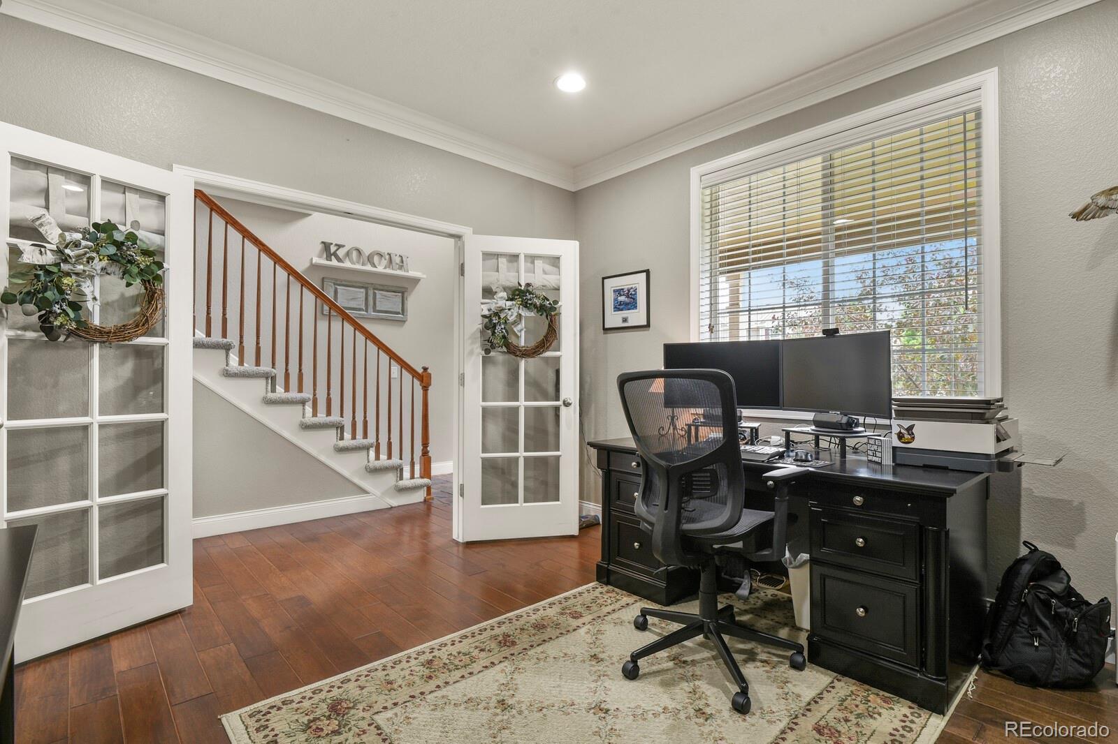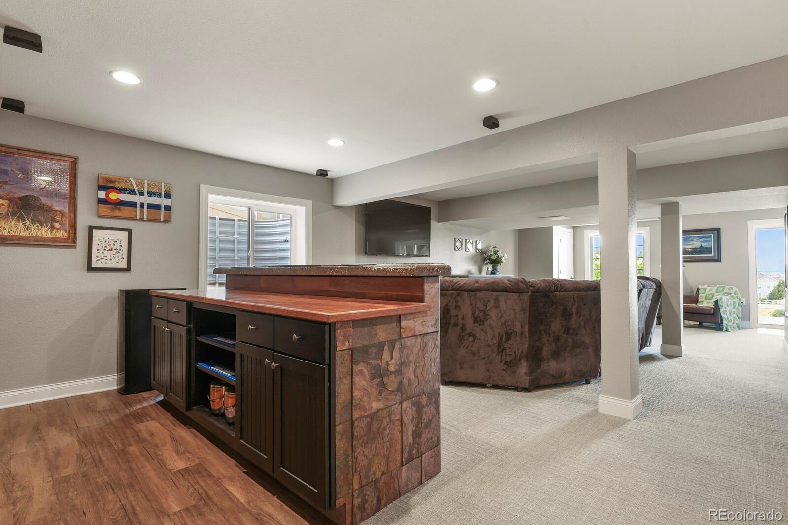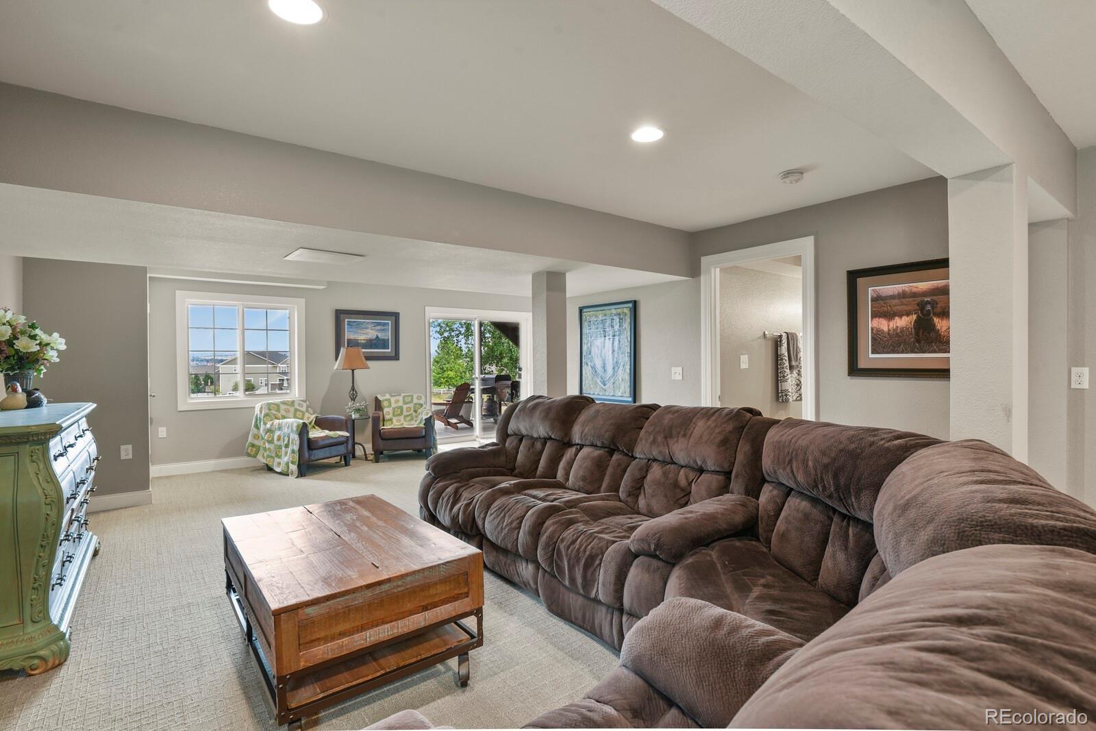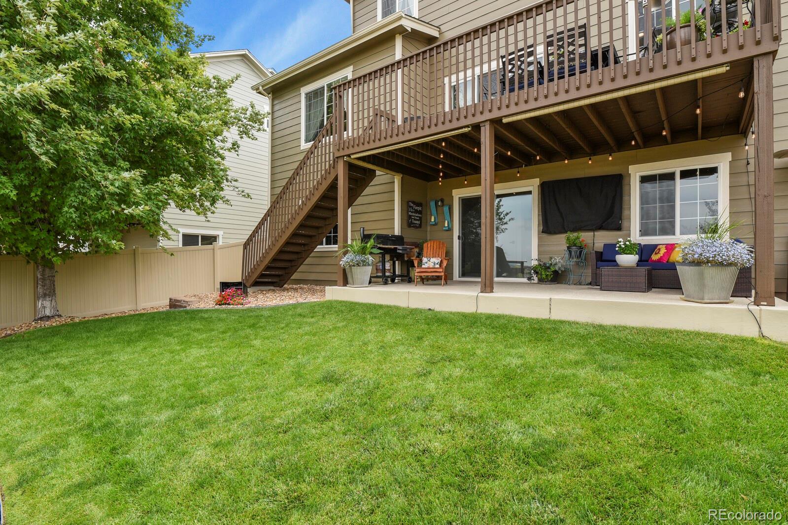 Pristine 5-Bedroom Home Backing to Open Space in Horseshoe Ridge! Welcome to this beautifully maintained 5-bedroom, 4-bathroom home offering the perfect blend of comfort, style, and functionality. Backing to open space, this home features numerous updates including an impact-resistant roof, tankless water heater, new garage door, and more. The main level boasts a bright and open floor plan with spacious living and dining areas, a private office, and a gourmet kitchen with access to a large deck overlooking serene open space. Upstairs, the primary suite provides a relaxing retreat with a spa-like bath, accompanied by three additional bedrooms and a convenient laundry room. The finished walk-out basement is designed for entertaining, complete with a large bar featuring a sink and beverage fridge, an expansive den, a full bedroom, and a bathroom. Step outside to the entertainment patio and enjoy the meticulously cared-for landscaping, fenced yard, and outdoor living spaces. Additional highlights include a 3-car tandem garage with ample parking and storage. With its thoughtful upgrades, versatile floor plan, and incredible outdoor setting, this home truly has it all!