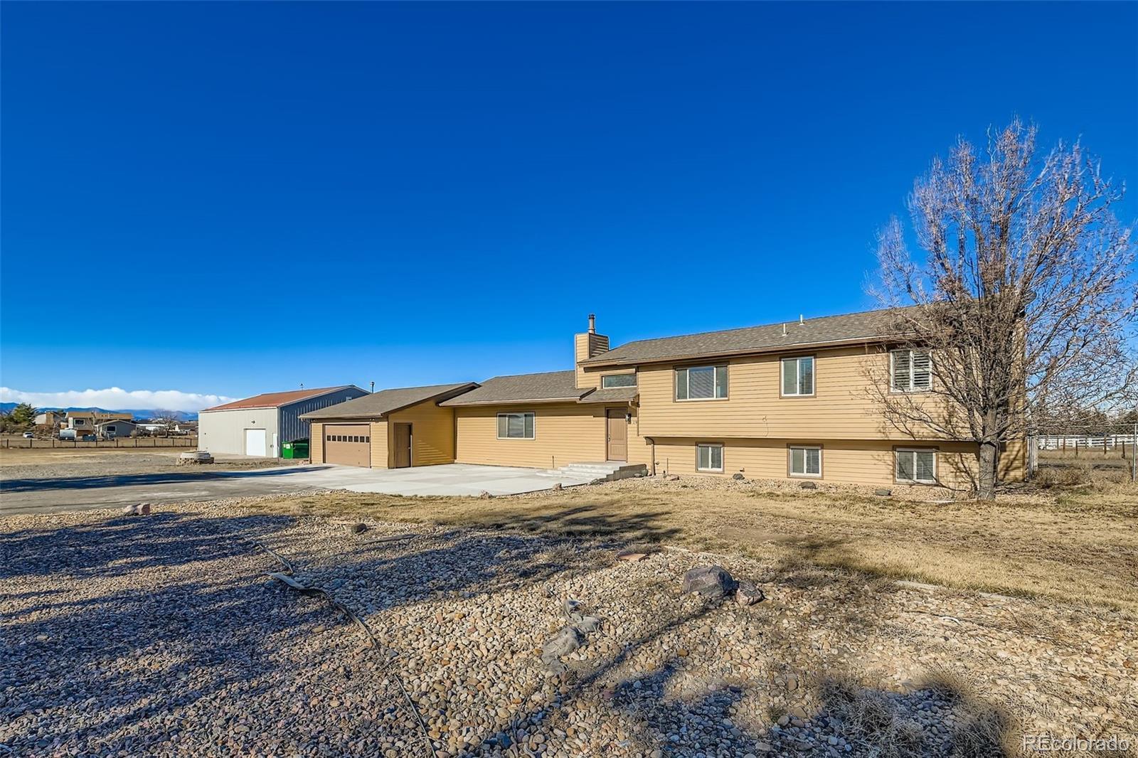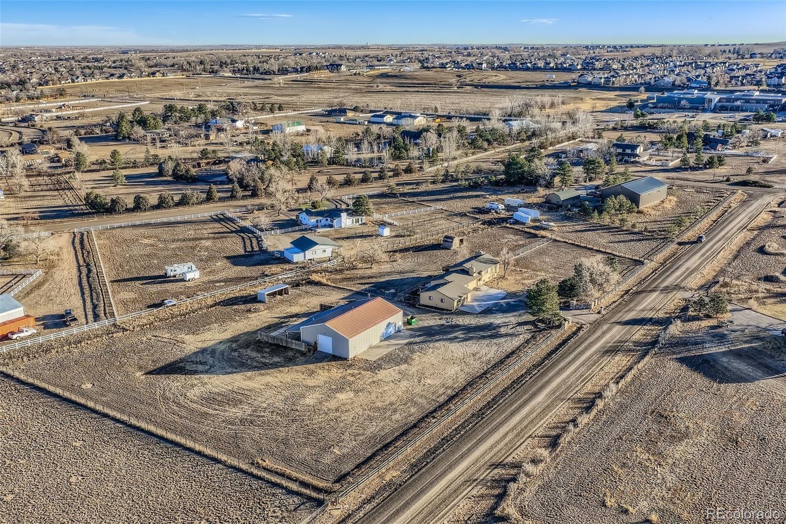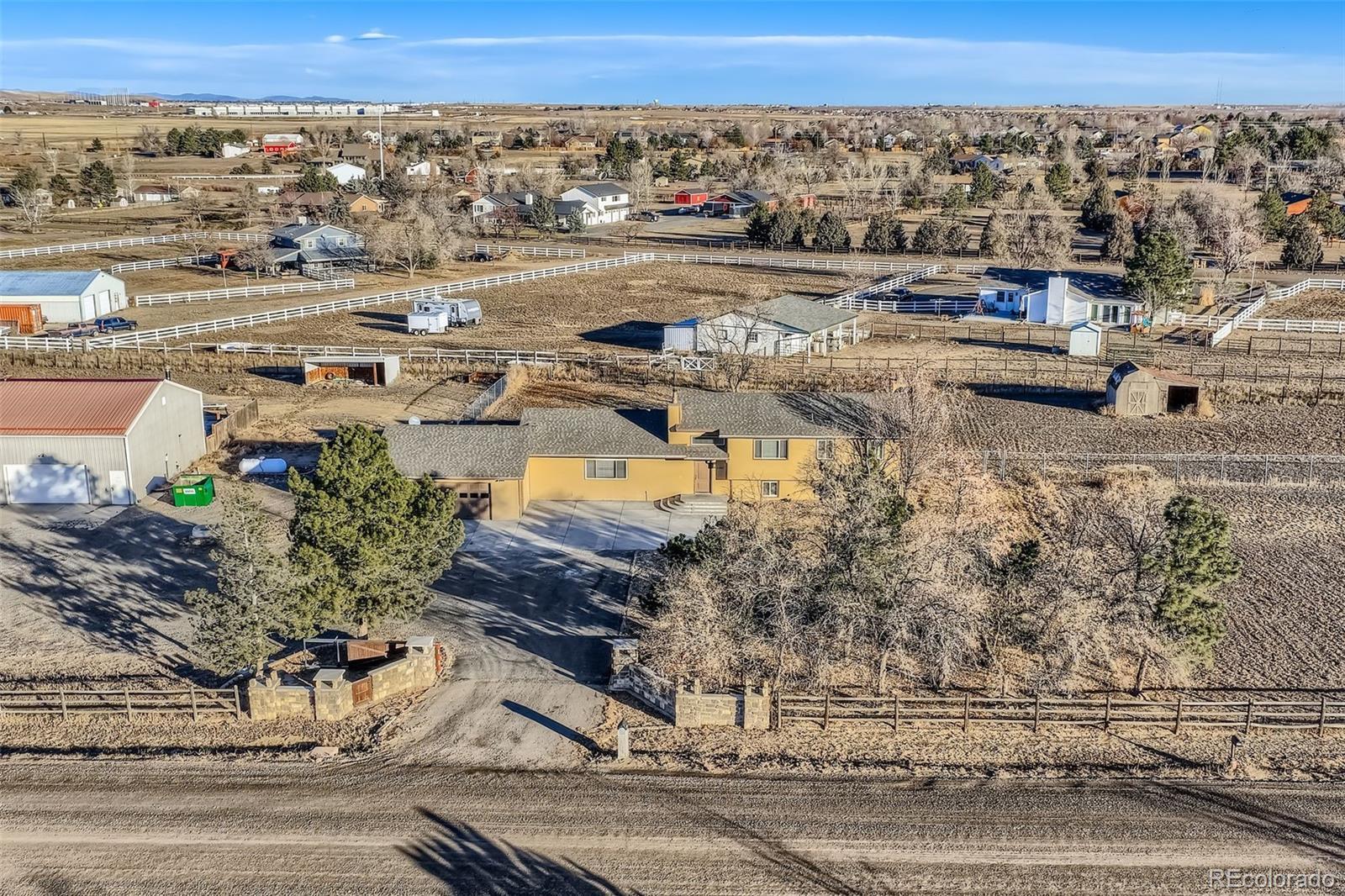 This exclusive 2.59-acre gated estate presents the best of upscale country living with acreage, privacy, and modern upgrades. Truly all the features you look for in an amazing home that includes beautiful custom flooring that flows throughout the main level, complemented by vaulted ceilings that enhance the open floorplan. (((New Carpet))) (((Fresh Interior Paint))) (((New Appliances))) (((New Concrete Driveway & Patio))) Very Crisp & Clean!! Move-in-condition!! The kitchen is a chef’s delight with custom cabinetry, large panty and updated appliances, the kitchen opening seamlessly to the spacious dining area and expansive great room, perfect for entertaining or everyday living. The primary suite includes a remodeled bathroom with a large walk-in shower and a generous walk-in closet. Cozy up by the wood-burning stove and enjoy all the features that add warmth and character. Step outside to a huge custom deck with stunning mountain views, ideal for BBQs, gatherings, and relaxing in a peaceful setting. Enjoy this massive, fully fenced property with mature landscaping, ideal for animal lovers and outdoor living. Bring all your toys, the standout feature of the property is the ((40’ x 60’)) custom building/shop, complete with radiant heat, plumbed for water, floor drain, and tuns space for RV, boat, and recreational vehicle storage. Conveniently located near I-25, E-470, golf courses, schools, shopping, and restaurants. Schedule your showing today, this one truly stands out.