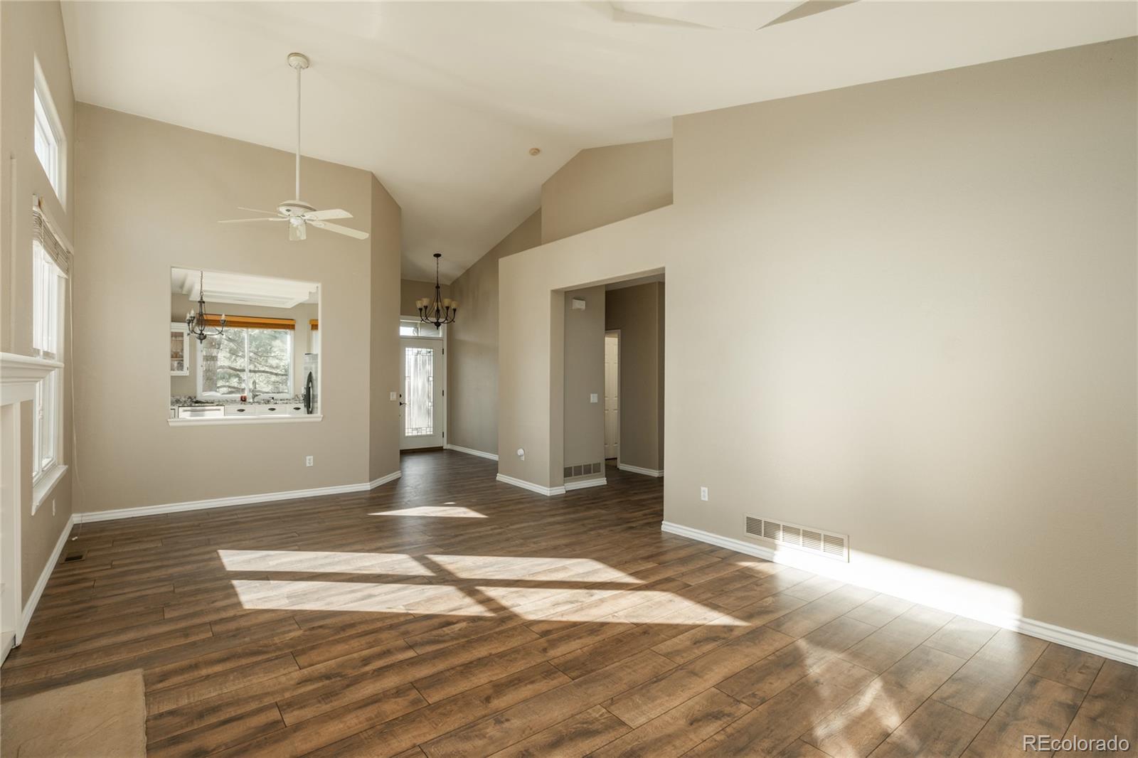 Beautifully updated ranch-style home in the highly desirable Stroh Ranch community offering style, space, and flexibility. Inside you’ll find vaulted ceilings, abundant natural light, brand-new LVP flooring, fresh baseboards, and inviting living spaces throughout. The updated kitchen features granite countertops, stainless steel appliances, ample cabinetry, and an easy flow into the dining and living areas with cozy fireplaces and access to the backyard. Perfect for entertaining or everyday comfort. The primary suite offers a relaxing retreat with a spa-like bath and walk-in closet. The main level also features one additional bedroom plus a dedicated office, offering flexible space for guests, work-from-home needs, or everyday living. The unfinished basement offers a great opportunity to customize the space to fit your needs. Whether you envision additional living areas, bedrooms, a home gym, or entertainment space. Situated on one of the larger lots in the neighborhood. Conveniently located near the community park, pool, trails, shopping, dining, and commuter routes, this home combines comfort, convenience, and the best of Colorado living.