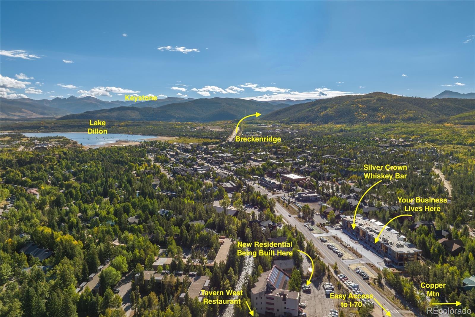 Beautiful new luxury building with an amazing opportunity for a restaurant, wellness spa or sporting goods business. Along with the 2250 sq ft, there is a fire pit and fitness center. Easy access from I-70 to capture traffic heading to Vail or Copper Mountain. Surrounded by a residential community of avid outdoor enthusiasts, looking for adventure and relaxation at the end of the day. Bring your business to our community. Other units available, from 600-4000 sq ft.