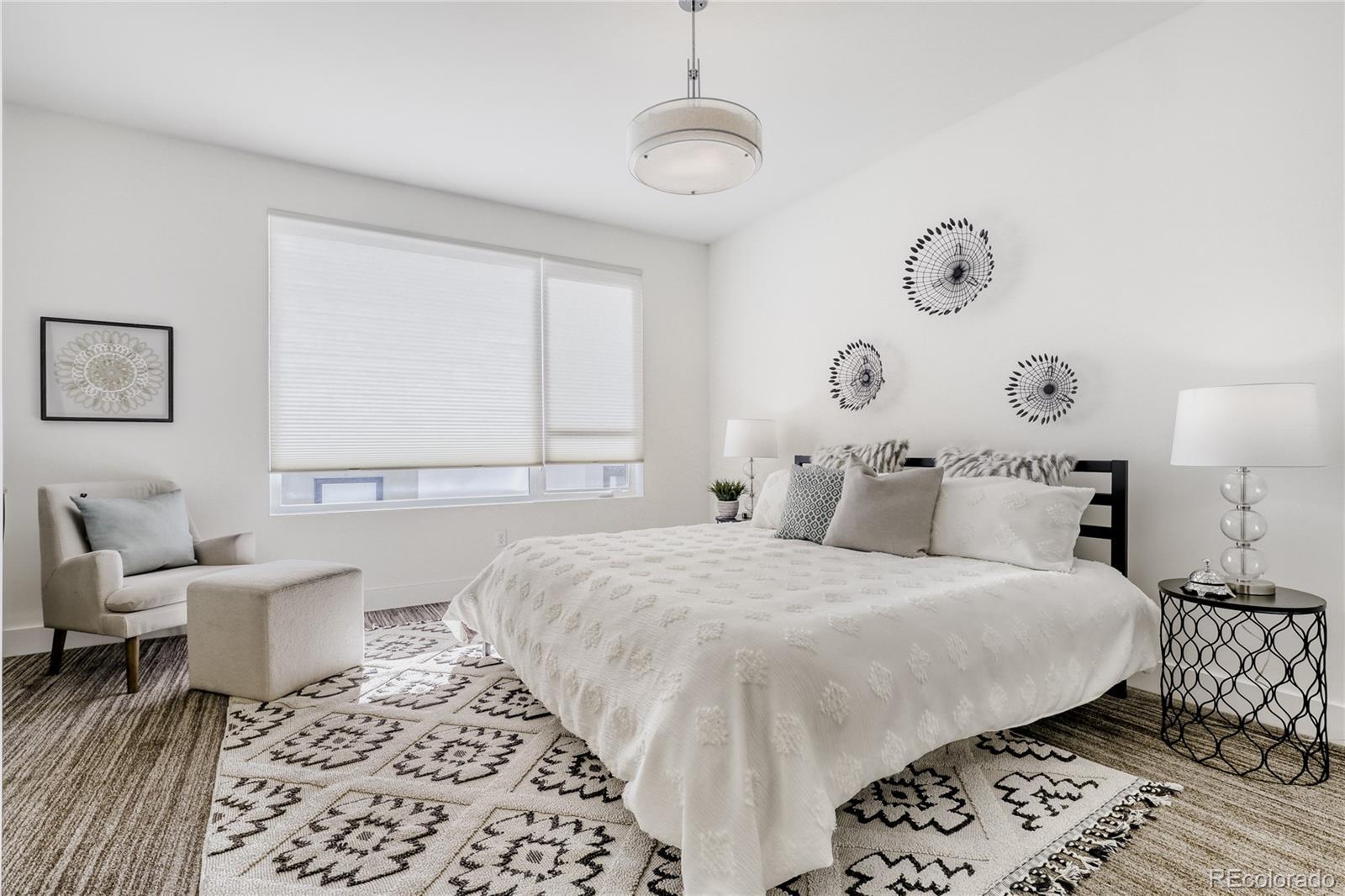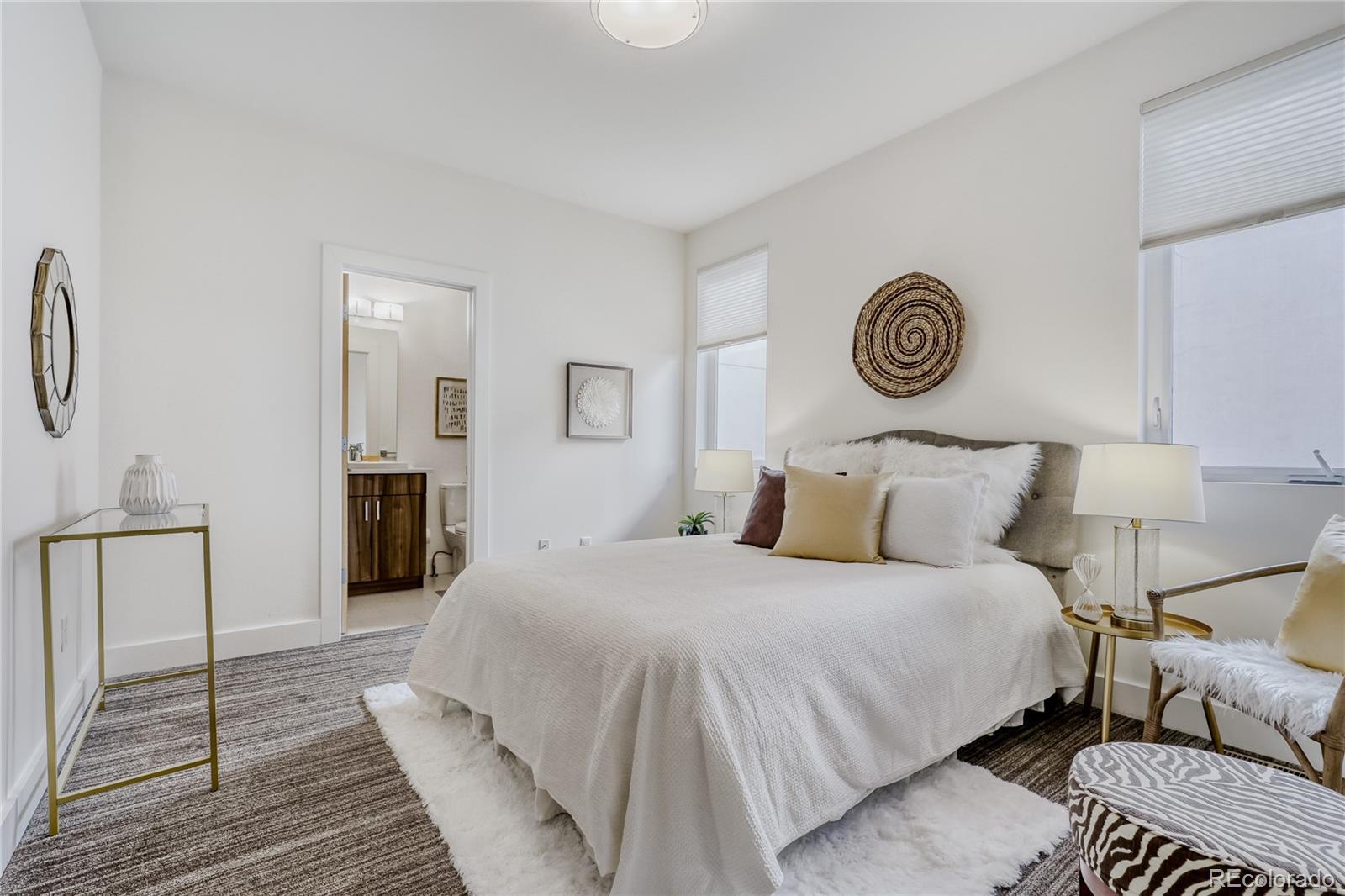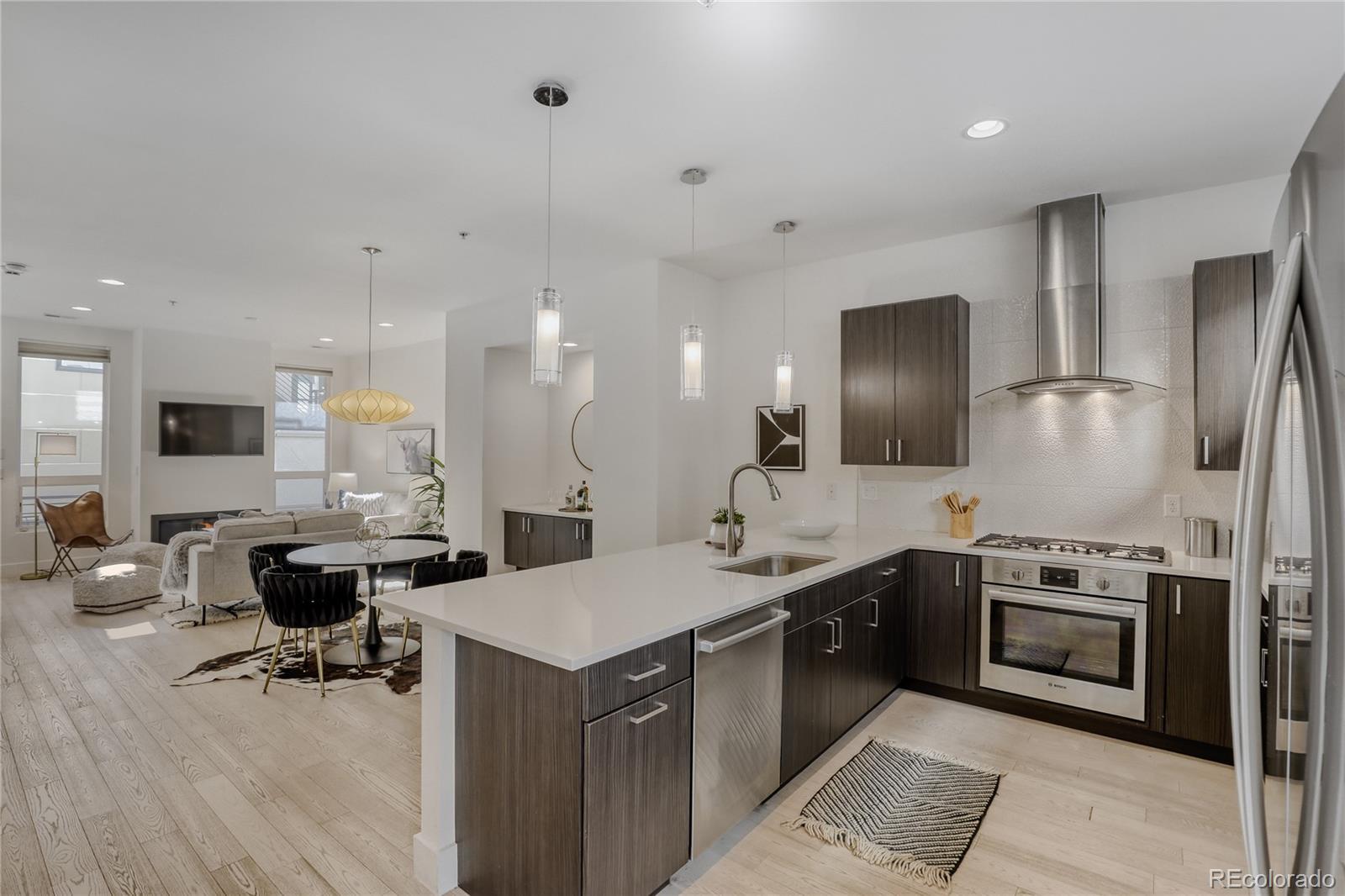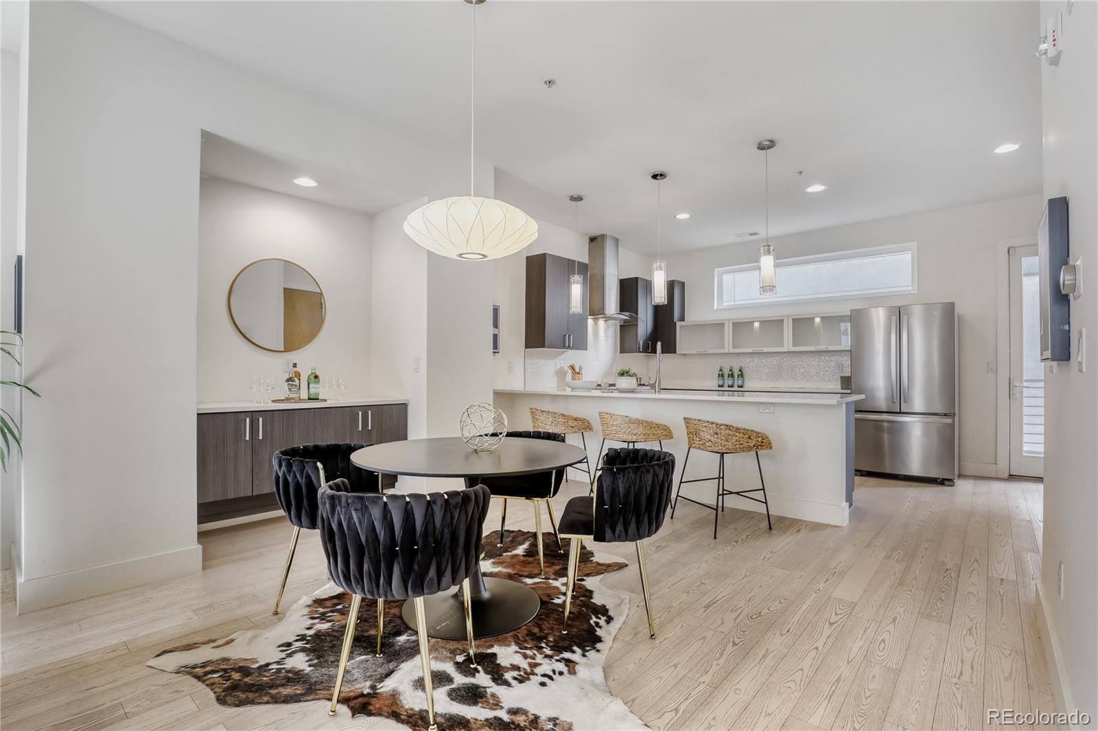 Contemporary Urban Townhome with Impeccable City and Mountain Views. Conveniently located in the heart of Lohi, this home features a thoughtfully designed floorplan for every day living and entertaining. With three levels of prime dwelling space, each floor has its own character and uniqueness. The main level has abundant natural light, white oak plank hardwood floors and a desirable open concept with 9 foot ceilings. The Living Room is anchored by a gas fireplace and tall West facing windows. The Dinng Area has its own built-in buffet with stoage and located by the generous kitchen peninsula with room for plenty of countertop seating. Euro styled cabinetry, Bosch appliances with 5 burner cooktop, convection oven and pull-out drawer pantry add to this kitchen's practicality. You can grill steps away on an outside balcony with installed gas line. The upper level Primary Suite is bright and cheery and a generous size wth stunning bathroom. The 2nd Bedroom and attached private full bath makes a great guest suite. Laundry room is also next to both bedrooms. The 3rd level is a Great Room with half bath, wet bar and beveage fridge overlooking the City and Mountains. Step outside to your own rooftop deck and enjoy one of the best views of Denver. The lower floor has a space for your Peloton next to the heated 2 car garage. There is NO home owner association. Only a Party Wall Agreement with monthly dues of $150 to $200. This home is equipped with a builder's fire sprinkler system on each level. Walk to nearby restaurants and parks. Close to Downtown and both interstates. Become a part of a very special neighborhood