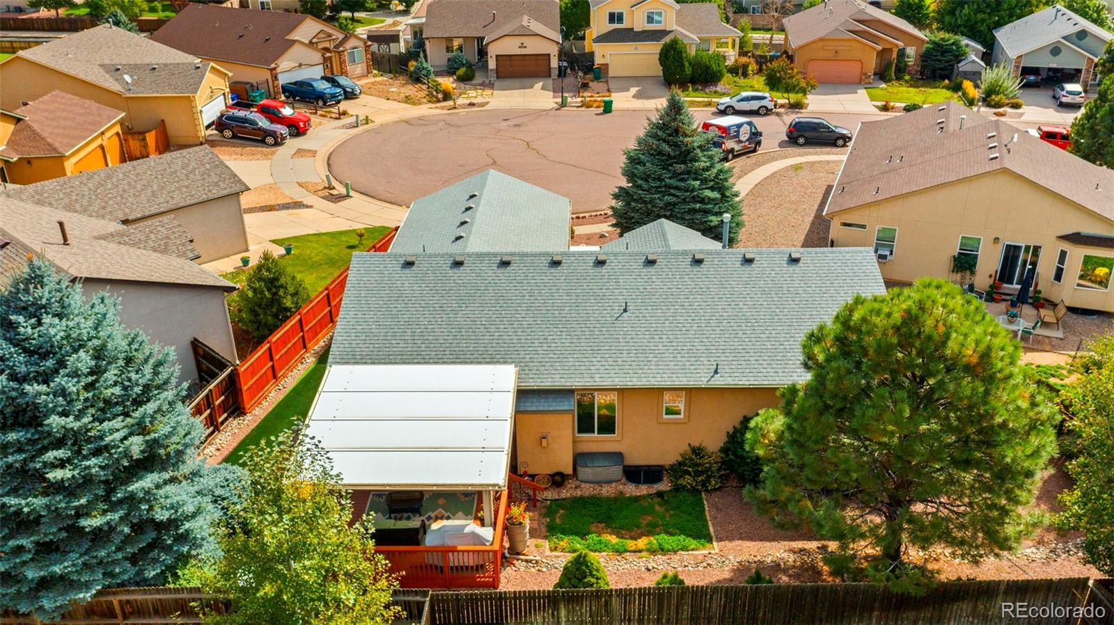 Welcome to this beautifully maintained raised ranch, perfectly tucked away on a quiet cul-de-sac in the sought-after Willowind neighborhood. Offering over 3,100 square feet of living space, this 4-bedroom, 3-bath home combines comfort, thoughtful design, and true pride of ownership. Step inside the open-concept main level, where vaulted ceilings and abundant natural light create an inviting atmosphere. The living room features newer carpet and a cozy gas fireplace, seamlessly connecting to the dining area and kitchen. The kitchen shines with quartz countertops, stainless steel appliances, and convenient access to the laundry room and attached two-car garage—recently painted and upgraded with shelving and a utility sink. The primary suite is a private retreat with a walk-in closet and a beautifully updated bath showcasing quartz counters, a walk-in shower with handrails, and a premium three-way shower system. Two additional bedrooms and a full bath complete the main level. The fully finished basement offers exceptional flexibility with a spacious rec room, a large fourth bedroom, a full bath, and a versatile bonus area—perfect for a home office, gym, or guest suite. Ample storage ensures everything has its place. Step outside to enjoy a generous xeriscaped backyard, complete with a freshly re-stained covered deck and built-in gas line for grilling. Additional highlights include central air, ceiling fans, a whole-house humidifier, and Scottish window tinting for added privacy and UV protection. Located minutes from parks, shopping, dining, and major military installations including Peterson AFB, Schriever AFB, and USAFA. Zoned for Falcon 49 schools with easy access to D20 and D11. With no HOA, move-in ready condition, and the perfect blend of indoor and outdoor living, this home truly has it all.