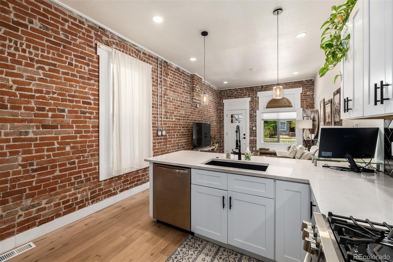 OPEN HOUSE SATURDAY 3/12 12:00pm-2:00pm!!! Welcome to the Cole, Denver’s vibrant and highly sought-after neighborhood with easy access to downtown. Relax on the inviting front porch—an ideal spot for morning coffee or unwinding at the end of the day. Inside, this modern bungalow blends style and comfort effortlessly, featuring rich wood floors, soaring ceilings, and oversized windows that flood the home with natural light, creating a warm and welcoming ambiance. The open-concept design seamlessly connects the living, dining, and kitchen spaces, making it perfect for both everyday living and entertaining. The kitchen truly shines with timeless shaker cabinetry, expansive quartz countertops with seating for four, and a layout that flows naturally into the living area. An exposed brick wall adds charm and character, providing a beautiful backdrop for meals and gatherings. The spacious primary bedroom offers a large closet and private access to the backyard—your own peaceful retreat. The outdoor space is perfect for fall get-togethers and enjoyable year-round. Thoughtfully updated, this home boasts numerous recent upgrades, including a fully remodeled kitchen, updated bathroom, new furnace, air conditioning unit, water heater, windows, appliances, and sewer line. The refreshed laundry space adds even more functionality to this well-appointed home. Photos are of 3531 N Williams, but have been flipped to show the exact replica of 3543 N Williams. It's the exact same finish out and renovation with an identical floor plan just flipped.