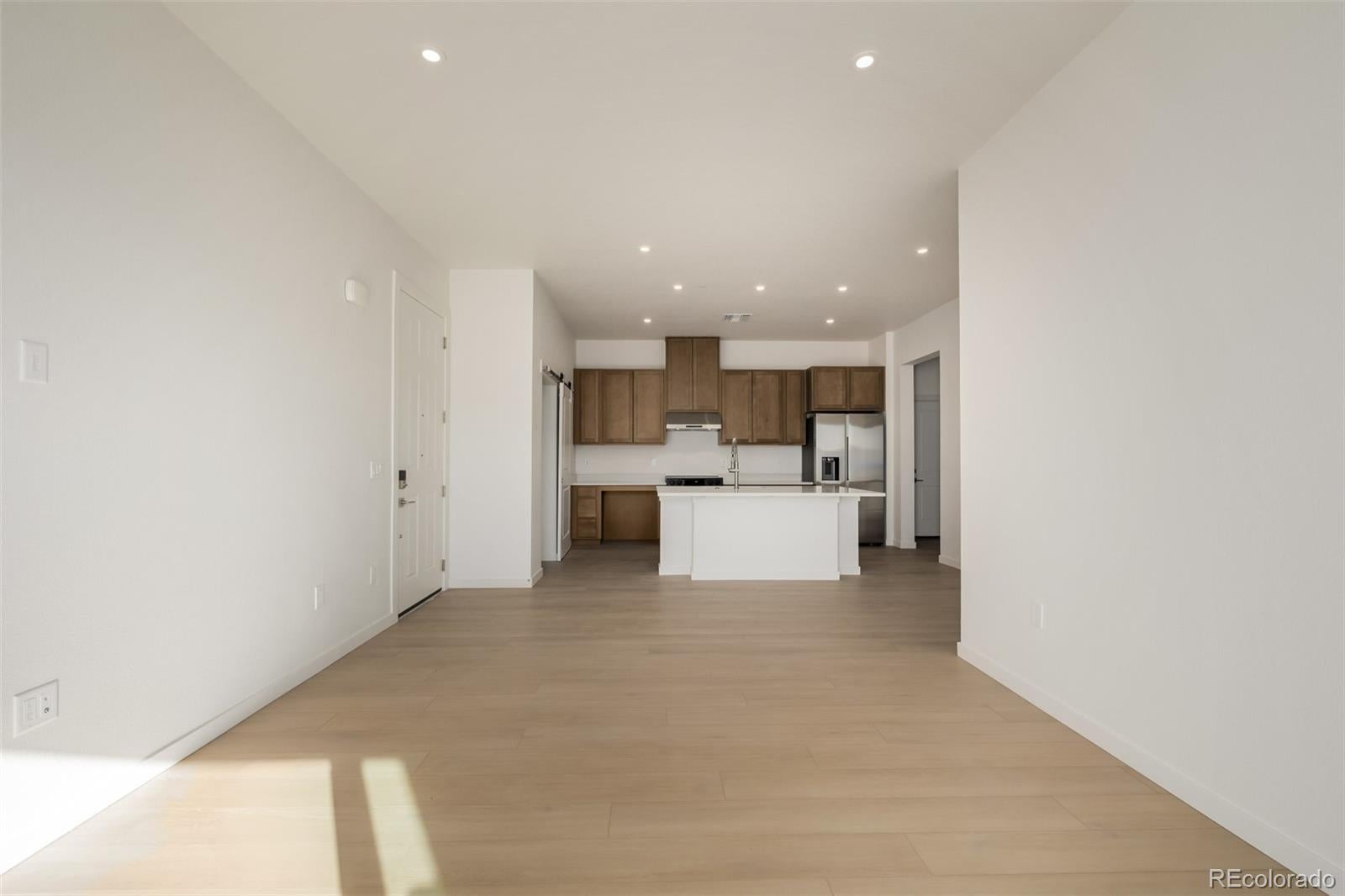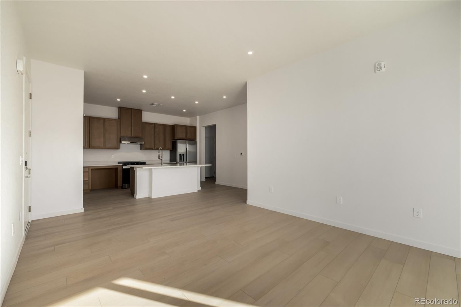 This ground-level Addisyn I floor plan, built by Colorado-based Lokal Homes, offers true single-level living with ADA accessibility throughout—no stairs, no compromises. Thoughtfully modified beyond the standard plan, this home is designed to support a wide range of abilities with lower countertops, open knee space beneath kitchen counters and sink, wider clearances, and an accessible primary suite including the bedroom, bathroom, and walk-in closet. The open-concept layout spans approximately 1,073 square feet and includes 2 bedrooms and 2 bathrooms. The kitchen anchors the home with generous counterspace, pantry storage, and seamless flow into the great room—ideal for everyday living and entertaining. South-facing exposure fills the space with natural light and highlights the Colorado Complete Telluride package, featuring neutral brown cabinetry, quartz countertops, and light tan luxury vinyl plank flooring throughout. The private primary suite offers a spacious bedroom, ADA-designed bath, and walk-in closet, while the secondary bedroom and full bath provide flexibility for guests, caregivers, or a home office. A private patio extends the living space outdoors. An oversized 1-car attached garage with direct access into the unit, plus driveway parking, adds everyday ease and functionality. Ideally located near Denver International Airport, E-470, Peña Boulevard, and I-70, this home offers excellent connectivity across the metro area. Served by Waller Elementary, Trevista at Horace Mann Middle School, and Ridge View Academy High School, this residence blends intentional design, accessibility, and location in a beautifully crafted new construction home.