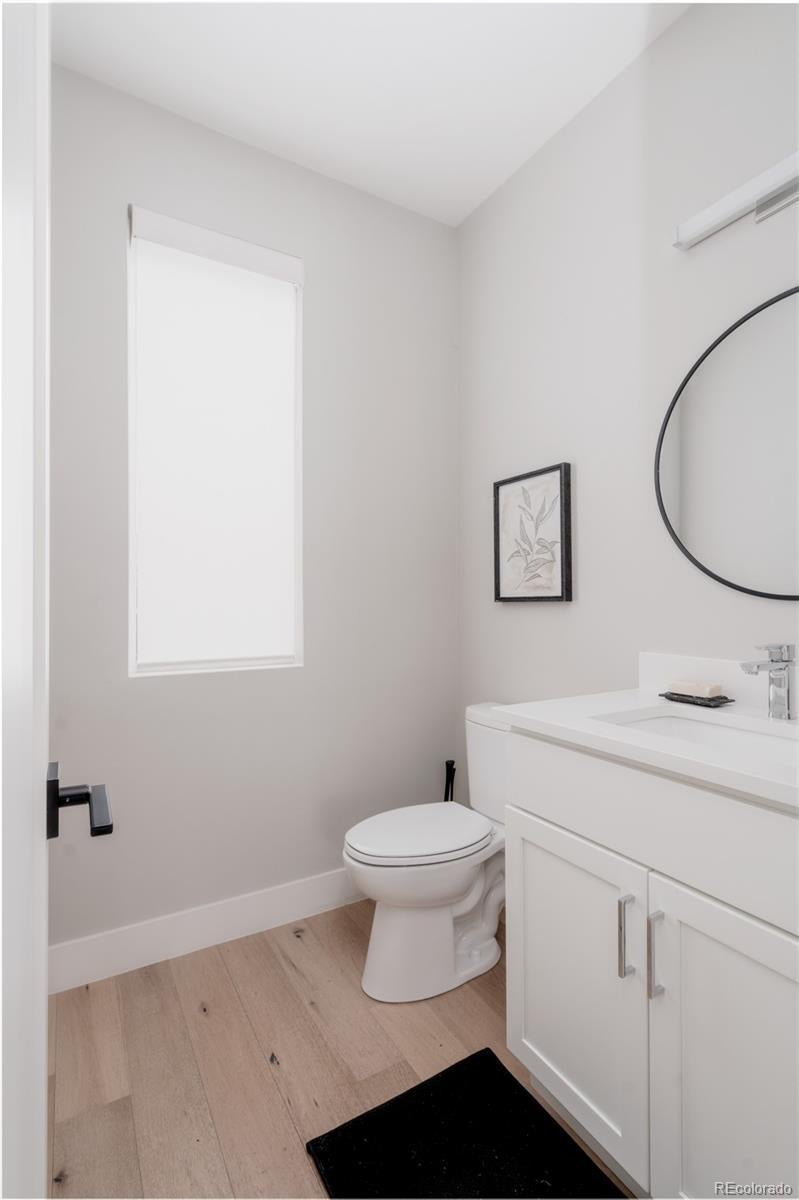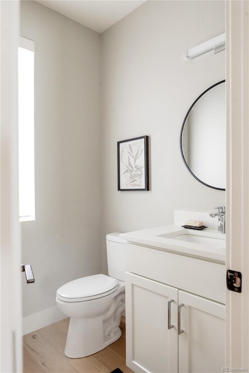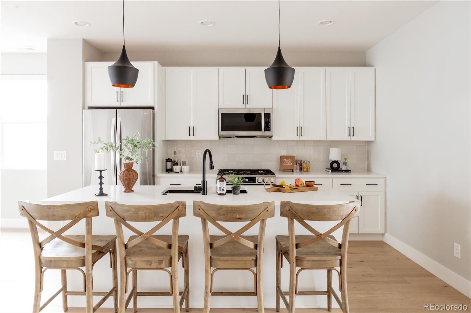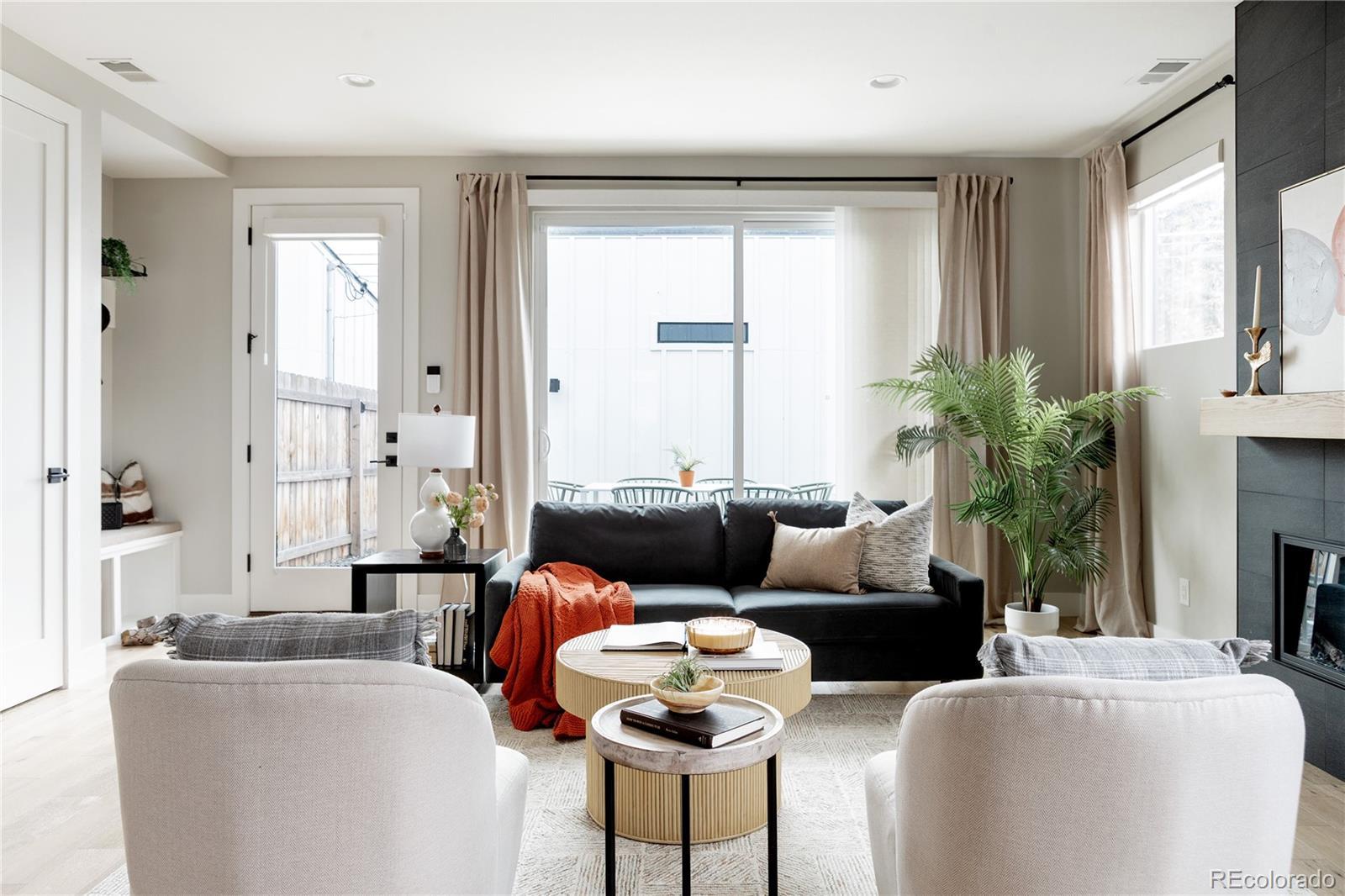 Light, bright, and airy, this south Englewood home offers clean modern style and a layout that truly works for everyday living. The open main level is filled with natural light from oversized windows, with high ceilings and solid wood floors that create a warm, cohesive feel throughout the great room, dining area, and kitchen. A fireplace anchors the living space and adds just the right amount of comfort and character. The kitchen is crisp and contemporary with white quartz countertops, LG stainless steel appliances, and generous prep space, all flowing easily into the main gathering areas for simple entertaining and daily life. One of the standout features is the upper level, with three generous bedrooms on the same floor. The primary suite includes a large walk-in closet by California Closets and a spacious, spa-inspired bath with custom tile and a glass block door. Two additional large bedrooms, a full bath, and upstairs laundry make the layout especially functional and convenient. The fenced backyard offers room for a fire pit, pets, and outdoor dining, with sprinkler systems in both the front and back for easy maintenance. A detached two-car garage with extra-high ceilings provides excellent storage potential. Located near South Broadway, you are moments from local dining, coffee shops, and some of the city’s most fun neighborhood spots, making it easy to enjoy both quiet residential living and Denver’s best urban experiences. Welcome home