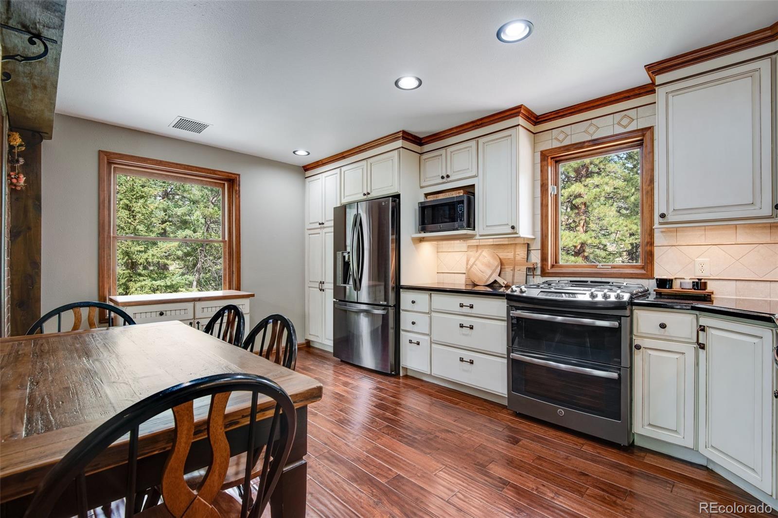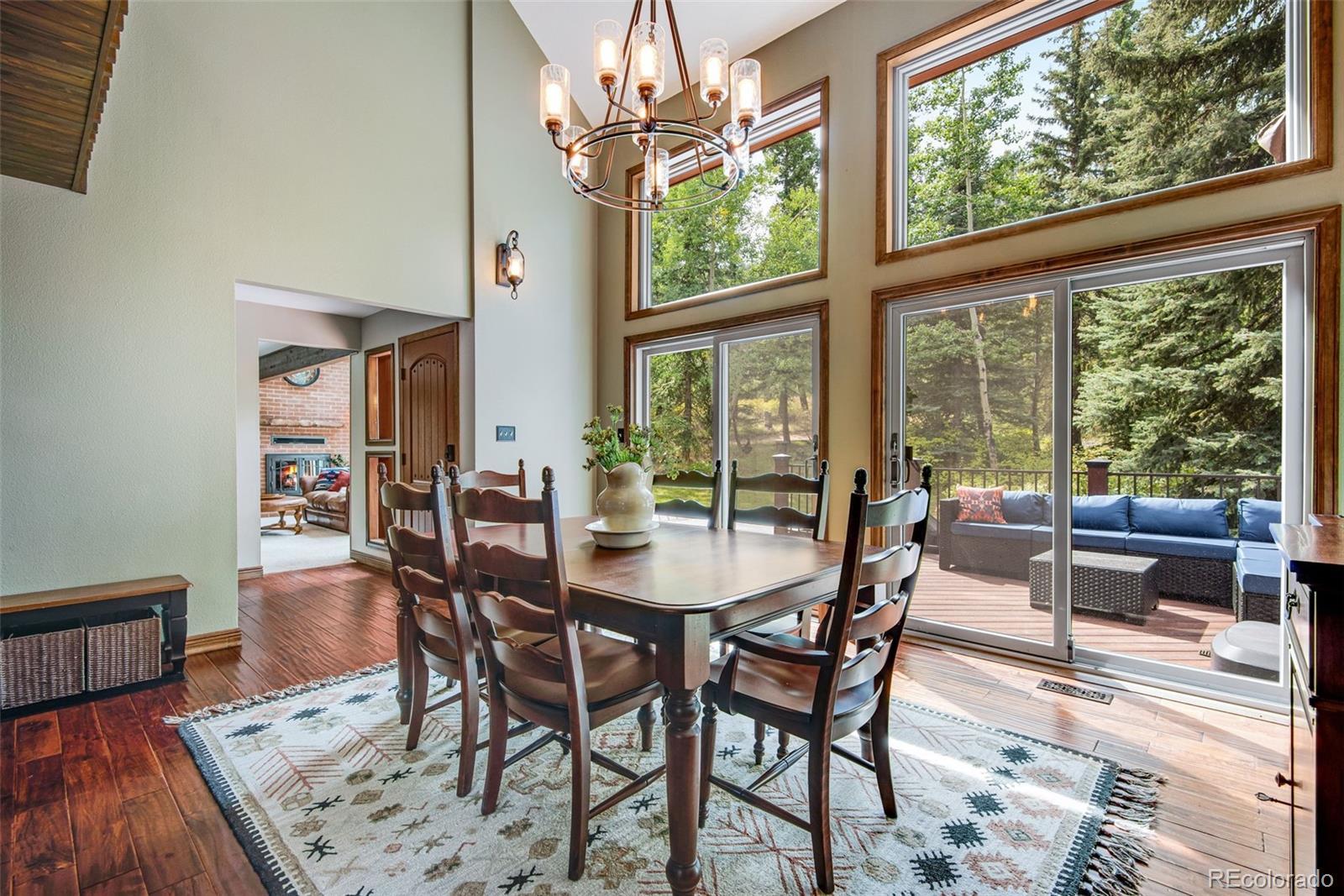 Cozy up in front of a warm fire in your private mountain retreat in the heart of Aspen Park. Move in before Christmas. This beautifully crafted 3-bedroom, 4-bathroom home that has over $200K in upgrades and designed for comfort, functionality, and style. The tall Christmas tree you have always wanted will fit perfectly in front of the 2-story tall Andersen windows. Nestled on a usable 3.37 acres with open meadows and trees for privacy, this home offers a tranquil escape without sacrificing convenience. The roads are plowed as soon as the snow falls, a short drive to shopping & 15 minutes to Hwy 470. The open-concept layout is perfect for both quiet mornings and lively holiday gatherings. The spacious, light-filled living area with natural gas fireplace flows seamlessly into a well-equipped kitchen and dining area. Cuddle up in the primary bedroom; your own serene retreat with a luxurious bath and balcony to watch the deer. 2 additional bedrooms and baths provide flexibility for family, guests, or a home office. A finished basement presents extra living space—a gym, play area, or hobby space. Off the walkout basement is your private hot tub. Enjoy the quiet of the snow falling or watch the stars on a clear eve. Out your front door is a new composite deck, perfect for relaxing or entertaining, while the surrounding land offers space for an ADU, shop, or a barn. Cross-country ski or snowshoe right out your front door at Meyer Ranch Park. With over 600 acres of recreational open space, there is plenty of room for adventure. You are within two miles of grocery stores, restaurants, and quaint shops, where the locals are friendly and dressed in their Uggs and flannel, just as you are. Come experience the joy of mountain living—without having to rough it; less than an hour to major skiing or 30 minutes to Denver downtown. There is NO HOA.
