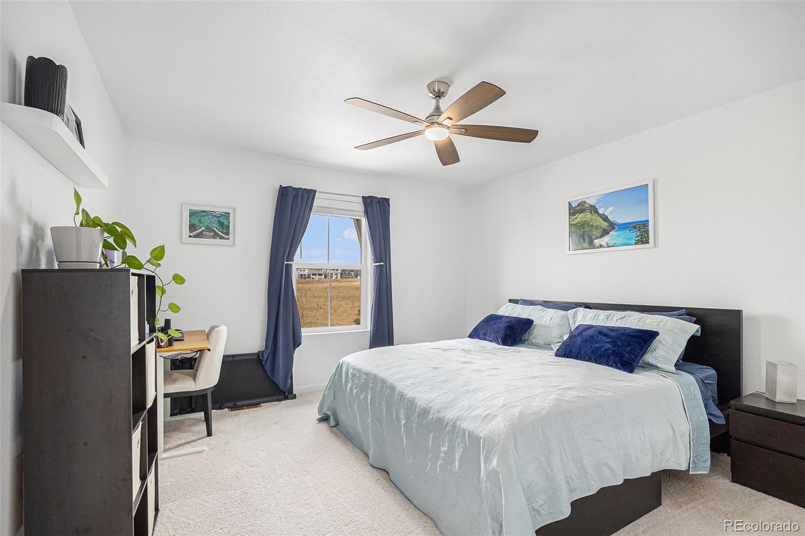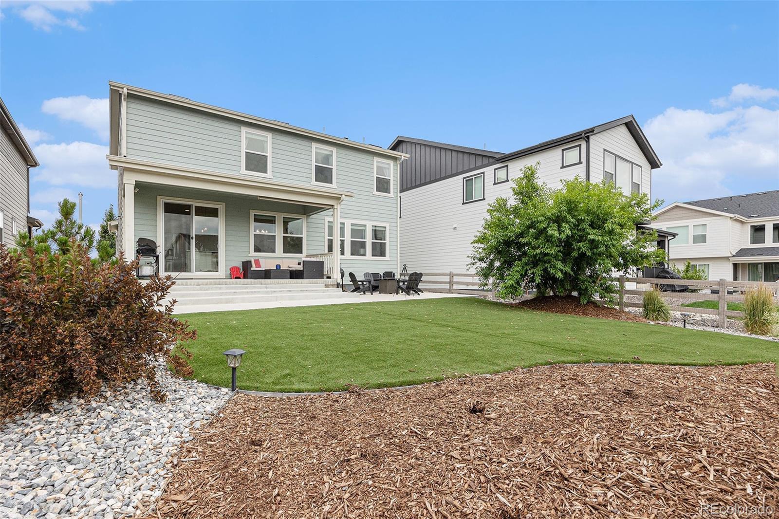 Rare Taylor Morrison Home on One of the Largest Lots in Sterling Ranch. Welcome to this one-of-a-kind Taylor Morrison home in Sterling Ranch, a rare opportunity to own one of the few Taylor Morrison models in the community. Ideally positioned on one of the largest lots in Sterling Ranch, this beautifully maintained 3-bedroom, 3-bathroom, 2-story home blends modern design with thoughtful upgrades throughout. The open-concept main level features a designer kitchen, dining area, and spacious great room, all styled with a warm Pottery Barn–inspired aesthetic. Oversized sliding glass doors open to a covered patio with mountain views, perfect for year-round indoor-outdoor living. The smart turf backyard offers a low-maintenance lifestyle with water-bill-friendly landscaping—ideal for entertaining or relaxing. Upstairs, the primary suite includes upgraded lighting, countertops, and flooring, a spa-like ensuite bath, and a large walk-in closet. Two additional bedrooms and a full bathroom showcase high-end finishes and stylish tile work. The full unfinished basement features 9-foot ceilings, egress windows, and rough-in plumbing, offering endless potential for future living space, a home gym, or additional bedrooms. Located in the heart of Sterling Ranch, enjoy parks, a community pool, clubhouse, pickle ball courts, coffee shops, brewery, and miles of trails, all within walking distance. Chatfield State Park is just minutes away, and residents love the vibrant community events like Food Truck Fridays and the welcoming neighborhood atmosphere. This is a rare chance to own a move-in-ready home in Sterling Ranch with a large lot, mountain views, and premium upgrades. Window coverings done. Landscaping done. You won’t want to miss it.