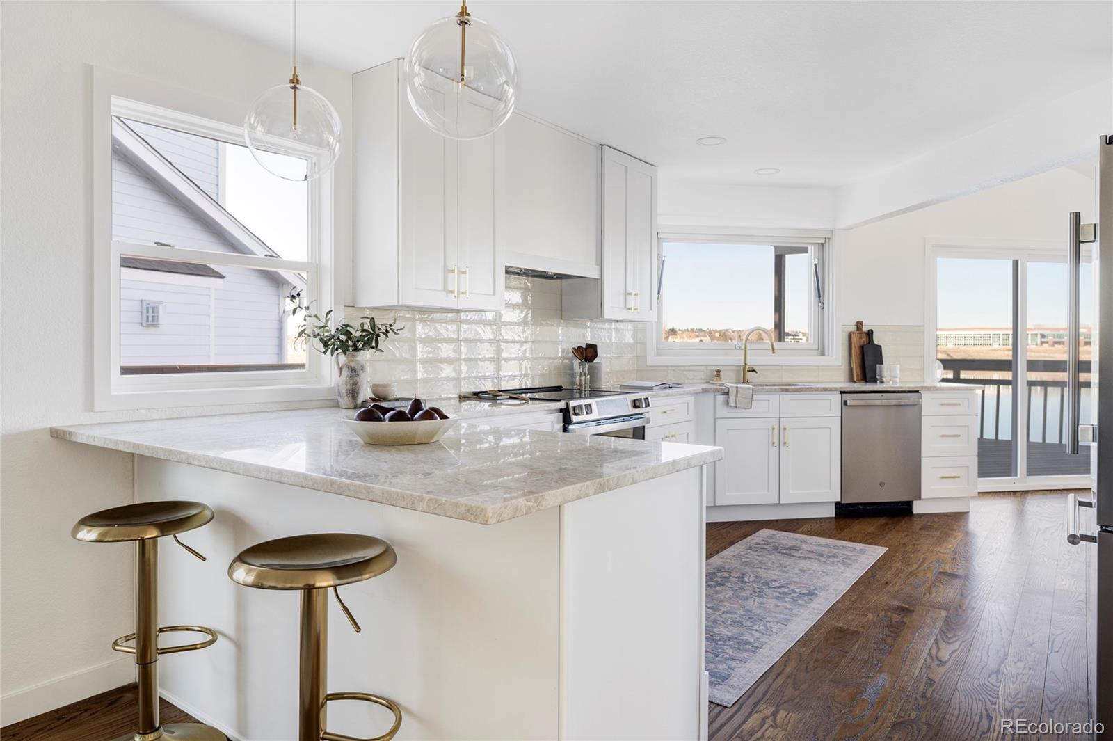 ** OPEN HOUSE SUN FROM 12-2PM ** See video at: https://www.6834winona.com/ Lakefront living like this is rarely available, especially this close to the city. Set on the shores of Hidden Lake, this fully reimagined residence offers a front-row seat to one of the most unique lifestyles in the Denver metro area. Here, the water is part of everyday life. Mornings might begin with a quiet paddle across glassy water, while sunny afternoons bring the gentle buzz of neighbors enjoying the lake. Cruise over to Los 3 Garcias restaurant, tie up at the dock, and turn an ordinary evening into an impromptu waterfront dinner with friends. The interior has been thoughtfully redesigned to keep the lake in view at every opportunity. Enjoy water views from the kitchen, living room, and dining room. The lake is visible from the primary bedroom and even from the spa-like shower. A secondary bedroom on the lower level also captures beautiful water views. The main level features brand-new hardwood flooring and expansive sightlines that draw the outdoors in. Upstairs, the home transforms into a private retreat: a full-floor primary suite with a dramatic spa-style shower overlooking the water, refined finishes reminiscent of a boutique hotel, a spacious walk-in closet, and its own laundry for ultimate convenience. The lower level opens directly to the lake, creating a seamless connection to outdoor living and water activities. Two additional bedrooms, a full bath, and a second laundry area make this level ideal for guests or everyday functionality. With decks on all three levels, you’re never more than a few steps from fresh air, rippling water, or a sunset worth stopping for. From the main deck, watch the sun reflect across the lake as it dips behind sweeping mountain views, a daily moment that never gets old. Completely remodeled, this rare lakefront property offers privacy, beauty, and connection - minutes from Denver, yet worlds apart from the ordinary.