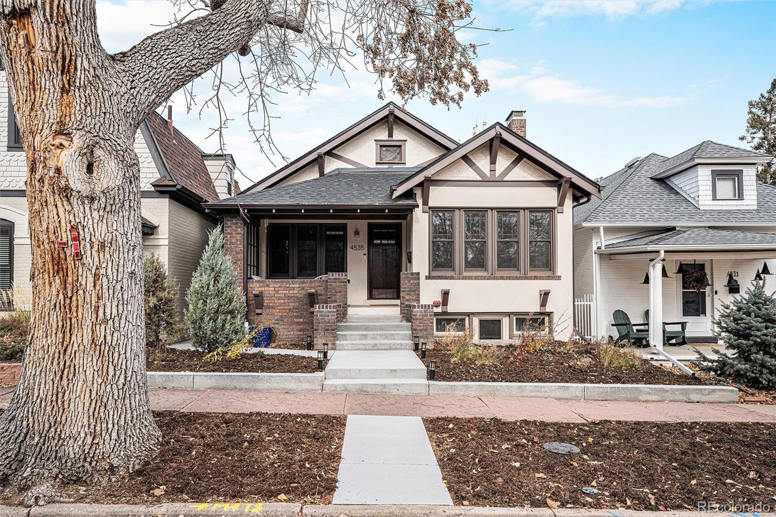 This classic Craftsman bungalow has been thoughtfully updated in just about every way possible. Original charm abounds immediately, from the oversized front porch to the living room lined with built-in cabinets surrounding a fireplace, when you step inside. Modern living takes center stage in the kitchen, with efficient new Renewal by Andersen windows throughout (which match the originals), a primary bedroom that's been configured to have a walk-in closet and en-suite, a wet bar, and all updated bathrooms. Upstairs is an open-concept floorplan, with plenty of room for living and dining, and a secondary bedroom in addition to the primary. Step downstairs, and you've got a large second living area, wet bar, two bedrooms (one with egress, one non-conforming), a full bath inviting soaks in an oversized tub, and a laundry room with plenty of space to organize and store items. Looking for more space? The attic offers 9' ceilings, so a conversion could be explored. Across the back yard – with patio – there's a new, oversized 2-car garage that also has 9' ceilings. Not only is this house updated and well cared for, it's fabulously located on a quiet, tree-lined West Highland block that's right near Tennyson Street, near "SloHi" offerings, close to Highland Square, and 5 minutes to the freeway.