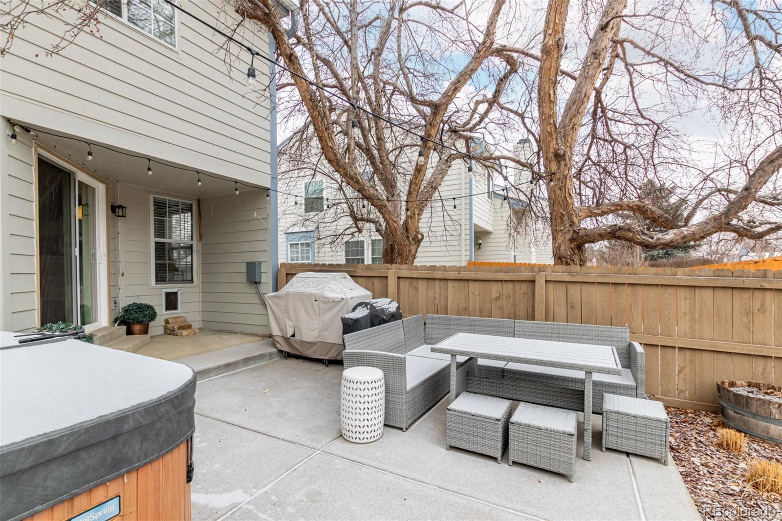 Welcome to this beautifully updated townhome in the charming Stony Creek community, offering carefree, low-maintenance living surrounded by greenspace and walking trails. This inviting home features an impressive list of recent upgrades that provide modern comfort, efficiency, and style. Major system updates include a tankless water heater installed in 2021, delivering unlimited hot water, and a newer furnace (2021) for enhanced heating efficiency. Inside, the home shines with fresh interior paint and professionally scraped popcorn ceilings, creating a bright, modern feel. Vaulted ceilings and skylights flood the space with natural light, enhancing the open and airy layout. The kitchen is thoughtfully designed with custom open shelving and a newly installed backsplash, blending functionality with contemporary appeal. New carpet (2021), updated interior doors, and modern light fixtures and ceiling fans throughout most of the home elevate the overall ambiance. The upstairs bathroom has been refreshed with a new vanity and toilet, offering a clean and modern retreat. Two window A/C units are included for added comfort during warmer months. Step outside to enjoy one of the largest backyards in the neighborhood, complete with lush sod installed in 2022, recent landscaping improvements, and a hot tub—perfect for entertaining or relaxing. A new sliding glass door and storm door enhance both efficiency and accessibility. The garage has been upgraded with OSB-lined walls, ideal for storage, hobbies, or a workshop setup. With extensive interior and exterior upgrades, generous outdoor space, and access to community greenspace and trails, this home offers comfort, convenience, and a worry-free lifestyle. Don’t miss this fantastic opportunity to make this Littleton gem your own! Paint/scraped popcorn ceilings - $5,000 Back splash - $1000 Storm door - $599 Back sliding glass door - $3,200 Landscape improvements - $5,500 OSB lined garage - $500 hot tub - $5,000