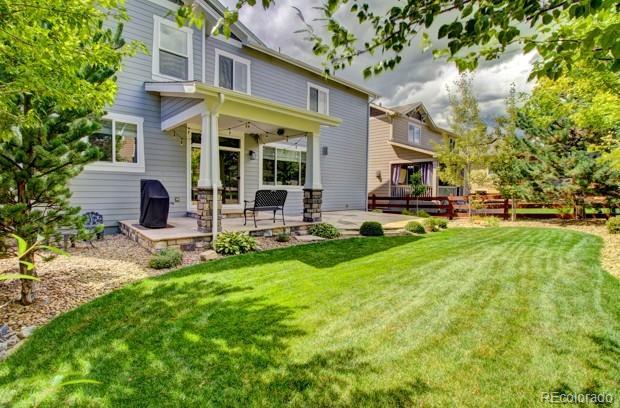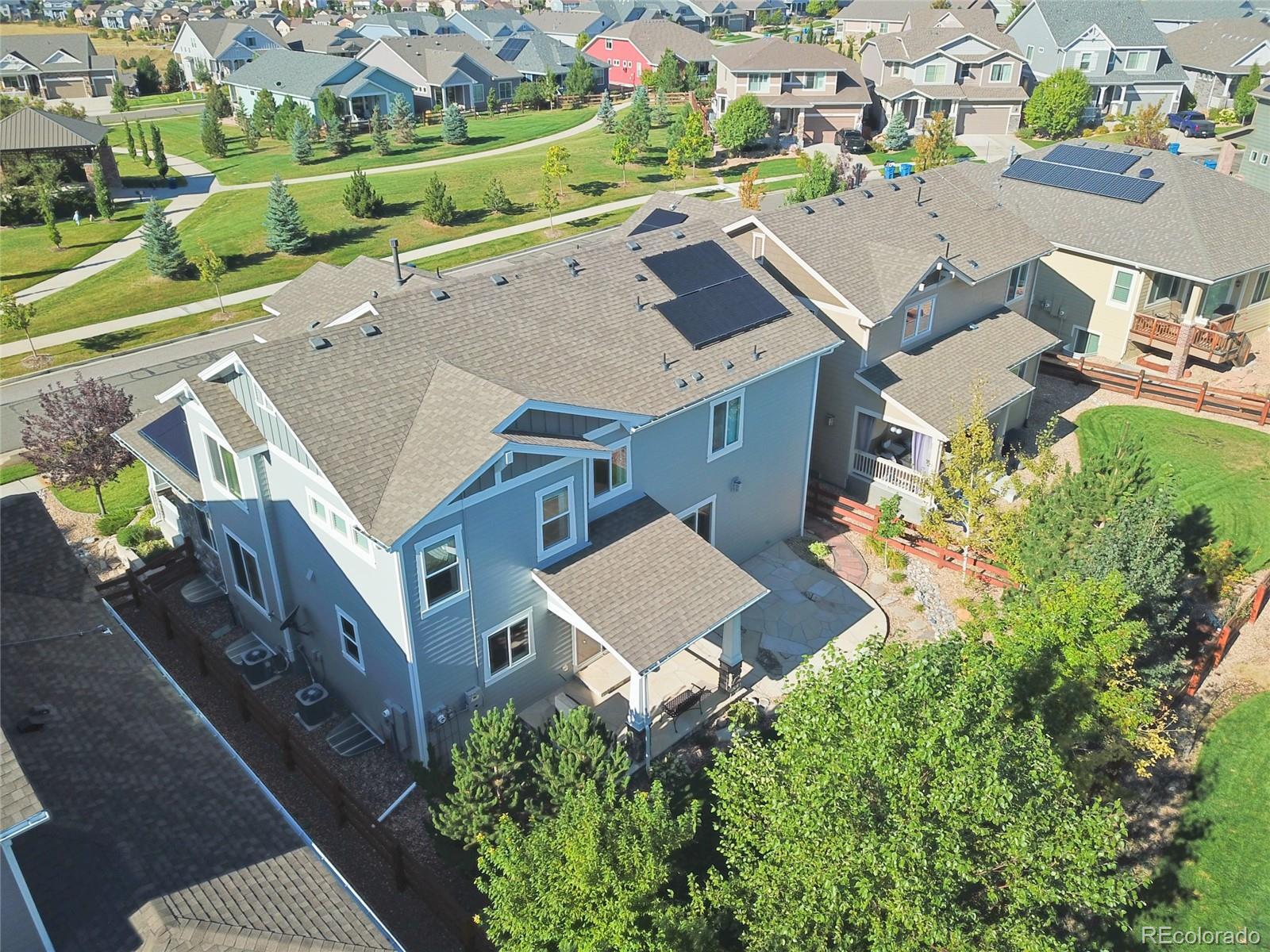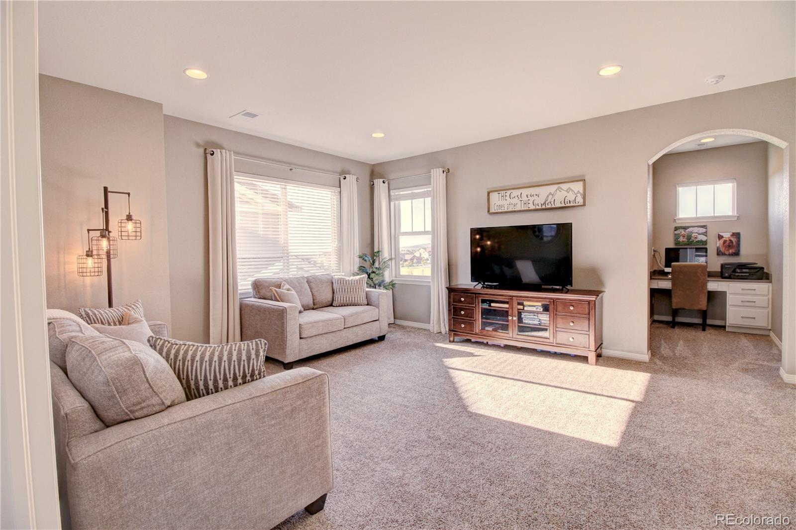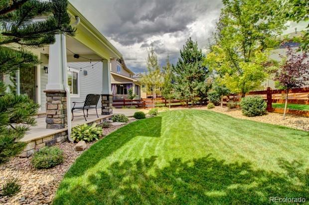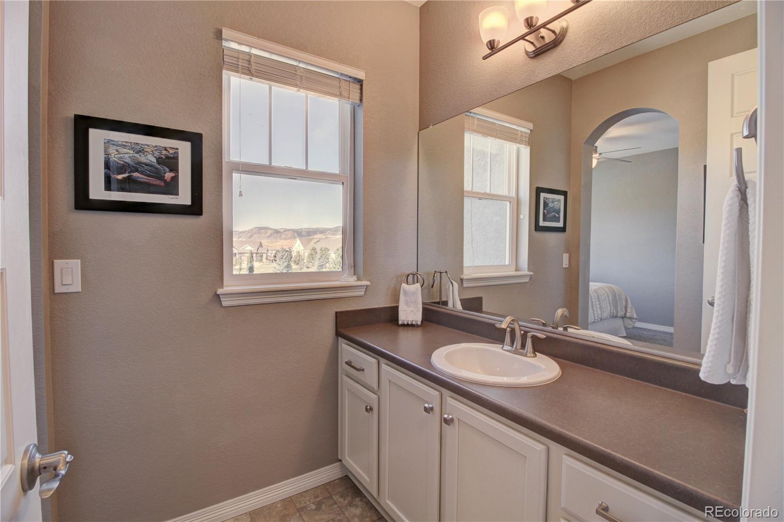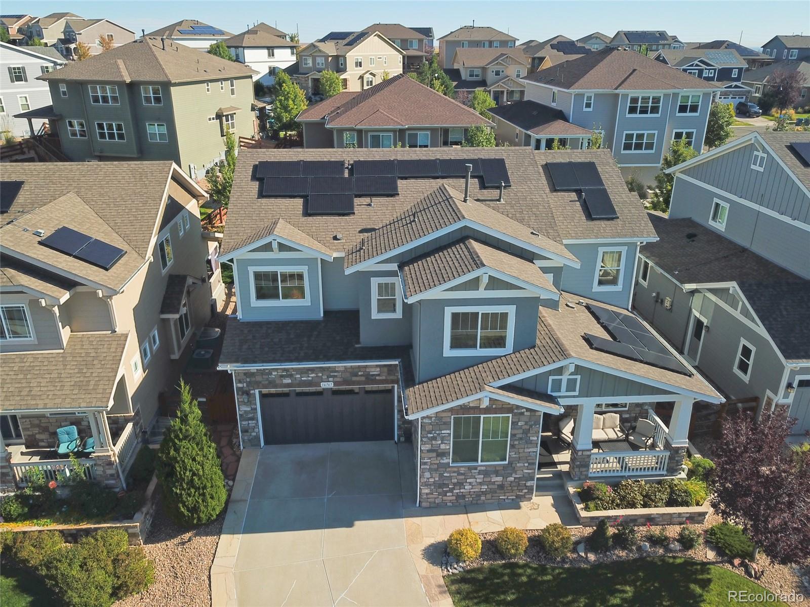 Welcome to this premier 2-story DR Horton home, perfectly situated in one of Arvada’s most sought-after neighborhoods, Leyden Rock! With a prime location directly across from Daybreak Park & stunning mtn. views, this home combines beauty, comfort & convenience. Step inside to rich dark hardwood flooring & the inviting warmth of a gas stone fireplace, setting the tone for relaxation. The main level features a guest bdrm and an office/den, along w/ upgraded finishes throughout, including 8-ft entry & interior doors. The chef’s kitchen impresses w/ upgraded tall cabinetry featuring soft-close doors & drawers, crown molding, under-cabinet lighting, a gas cooktop, pot filler, dual ovens, coffee bar, abundant counter space; perfect for cooking & gatherings. Upstairs, a spacious family/loft room offers addt'l living space for relaxation or play. The primary suite is a serene retreat complete w/ a generous sitting room & 2 large closets & ample storage. Second floor formal & finished laundry room w/ cabinet & shelf space, plus two additional bdrms connected by a Jack-n-Jill bath. Lrg. unfin. basement provides room to grow, plumbed for a future bath and ready for your customization. The 3-car tandem garage ensures ample parking & storage options. Enjoy breathtaking Colorado views from your cozy, S facing front porch, perfect for soaking up sunshine. The fenced backyard features an expanded flagstone patio with plenty of room for a firepit or hot tub, along with mature trees for added privacy. Garage is finished w/ insulation & drywall & epoxy floor. The paid-off solar panels keep electric bills to a minimum. Located in an amenity-rich community, you’ll enjoy access to 3 parks within walking or biking distance, 17 miles of hiking & biking trails, a community pool and clubhouse. The HOA hosts regular social events including food trucks, holiday gatherings, & movies in the park; something for all ages to enjoy. All of this is complemented by a highly rated school district.