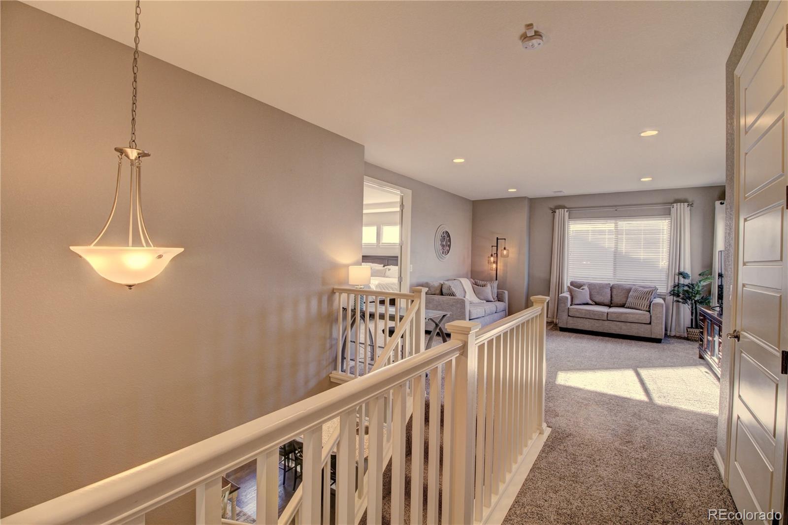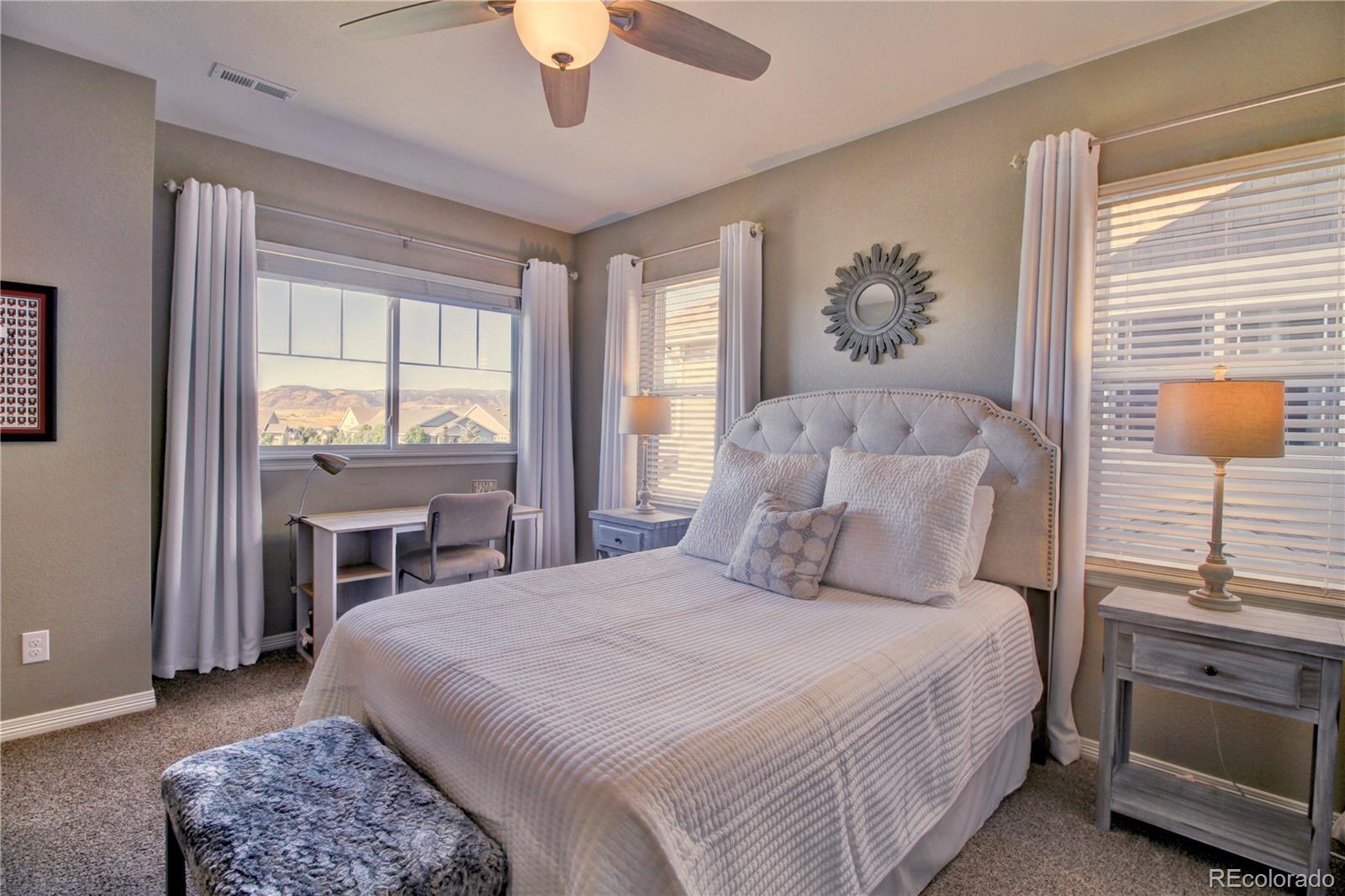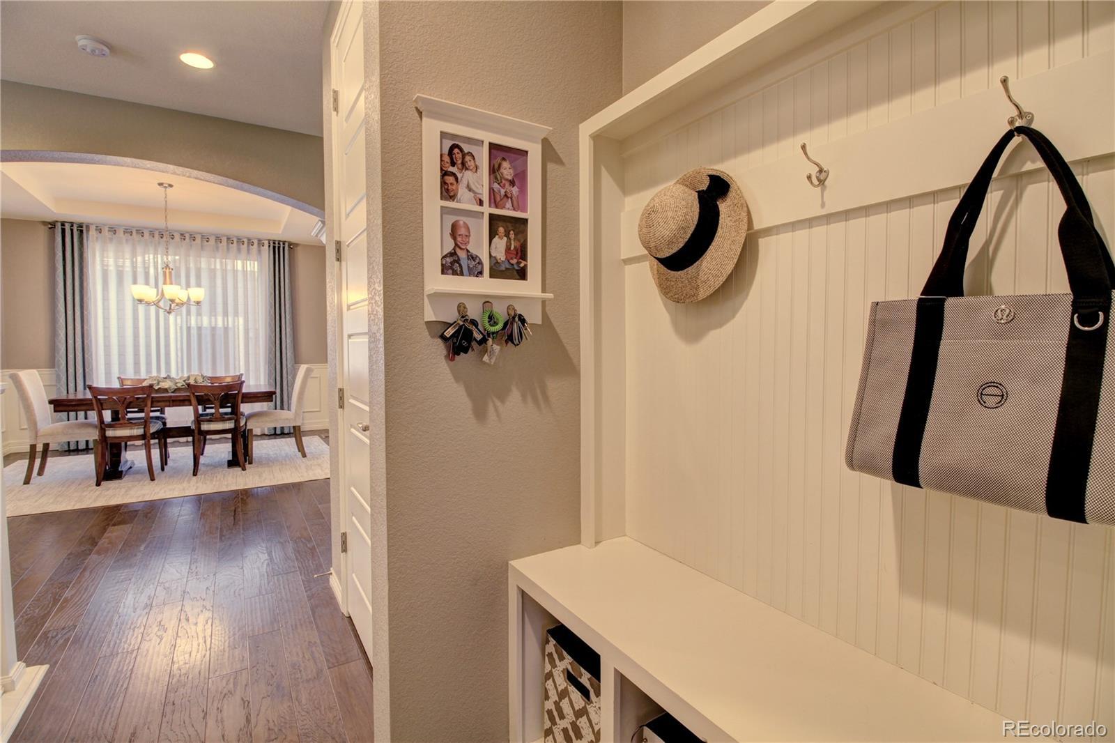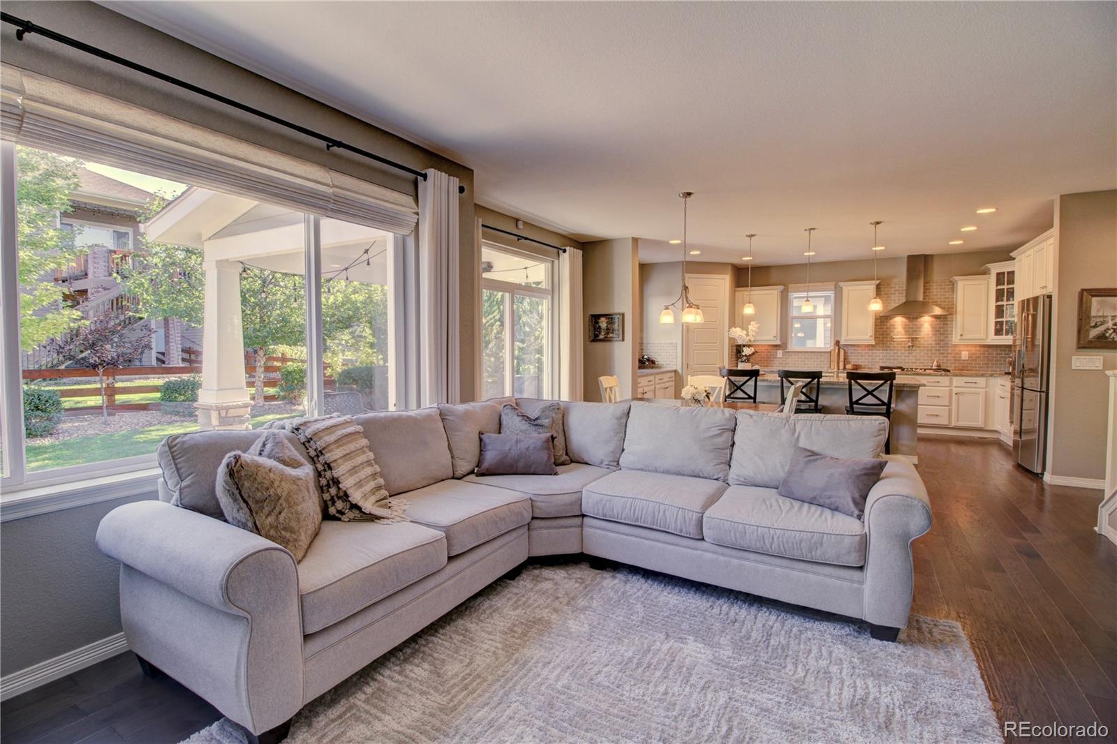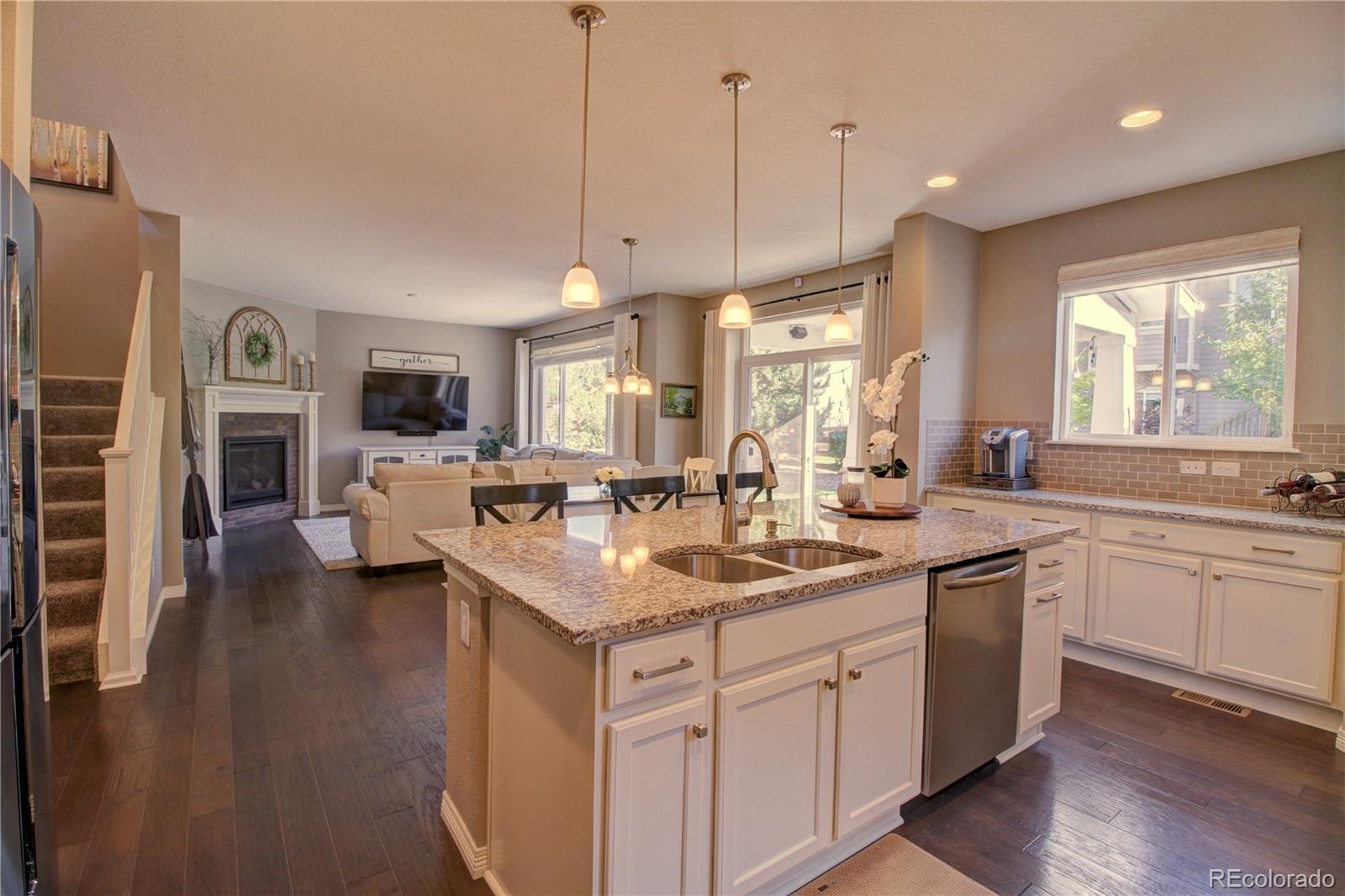 Welcome to this premier 2-story DR Horton home, perfectly situated in one of Arvada’s most sought-after neighborhoods, Leyden Rock! With a prime location directly across from Daybreak Park & stunning mtn. views, this home combines beauty, comfort & convenience. Step inside to rich dark hardwood flooring & the inviting warmth of a gas stone fireplace, setting the tone for relaxation. The main level features a guest bdrm and an office/den, along w/ upgraded finishes throughout, including 8-ft entry & interior doors. The chef’s kitchen impresses w/ upgraded tall cabinetry featuring soft-close doors & drawers, crown molding, under-cabinet lighting, a gas cooktop, pot filler, dual ovens, coffee bar, abundant counter space; perfect for cooking & gatherings. Upstairs, a spacious family/loft room offers addt'l living space for relaxation or play. The primary suite is a serene retreat complete w/ a generous sitting room & 2 large closets & ample storage. Second floor formal & finished laundry room w/ cabinet & shelf space, plus two additional bdrms connected by a Jack-n-Jill bath. Lrg. unfin. basement provides room to grow, plumbed for a future bath and ready for your customization. The 3-car tandem garage ensures ample parking & storage options. Enjoy breathtaking Colorado views from your cozy, S facing front porch, perfect for soaking up sunshine. The fenced backyard features an expanded flagstone patio with plenty of room for a firepit or hot tub, along with mature trees for added privacy. Garage is finished w/ insulation & drywall & epoxy floor. The paid-off solar panels keep electric bills to a minimum. Located in an amenity-rich community, you’ll enjoy access to 3 parks within walking or biking distance, 17 miles of hiking & biking trails, a community pool and clubhouse. The HOA hosts regular social events including food trucks, holiday gatherings, & movies in the park; something for all ages to enjoy. All of this is complemented by a highly rated school district.