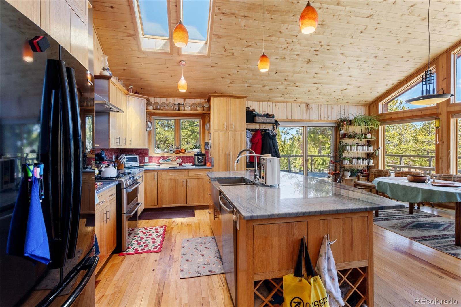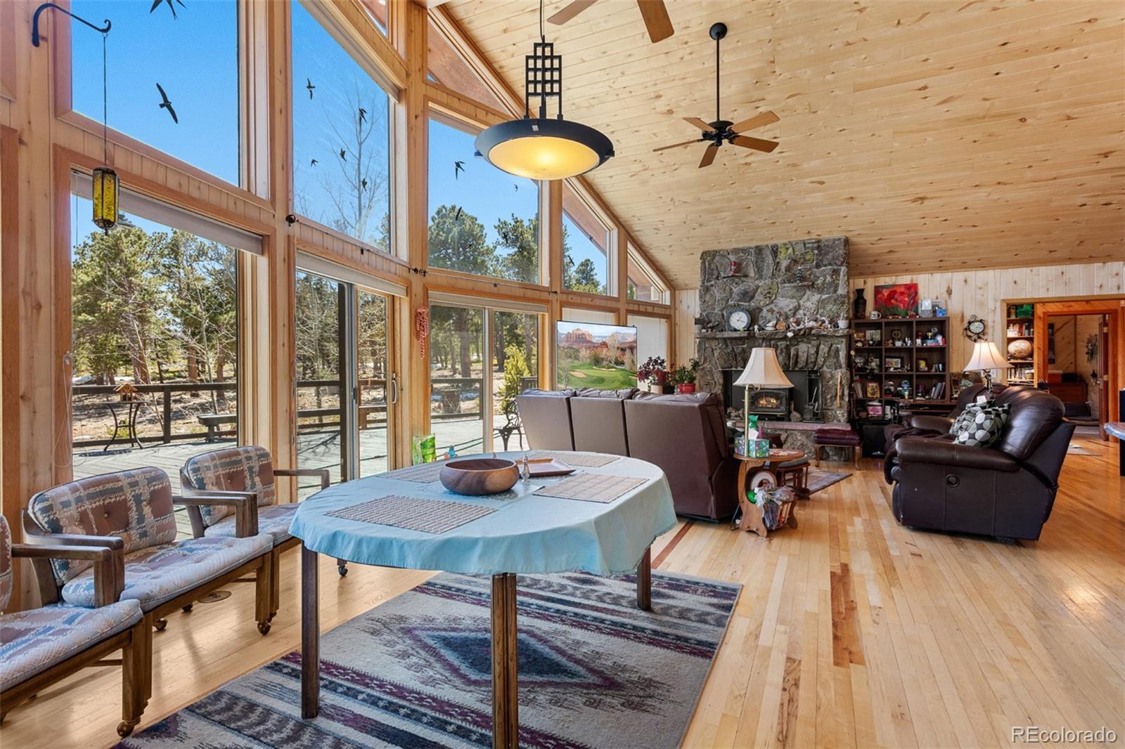 Secluded Mountain Retreat with Stunning Views – A True Colorado Escape! Welcome to your dream mountain getaway! Nestled among towering pines on 14 private acres, this enchanting retreat offers breathtaking views of the majestic mountains above Nederland, just off the famed Peak to Peak Scenic Highway. Step inside to soaring floor-to-ceiling windows that flood the home with natural light and frame the incredible outdoor scenery. The heart of the living area features a moss rock fireplace with a wood stove insert, creating a cozy, rustic ambiance perfect for chilly mountain evenings. Designed with sustainability and comfort in mind, the home is equipped with solar panels and radiant heated floors, providing energy-efficient, year-round warmth. Situated on a private road and backing to national forest land, this property offers unparalleled privacy, endless exploration, and a true connection to nature. Whether you're hiking out your back door or simply enjoying the serenity of your surroundings, this home is a rare find. Don't miss your opportunity to own a piece of Colorado paradise — schedule your private tour today!