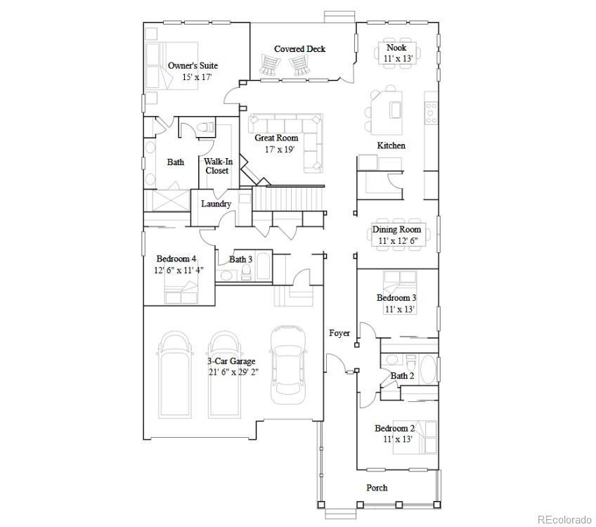 Available NOW! Guilford Estates is a new community with only 28 homesites. Thoughtfully designed with 2,527 square feet of modern living space and an impressive 3-car garage, this home welcomes you with 9' ceilings and wide plank vinyl flooring throughout the main living areas. At its heart, an open-concept Great Room connects seamlessly with the striking kitchen—showcasing a quartz-topped island and stainless steel appliances. Entertain easily in the formal dining room or on the covered deck. Retreat to the private owner’s suite, complete with a spacious walk-in closet, dual sinks, quartz countertops and a walk-in shower. Secondary bedrooms thoughtfully positioned off the foyer offer flexibility for guests or office space while an additional bedroom down a private hall adds even more versatility. Energy efficiency shines with dual-glazed windows, LED lighting and advanced insulation. Experience Colorado living at its finest in a desirable community conveniently located near dining, shopping, entertainment, and everyday amenities. Includes a Washer & Dryer and Whole House Blinds!