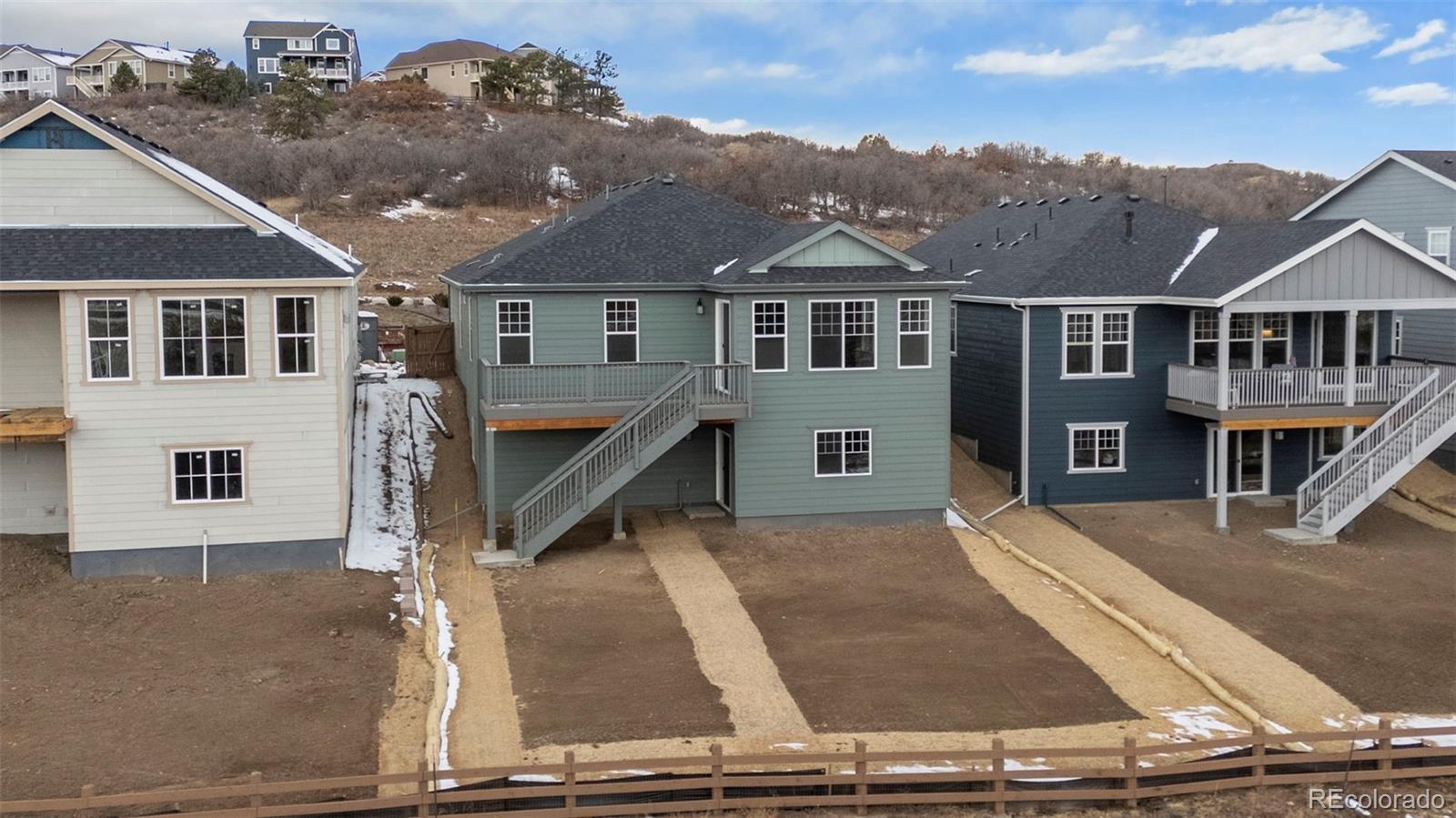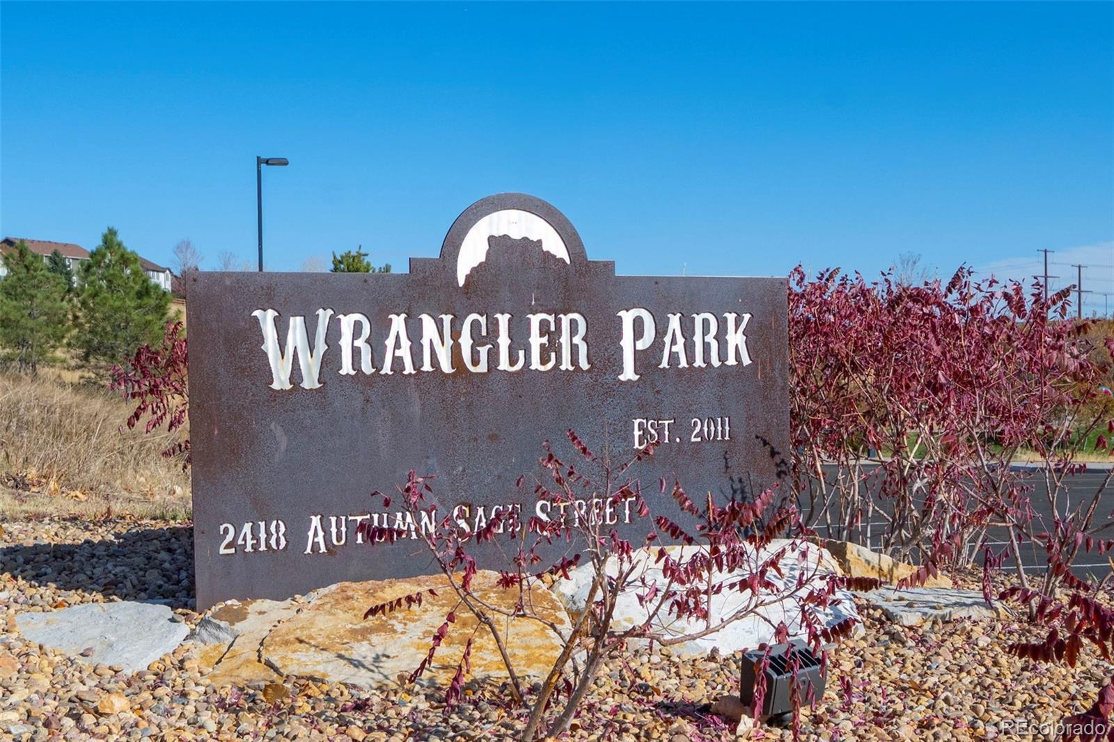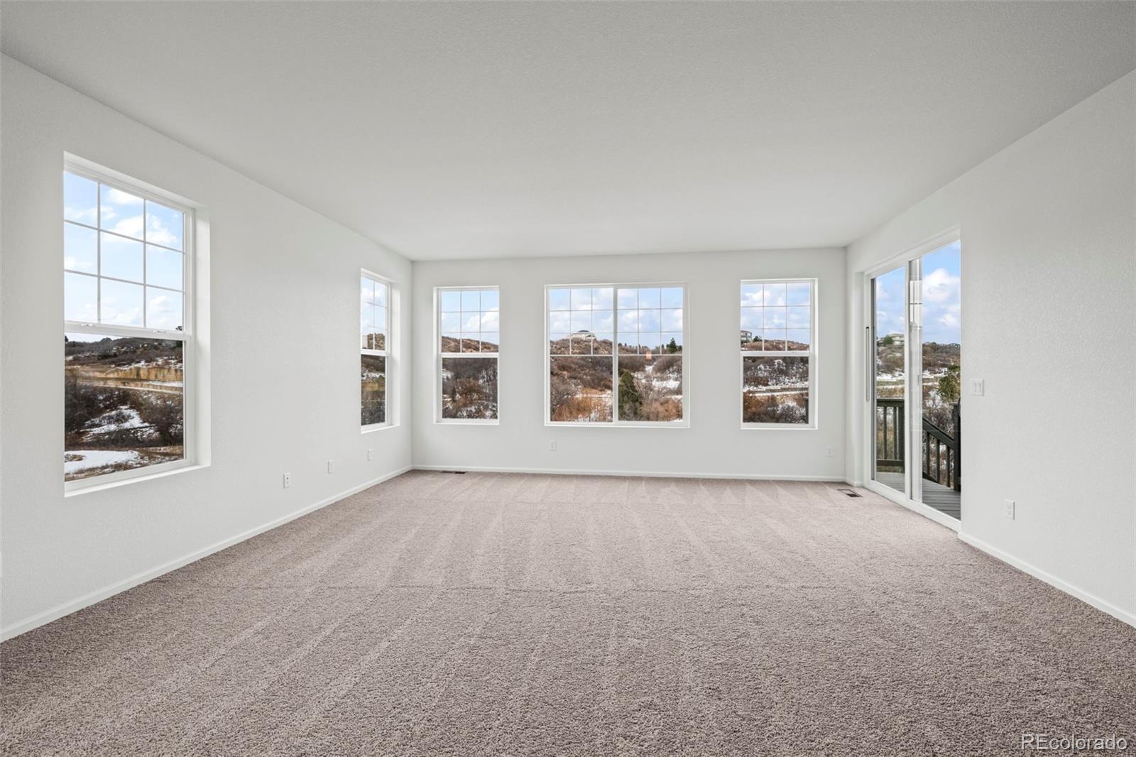 Beautiful ranch home offering a walk-out basement in a great location with gorgeous natural views and no homes across the street or behind. Inside, enjoy an open and inviting floorplan with high ceilings and a spacious great room that flows seamlessly to the large uncovered deck—an ideal extension of your living and entertaining space. The eat-in kitchen features a large center island, 42” truffle-stained hardwood cabinets, granite counters, and GE Profile stainless steel electric range, dishwasher, and microwave. The main-floor primary suite includes a large walk-in closet and an en-suite bathroom with granite counters and LVP flooring. An office/flex room, two secondary bedrooms, full bathroom, and laundry room complete the main floor. The full unfinished walk-out basement gives you the flexibility for storage or to customize additional living space to fit your lifestyle. The community offers both nature and convenience with miles of walking and hiking trails right outside your door. You’ll love the nearby Swim Club with clubhouse, pool, fireplace, and gathering spaces, along with Dog Bone Park, Wrangler Park with tennis courts, playgrounds, fields, and Ravenwood Park featuring stunning views and the popular in-ground slide. Close to I-25 makes commuting to Denver or Colorado Sprigs easy. Don't miss this amazing opportunity to own this ranch home in the perfect spot!