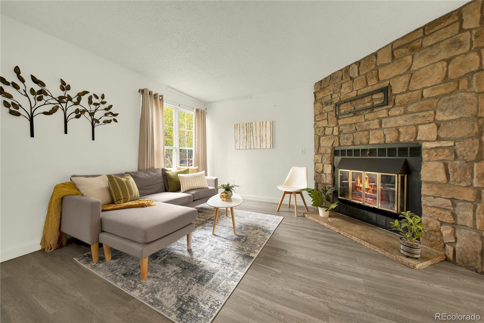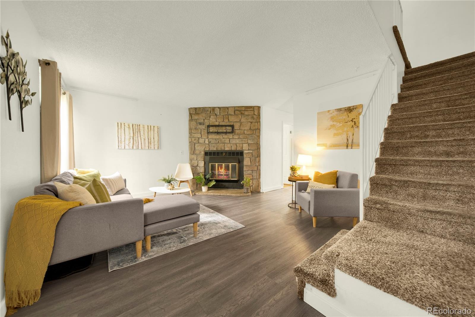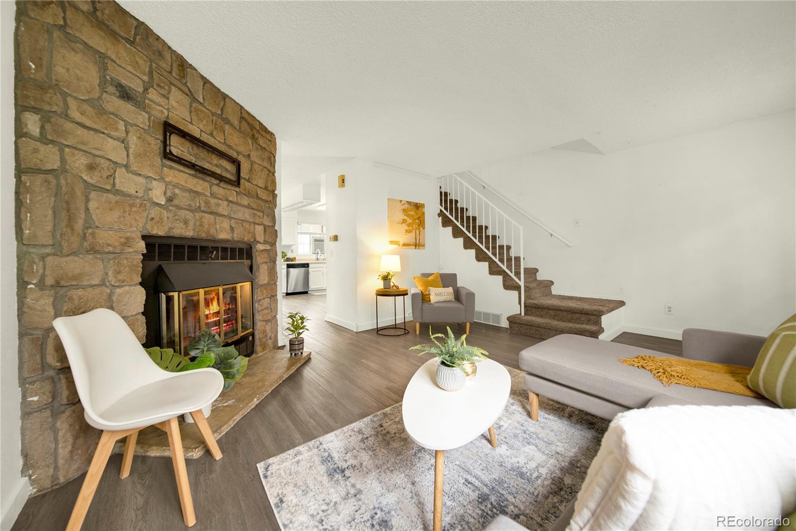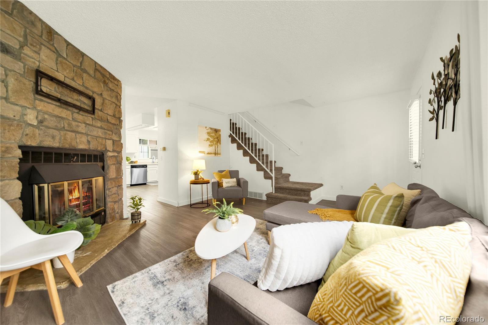 Welcome home to this Sunstone townhome full of potential! Featuring 3 bedrooms and 2 baths, this home offers a comfortable layout ready for your personal updates. The main level includes laminate flooring and a cozy living room with a wood-burning fireplace—perfect for chilly nights. The open kitchen and dining area provide great space for gathering, and the kitchen is equipped with sleek stainless-steel appliances for a modern touch. Upstairs, you’ll find three spacious bedrooms and a full bath. Step out back to a private patio with a storage closet—ideal for a grill or small seating area. Enjoy open space in front and behind the home, plus access to the community pool for summer fun! Centrally located with easy access to shopping, dining, parks, and more, this townhome could be a great investment and a place to truly make your own!