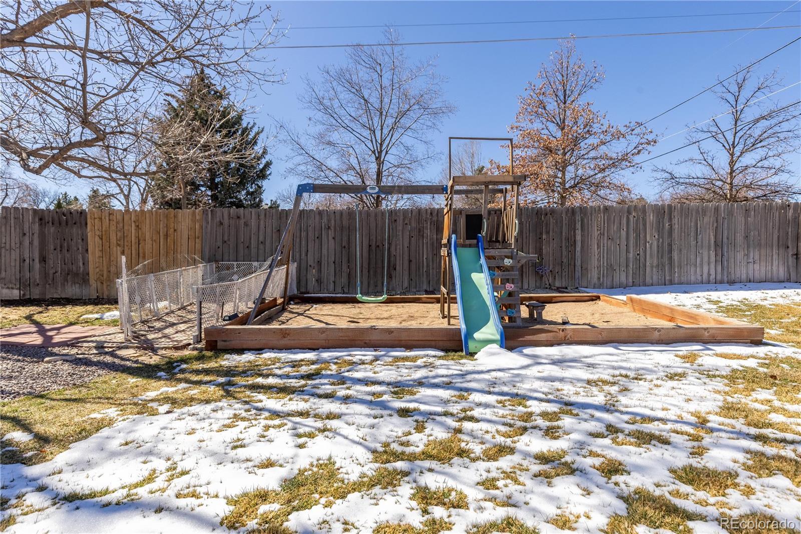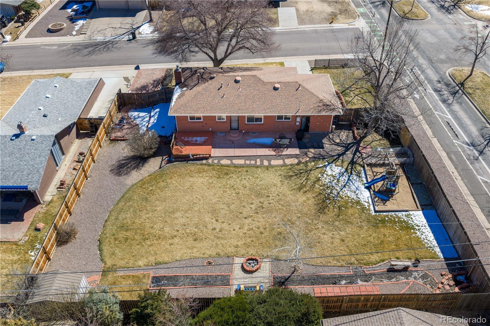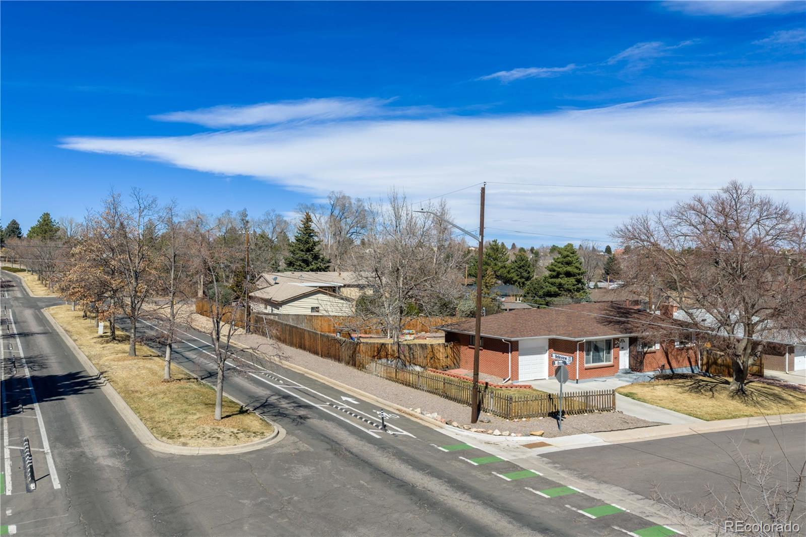 Enjoy a tranquil setting with no HOA in the highly desirable Centennial Estates neighborhood of Littleton. Your "forever home" is located on a quiet, sparsely traveled section of Belleview, which remains a peaceful, one-lane-each-direction neighborhood street here. Situated on a sprawling corner lot shaded by massive mature trees, this ranch-style residence offers the rare convenience of true single-floor living. You are welcomed into a sun-drenched living room that leads into a large, open kitchen—a unique find for this neighborhood, where smaller galley-style kitchens are the norm. The updated kitchen boasts quartz countertops, stainless steel appliances, and a comfortable eat-in area. Down the hall, you’ll find two secondary bedrooms and a full bath, along with the primary suite that features convenient en-suite access to the main-floor powder bath. The exceptionally functional and well-executed finished basement is centered around a massive family room with a cozy fireplace. This level also includes a fourth non-conforming bedroom, a 3/4 bath, and a huge laundry room. For those with extra gear, a large unfinished storage area provides all the room you need. Outside, the massive, privately fenced backyard is a true retreat, featuring an adjoining sunny deck and patio, a firepit, and a playground. Complete with professional landscaping, a dedicated dog run, and lush trees, this outdoor space is built for both relaxation and play. This is truly a home, not just a house, offering the perfect blend of updated interiors and expansive outdoor living in a prime Littleton location.