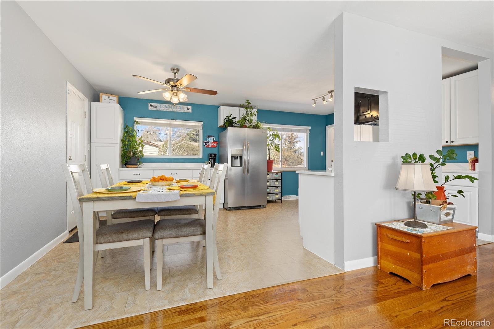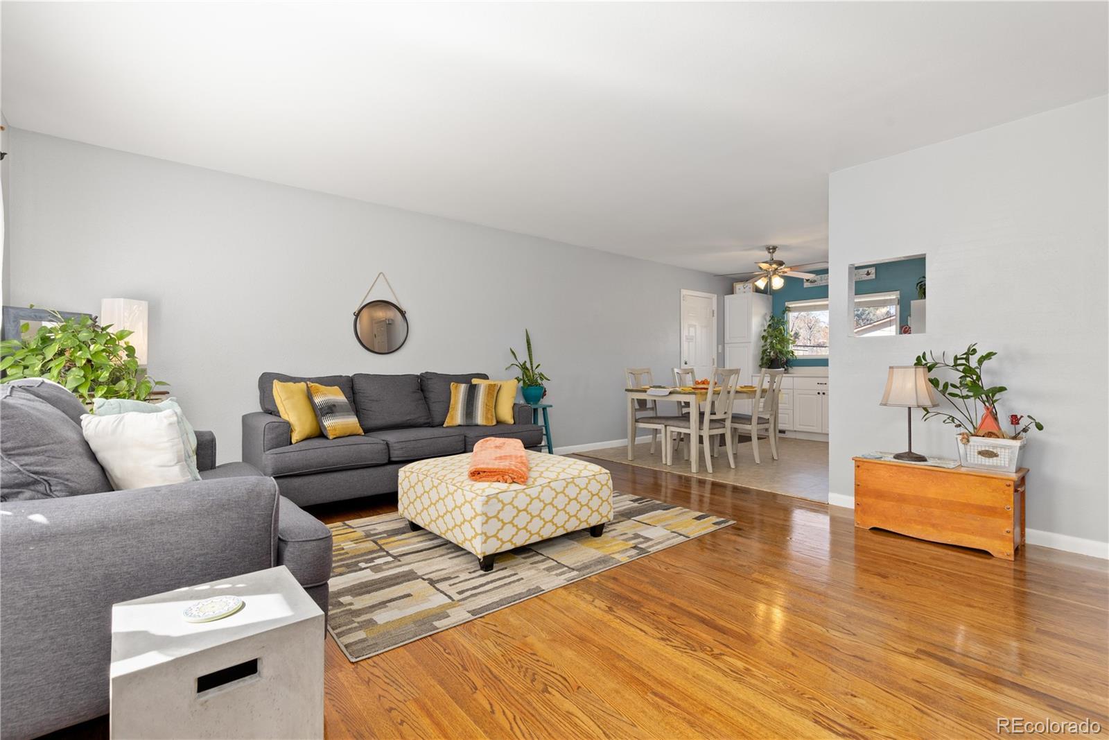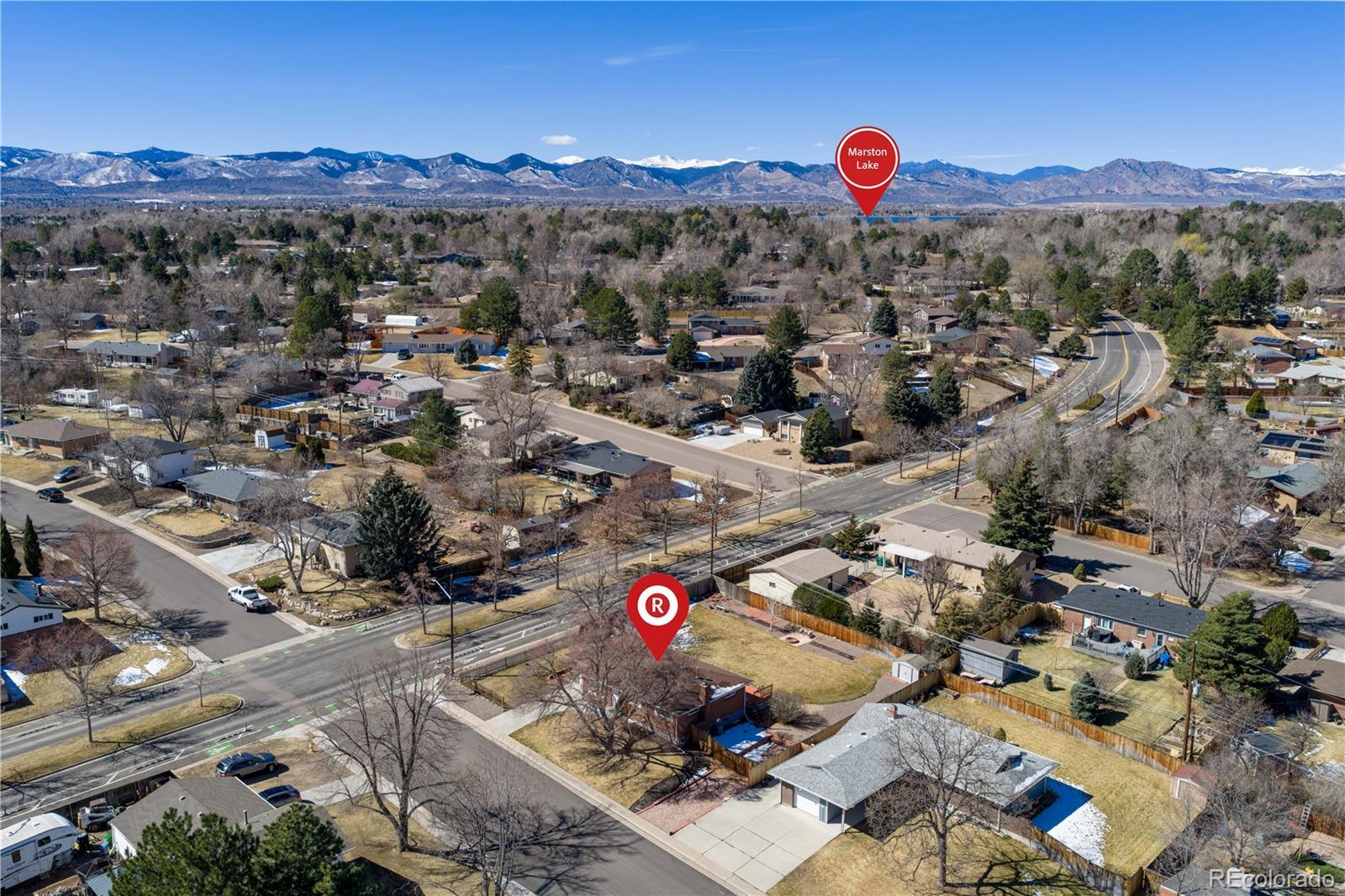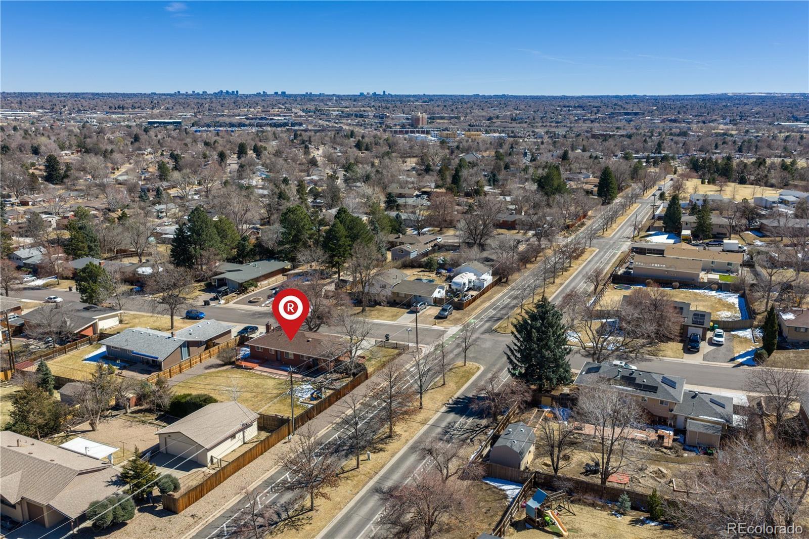 Enjoy a tranquil setting with no HOA in the highly desirable Centennial Estates neighborhood of Littleton. Your "forever home" is located on a quiet, sparsely traveled section of Belleview, which remains a peaceful, one-lane-each-direction neighborhood street here. Situated on a sprawling corner lot shaded by massive mature trees, this ranch-style residence offers the rare convenience of true single-floor living. You are welcomed into a sun-drenched living room that leads into a large, open kitchen—a unique find for this neighborhood, where smaller galley-style kitchens are the norm. The updated kitchen boasts quartz countertops, stainless steel appliances, and a comfortable eat-in area. Down the hall, you’ll find two secondary bedrooms and a full bath, along with the primary suite that features convenient en-suite access to the main-floor powder bath. The exceptionally functional and well-executed finished basement is centered around a massive family room with a cozy fireplace. This level also includes a fourth non-conforming bedroom, a 3/4 bath, and a huge laundry room. For those with extra gear, a large unfinished storage area provides all the room you need. Outside, the massive, privately fenced backyard is a true retreat, featuring an adjoining sunny deck and patio, a firepit, and a playground. Complete with professional landscaping, a dedicated dog run, and lush trees, this outdoor space is built for both relaxation and play. This is truly a home, not just a house, offering the perfect blend of updated interiors and expansive outdoor living in a prime Littleton location.