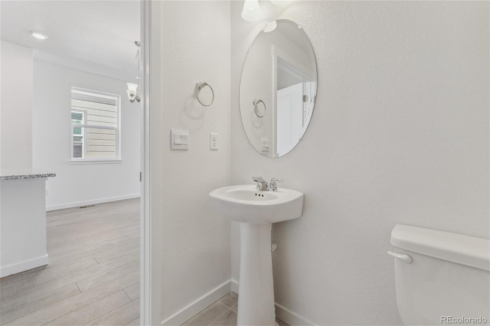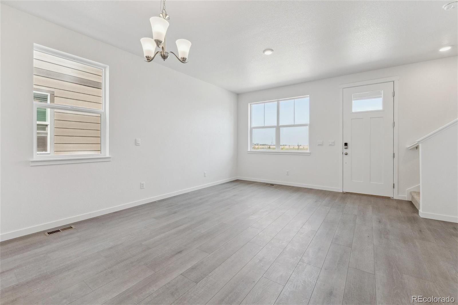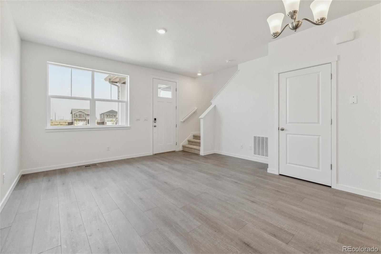 Immerse yourself in the allure of the Augusta paired home at Settlers Crossing! This 3-bed, 2.5-bath haven spans 1,503 sq ft. Step through the covered front porch into a stylish living area, complete with a powder bath for convenience. The open-concept kitchen, dining nook, and living area provide an expansive space tailored to your lifestyle. Upstairs, discover the comfort of the large primary bedroom with a walk-in closet, dual vanity sinks, and a stand-alone shower. Enhancing practicality is the second-floor laundry room. Designed for refined living, the Augusta layout maximizes bedroom sizes and invites an open concept on the main floor. Revel in the local amenities of Commerce City, proximity to Denver International Airport, and community features such as parks and trails. ***Estimated Delivery Date: December. Photos are representative and not of actual property***