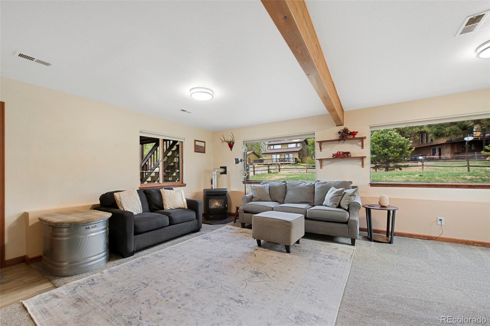 All the hard work has been done in this stunning A-frame home located in the desirable Will-O’-Wisp community! Thoughtfully updated from top to bottom, the home features newer windows, fire-resistant siding, and an updated roof. The charming open floor plan showcases floor-to-ceiling windows and vaulted ceilings that flood the space with natural light. Enjoy mountain-style, water-resistant laminate flooring throughout the main level, along with a fully remodeled kitchen featuring new appliances (2024), a Quartzite countertop, and subway tile backsplash (2025). Multiple angles throughout the home offer beautiful views, and the community includes a playground, two ponds, and scenic walking trails. The main-level primary suite includes a completely remodeled ¾ bath with a seamless glass shower, updated cabinetry, and countertops. Upstairs you’ll find brand new carpeting, two additional bedrooms, a loft, and a shared full bath. The main-floor laundry comes complete with washer and dryer. The finished walk-out lower level offers a large rec room with newer carpeting, a full bath, and access to the fenced lower deck and one-car garage. Additional highlights include an upper deck, spacious storage shed, and fully fenced yard. Other updates include a new water heater (2024), pellet stoves (2018 & 2019), a new garage door (2018), and all new six-panel solid wood doors. This move-in ready mountain retreat has it all!