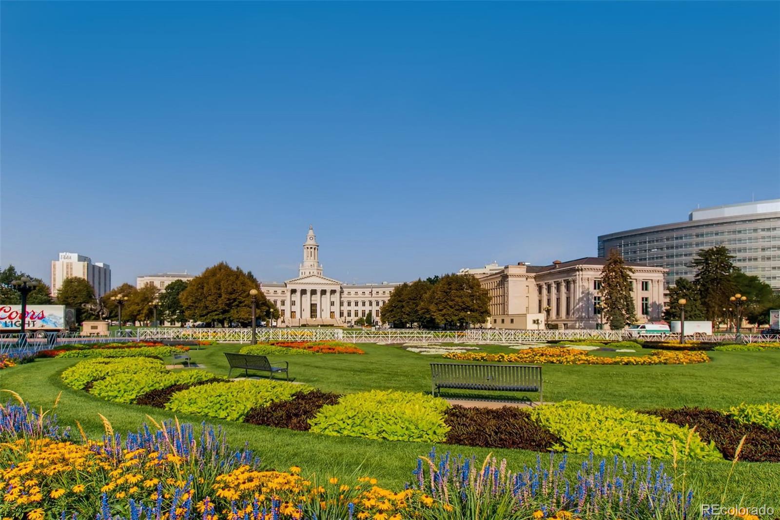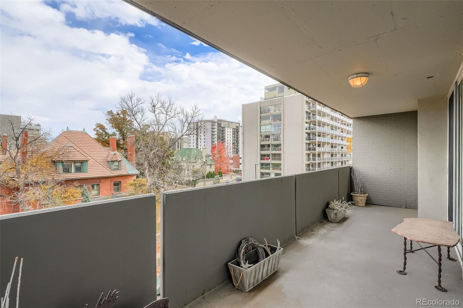 Cap Hill Gem! This surprisingly spacious 1-bedroom condo lies in the heart of Capitol Hill, with restaurants, bars, grocery stores, parks, and more right outside your door. The unit is ideal for a primary residence, an investment property, or a crash pad in the vibrant heart of the city! The open concept floor plan is flooded with natural light (floor-to-ceiling glass) and maximizes efficiency. The kitchen features custom quartz countertops, undermount sink, stainless steel appliances (nearly-new fridge), bar seating, pendant lighting, and plenty of storage - adjacent to space for casual dining. The large bedroom boasts plenty of room for even a king-sized bed, and includes TWO closets. The full bathroom is nicely updated with two touch-latch storage drawers. Access your east-facing private patio from nearly-new 8’ tall energy-efficient sliding patio doors in the living room AND THE BEDROOM. This expansive 24' patio has plenty of room for outdoor living and al fresco dining overlooking the stately mansions of leafy Logan Street. Shared laundry (coin, credit, or preloaded card) is available on every floor, and directly adjacent to #5i. Your deeded parking space (#6) is conveniently located outside the rear building entrance – no searching for Cap Hill on-street parking! The Barrington Condominiums include secured entrances (front, side, and rear) plus seasonal pool, saunas, workout facility, common area, and party room. MODEST HOA FEES COVER HEAT, A/C, WATER, & PARKING! The building is meticulously maintained with HOA and building staff on site. Luxury Cap Hill living awaits with this move-in ready gem! **** Furnishings negotiable with full price offer! **** Check out http://909nloganstreet5i.info/ for more details! ****