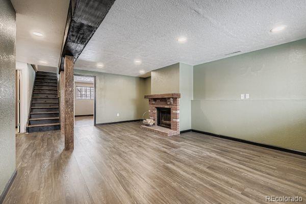 A wonderful opportunity awaits! Beautifully updated bi-level home offering 4 bedrooms, 2 bathrooms, and an attached 2-car garage. The inviting interior features a functional, light-filled layout with generously sized rooms throughout. The spacious living room easily accommodates a large sectional and entertainment center. The kitchen is both stylish and functional, showcasing stainless steel appliances, a striking brick accent wall, and newer cabinetry. The adjoining dining area opens to a covered wood deck—ideal for outdoor dining and entertaining. The expansive, fully fenced backyard provides ample space for play, pets, and gatherings. The main level includes a large primary bedroom, a second bedroom, and a full bathroom. The finished lower level offers additional living space with a spacious family room highlighted by a brick-surround, wood-burning fireplace. Two additional bedrooms (perfect for an office, gym, or playroom), a full bathroom with custom tile and a newer vanity, and a laundry room complete the basement. Conveniently located near shopping, dining, Fort Carson, and Peterson Space Force Base, this home offers the best of central Colorado Springs living in a quiet, established neighborhood.
