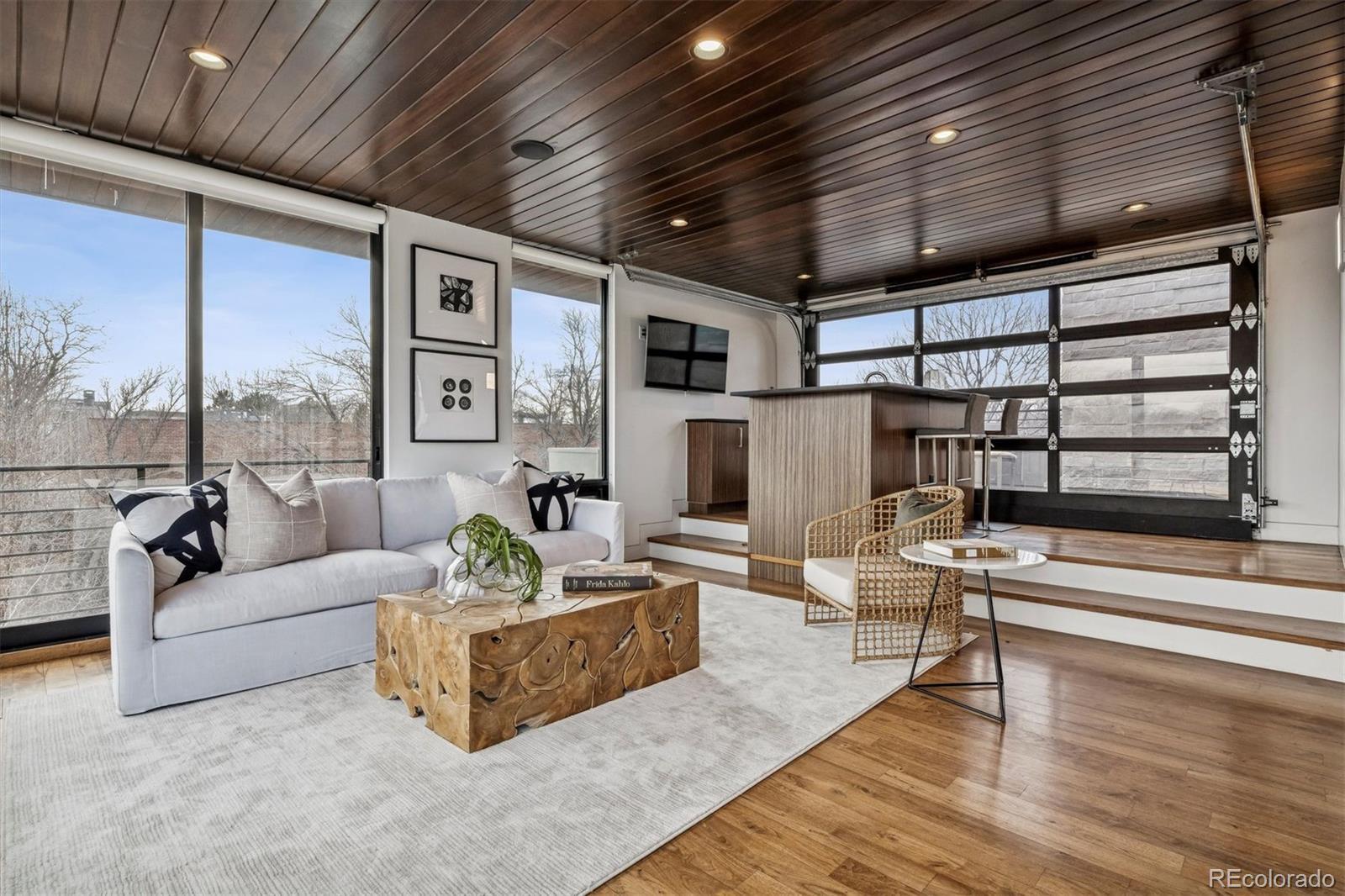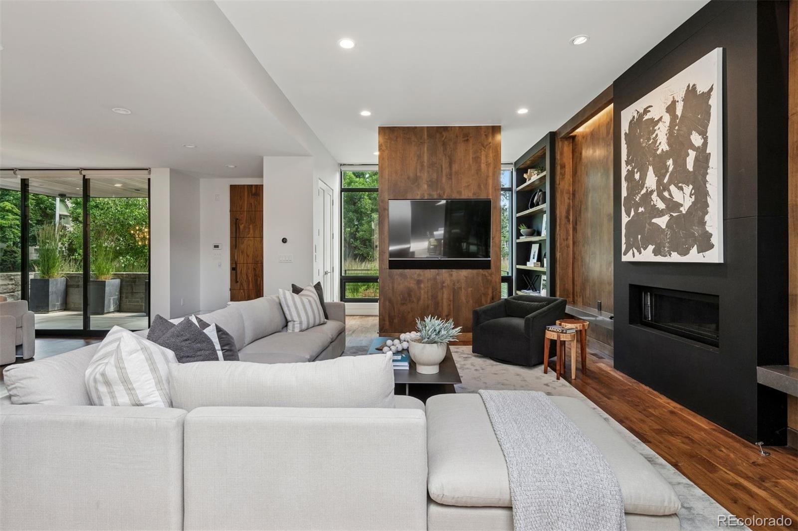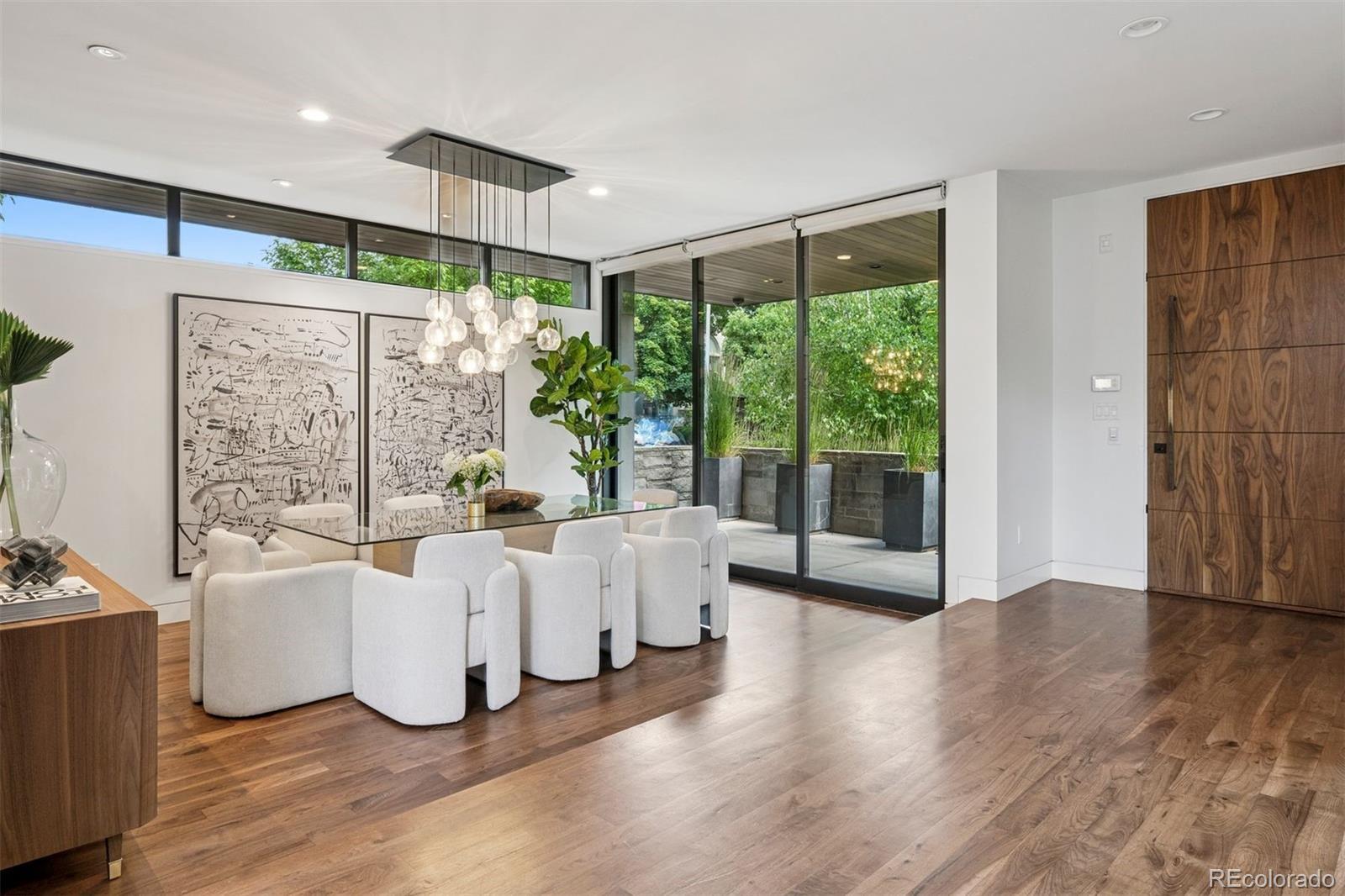 Perfectly positioned on a sun-lit corner lot in Cherry Creek North, this modern glass-and-stone residence offers a thoughtfully designed home just steps from the area’s renowned restaurants, coffee shops, and boutiques. Designed by architect Steve Barsch and custom built by Squibb Estates in 2015, the home is filled with natural light across all four levels, creating a striking presence both day and night. Sophisticated finishes include walnut floors, marble kitchen countertops and island, elevator to all 4 floors, custom built-ins, and a dramatic open-riser staircase. The primary suite features a walk-in closet and a spa-like five-piece marble bath. An additional en-suite bedroom and exceptional private office with its own balcony—complete with an adjacent closet and full bath—can easily function as a 3rd bedroom to provide flexibility for guests or family. Designed for both everyday living and entertaining, the third level is a true standout, offering a full bar and access to multiple patios. The basement level features a large gym and dedicated wine storage. Additional highlights include a private elevator, heated driveway and courtyard, a lift for a third car in the garage, Lutron lighting, home automation system, and exceptional security. Together, these features create a refined home designed for effortless living and entertaining in Cherry Creek North.