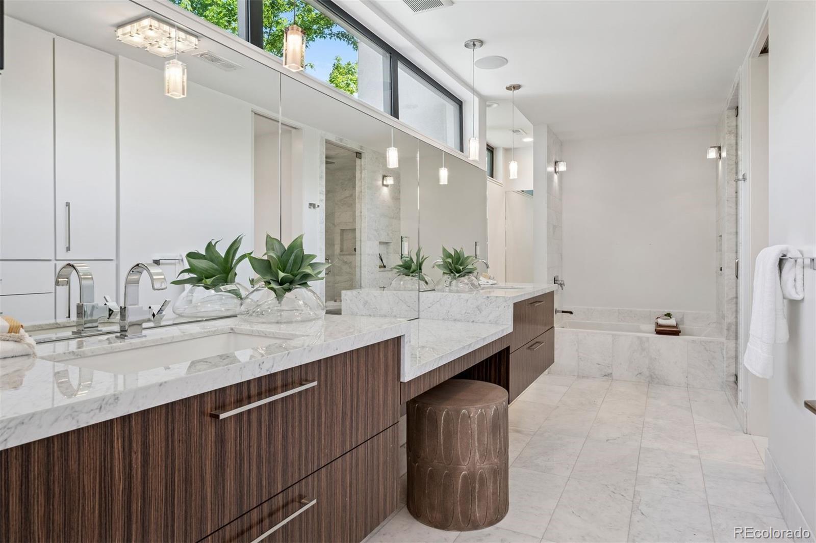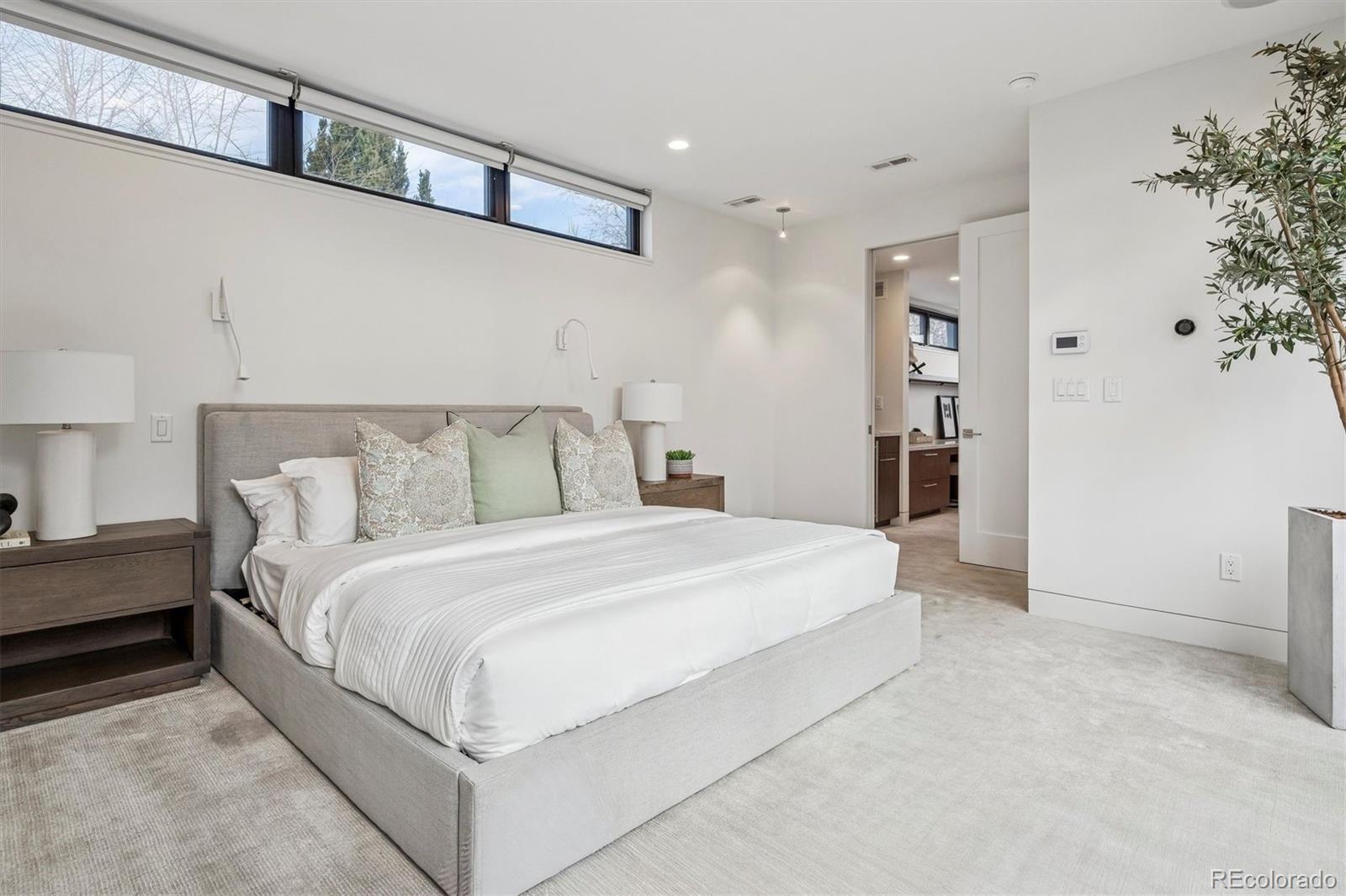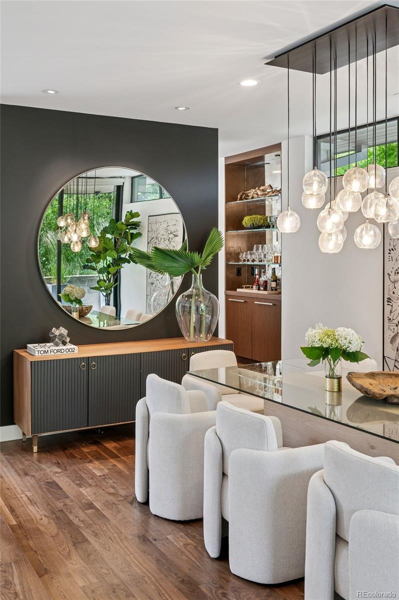 Perfectly positioned on a sun-lit corner lot in Cherry Creek North, this modern glass-and-stone residence offers a thoughtfully designed home just steps from the area’s renowned restaurants, coffee shops, and boutiques. Designed by architect Steve Barsch and custom built by Squibb Estates in 2015, the home is filled with natural light across all four levels, creating a striking presence both day and night. Sophisticated finishes include walnut floors, marble kitchen countertops and island, elevator to all 4 floors, custom built-ins, and a dramatic open-riser staircase. The primary suite features a walk-in closet and a spa-like five-piece marble bath. An additional en-suite bedroom and exceptional private office with its own balcony—complete with an adjacent closet and full bath—can easily function as a 3rd bedroom to provide flexibility for guests or family. Designed for both everyday living and entertaining, the third level is a true standout, offering a full bar and access to multiple patios. The basement level features a large gym and dedicated wine storage. Additional highlights include a private elevator, heated driveway and courtyard, a lift for a third car in the garage, Lutron lighting, home automation system, and exceptional security. Together, these features create a refined home designed for effortless living and entertaining in Cherry Creek North.