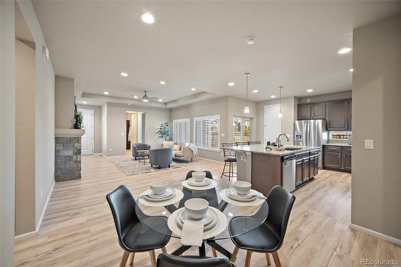 Welcome to low-maintenance living at its finest in this charming 3-bedroom, 2-bath ranch home located in the highly desirable 55+ community of Banning Lewis Ranch. This thoughtfully designed home features an open floorplan with abundant natural light and gorgeous LVP flooring throughout—perfect for comfort, style, and easy upkeep. The spacious kitchen flows seamlessly into the dining and living areas, creating an inviting space for both relaxation and entertaining. Included with the home are the T.V. wall mounts and a pool table—making move-in day even easier! The primary suite offers a peaceful retreat with an en-suite bathroom and ample closet space. The second bedroom provides great versatility for guests, while the third bedroom is non-conforming, ideal as an office, craft room, or additional flex space to suit your needs. Living in this vibrant 55+ community means enjoying an incredible array of amenities. Residents have access to The Barn, the exclusive 55-and-better clubhouse with a 24-hour fitness center and outdoor heated zero-entry pool. Outdoor enthusiasts will appreciate the bocce ball courts, pickleball courts, tennis courts, dog park, numerous parks, and miles of scenic hiking trails. Community services include trash removal, recycling, snow removal, and so much more—offering a truly carefree lifestyle. Don’t miss your opportunity to own in one of Colorado Springs’ most sought-after active adult communities!
