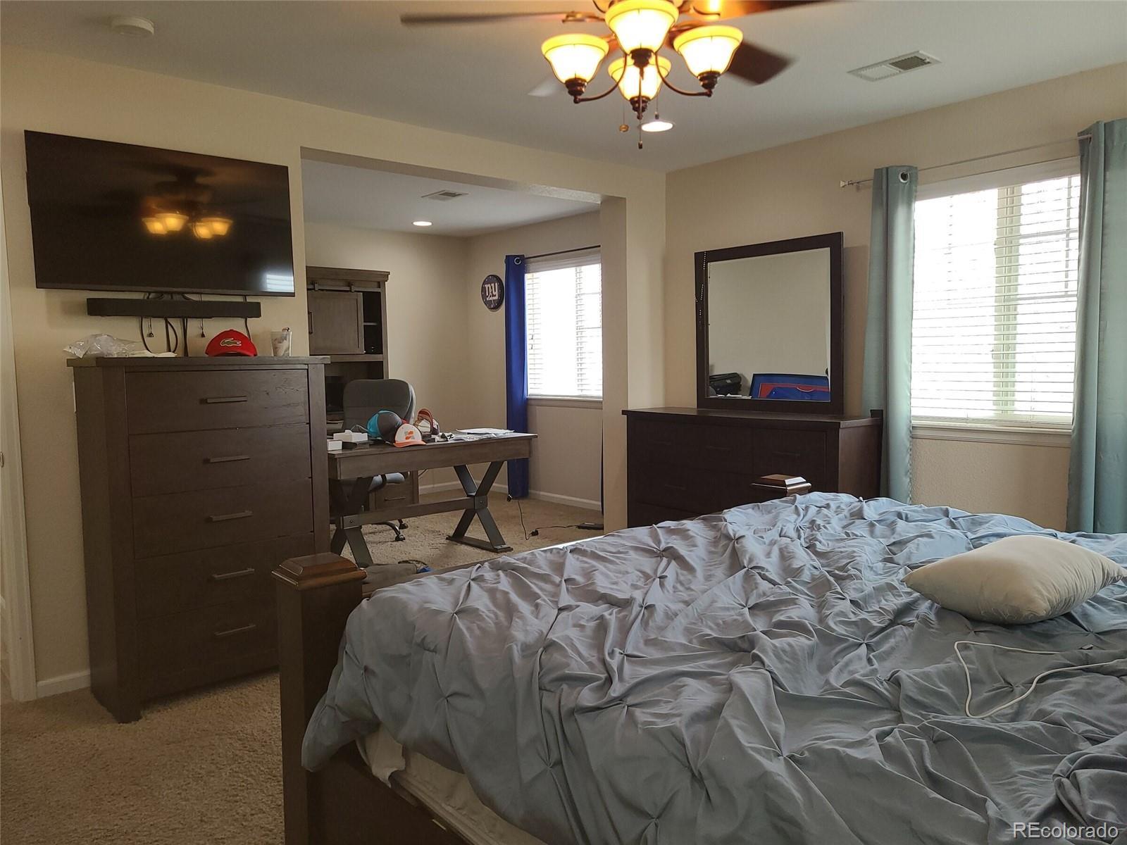 A well maintained home delivering smart design, efficient systems, and turn-key ease in the heart of Thornton. Inside, you’ll find 3 bedrooms, 2.5 baths, a flexible loft, and a dedicated office/den, giving you room to work, relax, and host. The soft neutral color palette creates a warm yet versatile living space. The 2,510 finished sq ft layout is bright and practical, with an open floor plan for easy flow between living, dining, and kitchen spaces so everyone stays connected. The kitchen is the hub of the home with generous countertop space and storage that keeps everything tidy, plus a spacious center island, quartz countertops, double oven, pantry, and additional cabinetry that supports effortless entertaining. The main floor living room features 9' ceilings, engineered hardwood, and a warm, cozy fireplace ideal for entertaining or relaxed living. Upstairs, the loft is ready for movie nights, a fitness zone, or a quiet reading corner, while the dedicated office/den supports focus time when you need it. Three comfortable bedrooms include a calm primary suite with bonus retreat, an en suite bathroom, extended counter space with double sinks, under-sink storage, and generous walk-in closet space. All bedrooms are well sized with excellent storage solutions. Need more space? The finished full basement expands your options with an all-purpose room featuring built-ins and an additional bath — ideal for guests, hobbies, or future flexibility. Located in desirable Fallbrook Farms, this patio home offers convenient living along a well-maintained greenbelt with access to parks, walking and biking trails, and outdoor amenities. Adams County Five Star schools are minutes away, with the middle school within walking distance. The location keeps your routine simple — minutes to grocery stores, quick access to I-25, Light Rail, Downtown Denver, E-470, and under 10 minutes to premier shopping, dining, and entertainment at Orchard Town Center, Denver Premium Outlets.