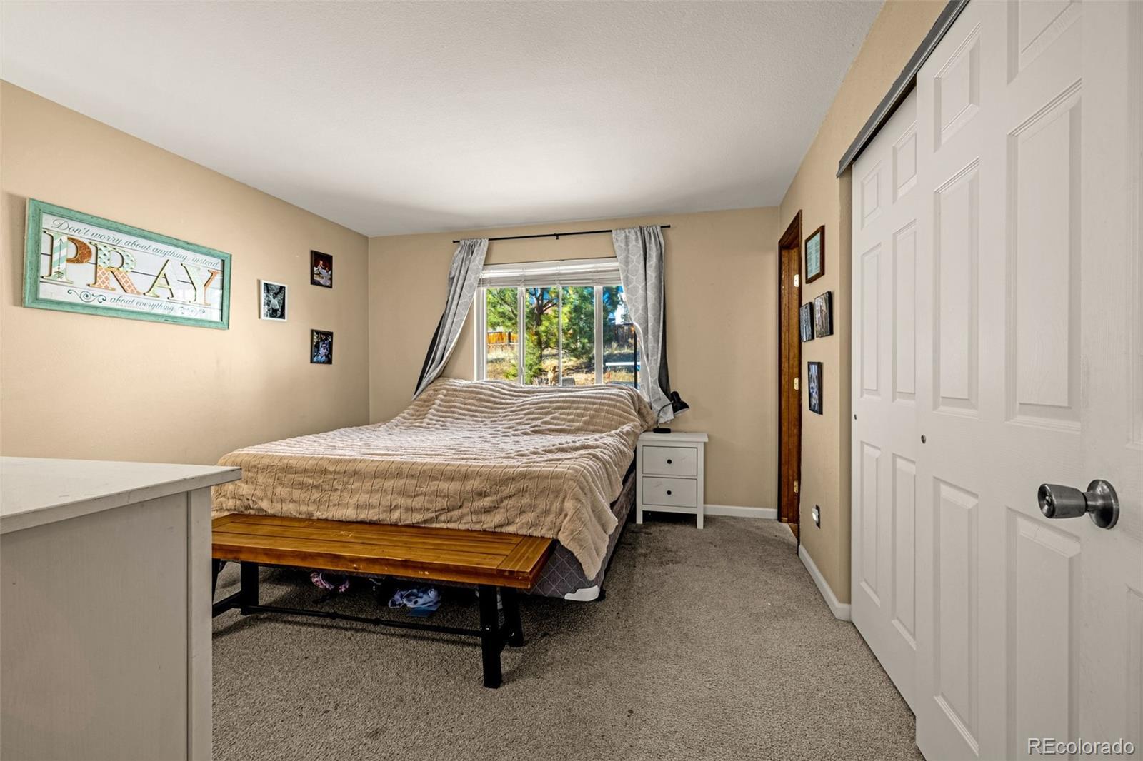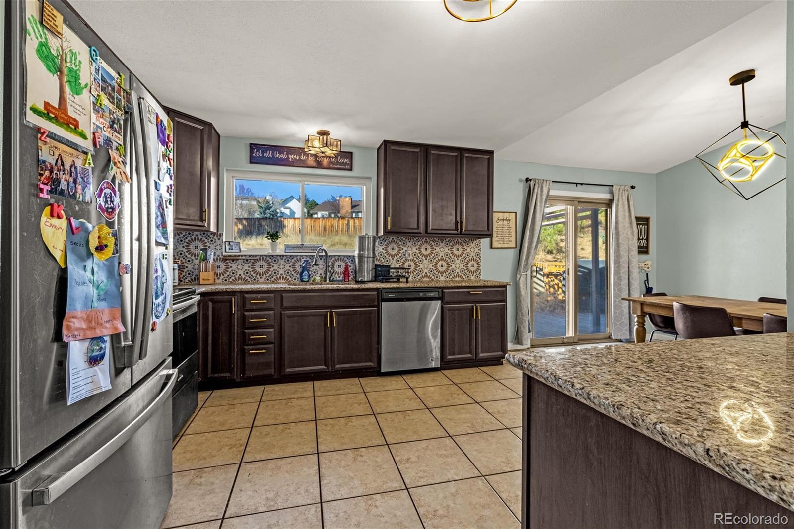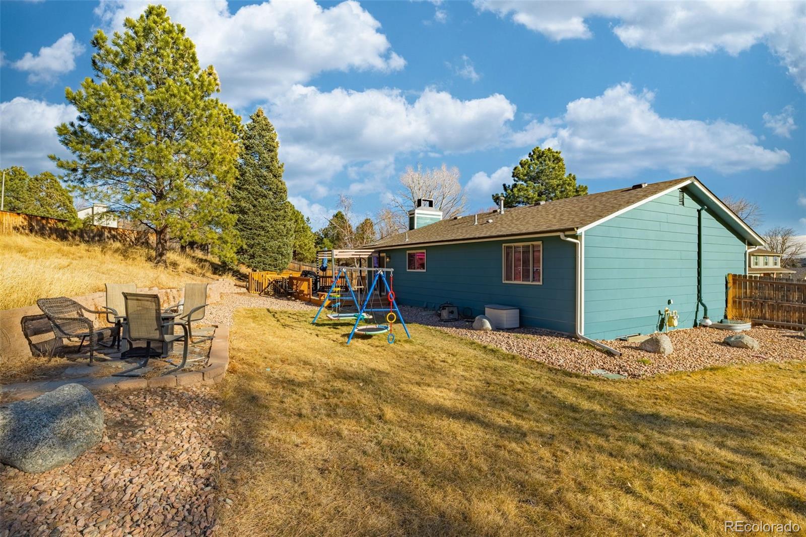 Set on a rare over half acre cul-de-sac lot in Rockrimmon, this inviting ranch style home offers a layout designed for comfort and connection. The bright and open main level flows effortlessly from the living room to the dining area and kitchen, making it ideal for hosting, relaxing, or everyday living. The kitchen features beautiful granite slab countertops, ample cabinetry, stainless appliances, and direct access to the backyard deck for easy indoor outdoor living. Modern light fixtures throughout, tastefully tiled bathroom floors, and fresh exterior paint contribute to the homes's clean, updated feel and curb appeal. Three spacious bedrooms are located on the main level, including a primary suite with a private bath. The finished basement adds exceptional flexibility with a large family room, an additional big bedroom and bathroom, a laundry area, and plenty of storage, making it perfect for guests, hobbies, or work from home needs. Outside, the massive backyard offers mature landscaping, native grasses, and room to unwind, entertain, or simply take in the Colorado views. Conveniently located near top rated schools, I-25, numerous shopping, plenty of dining, and endless outdoor recreation, this home combines space, scenery, and location in one exceptional package. Homes with this lot size, setting, and location are extremely rare. Schedule your showing today!