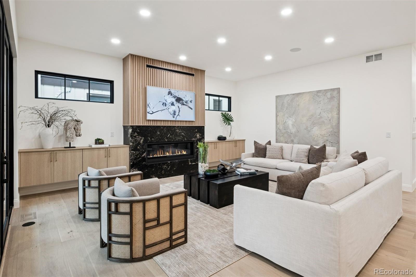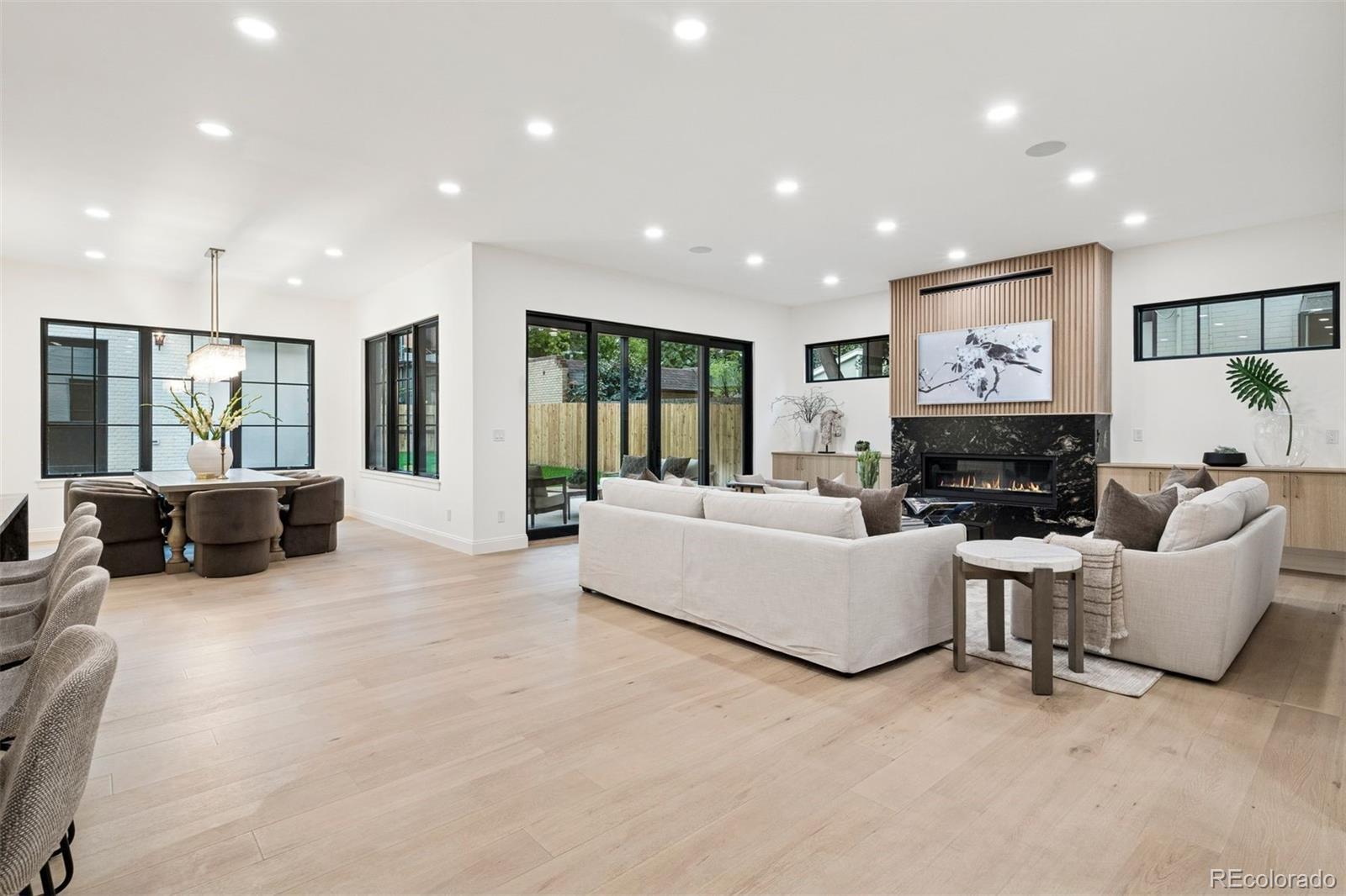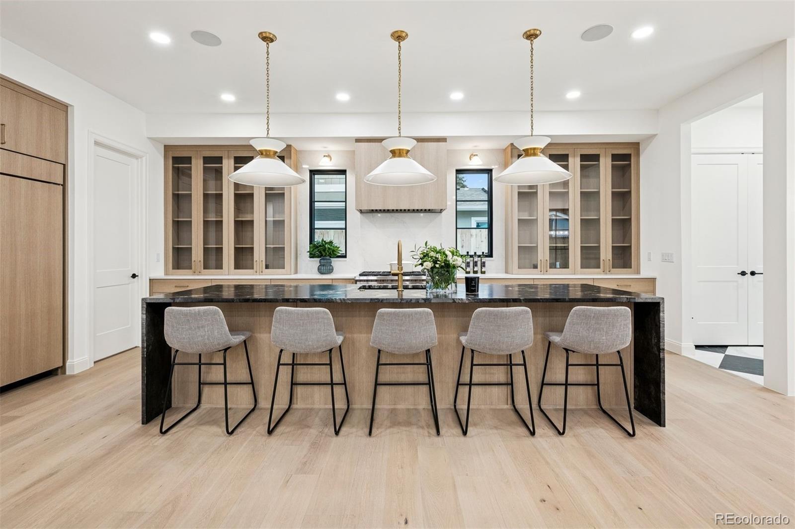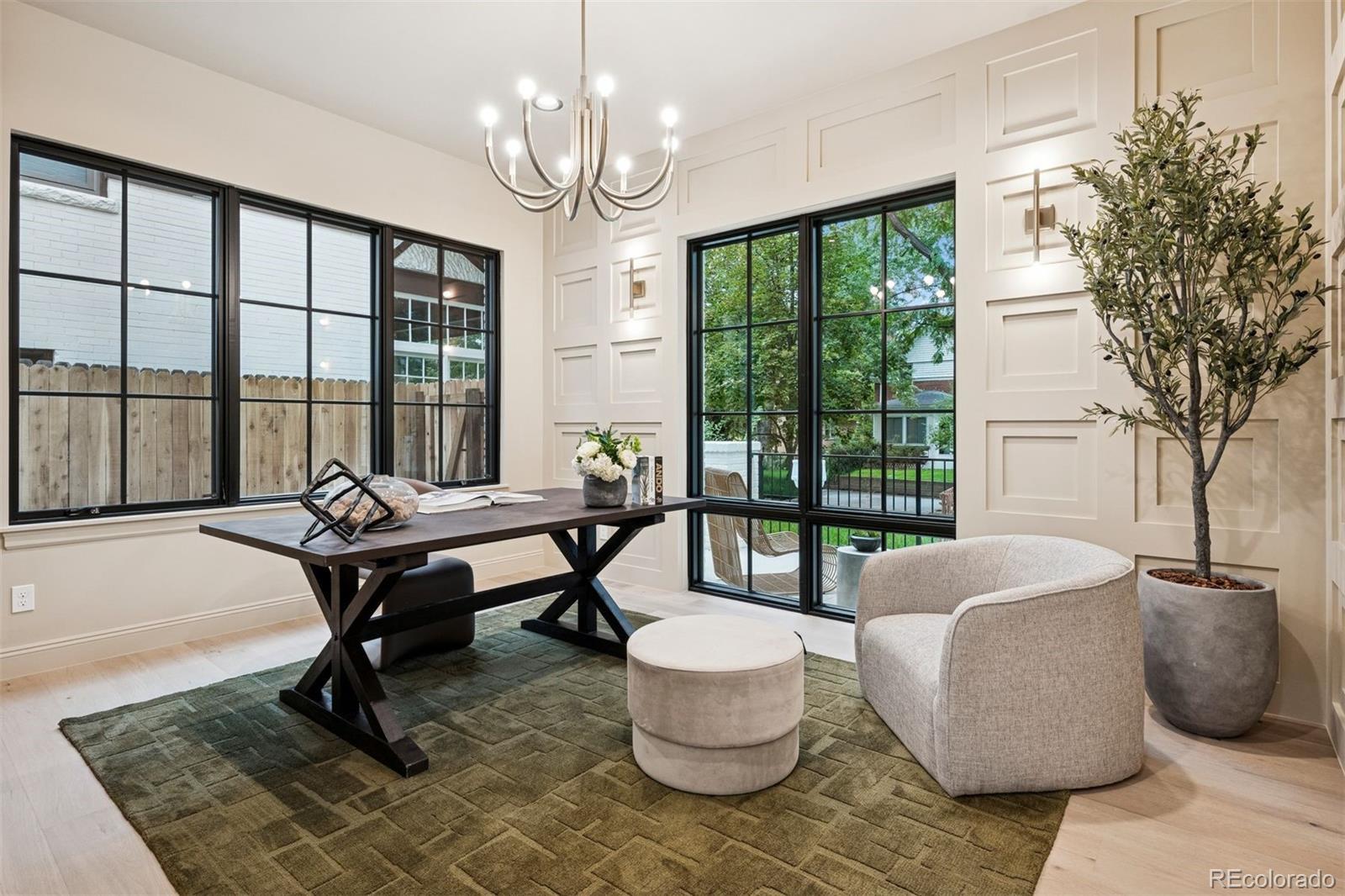 Exquisite NEW home in East Wash Park. Situated on a quiet tree-lined street ideally centered between Wash Park & the shopping and restaurants on S Gaylord. Transitional design with rich, layered textures that combine with an airy, organic feel. The main floor features a chef’s kitchen with Wolf & SubZero appliances, natural wood floors, a striking dining room surrounded by oversized windows, a custom fireplace mantle with an art TV, beautiful custom millwork, and a show-stopping floating staircase set against a dramatic wall of windows. A private home office color drenched with custom built-ins and a striking entryway, is the first impression. Upstairs, you’ll find four ensuite bedrooms, including a luxurious primary retreat with marble finishes, a soaking tub, oversized shower, and sophisticated gold fixtures. The fully finished basement offers soaring 11 ft+ ceilings, a spacious family room with space for a theater and game room, two additional bedrooms, and a full bath—perfect for guests or extended living. The basement offers a ton of flexibility for a home gym, pool table, or guest suite. The indoor-outdoor living is ideal in this home. Just a short stroll from Wash Park and the shops and dining along Gaylord Street, this home blends modern charm with everyday convenience in one of Denver’s most desirable neighborhoods.