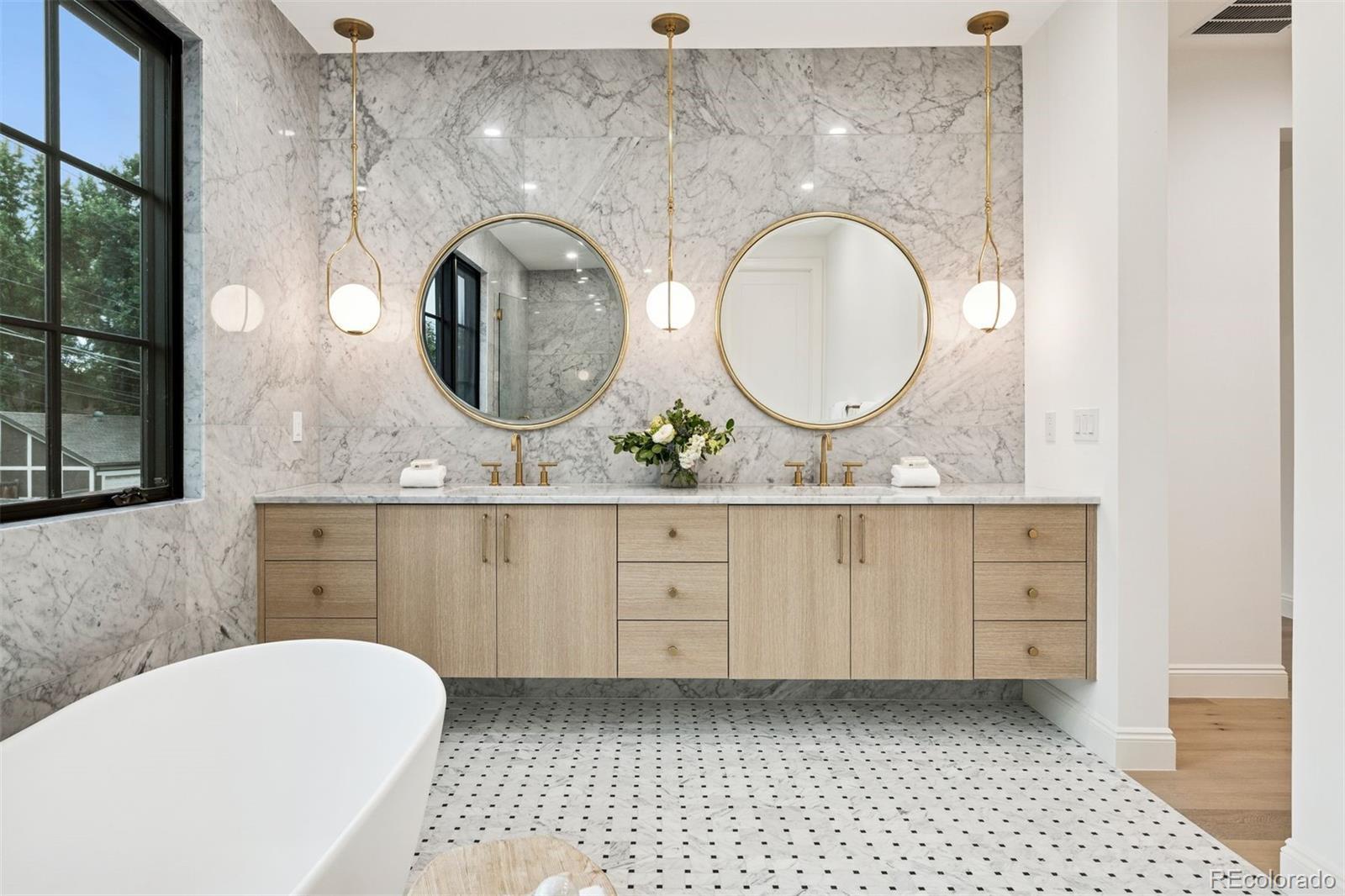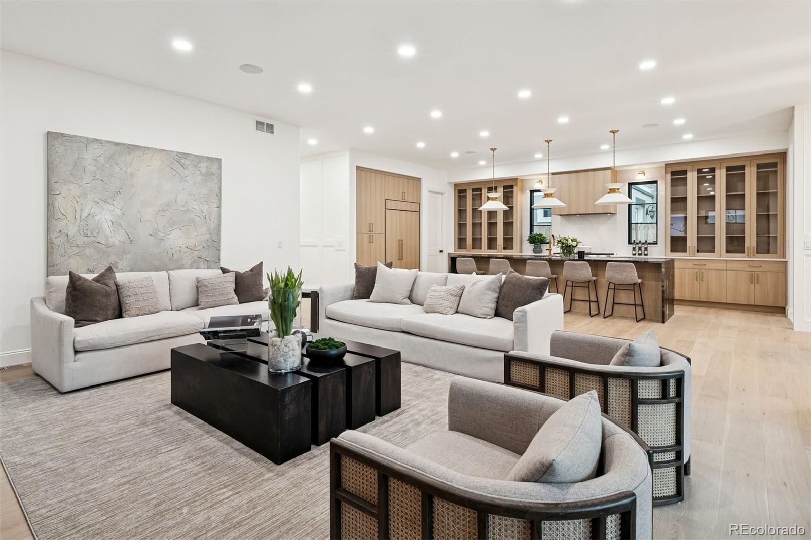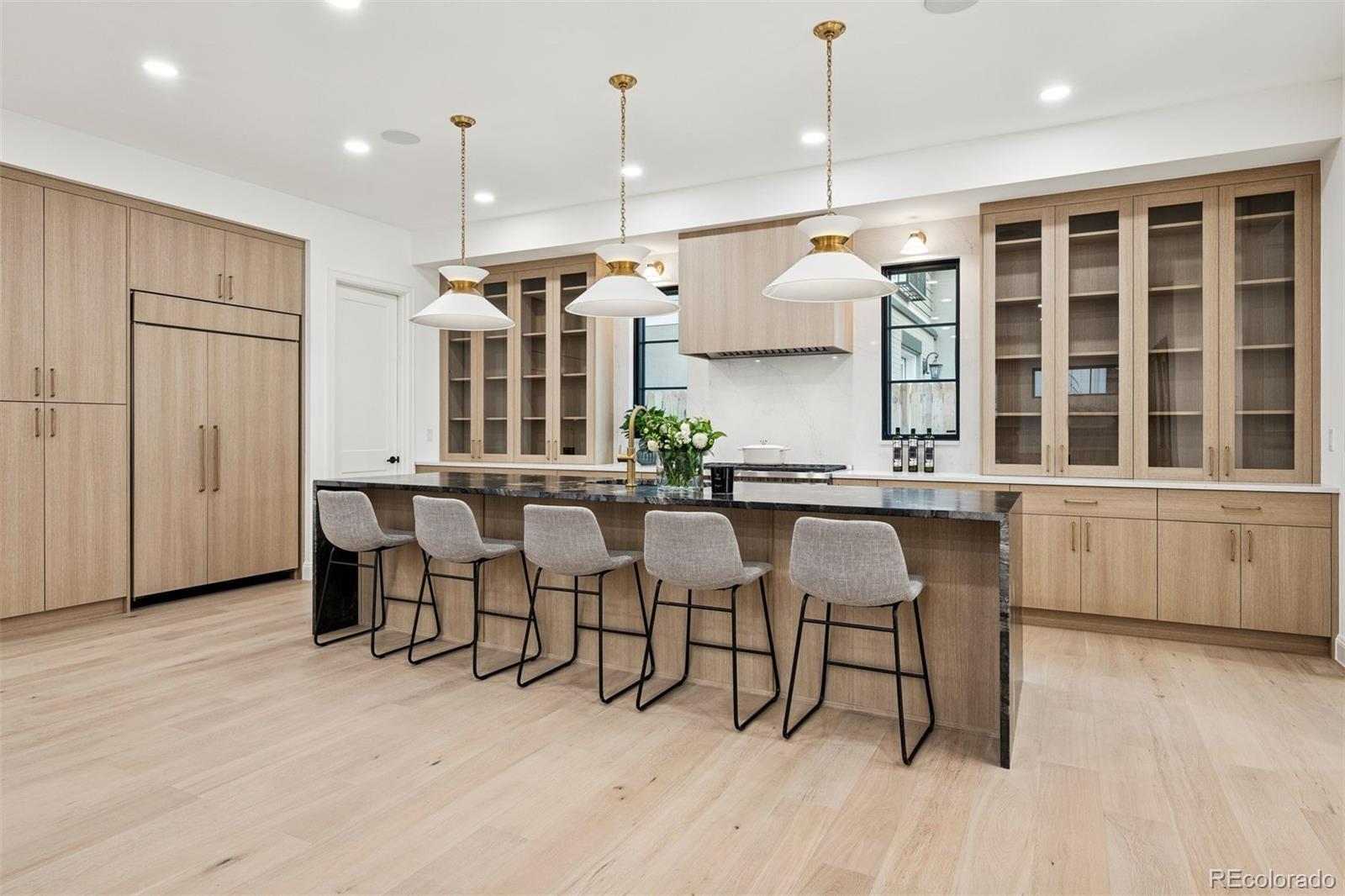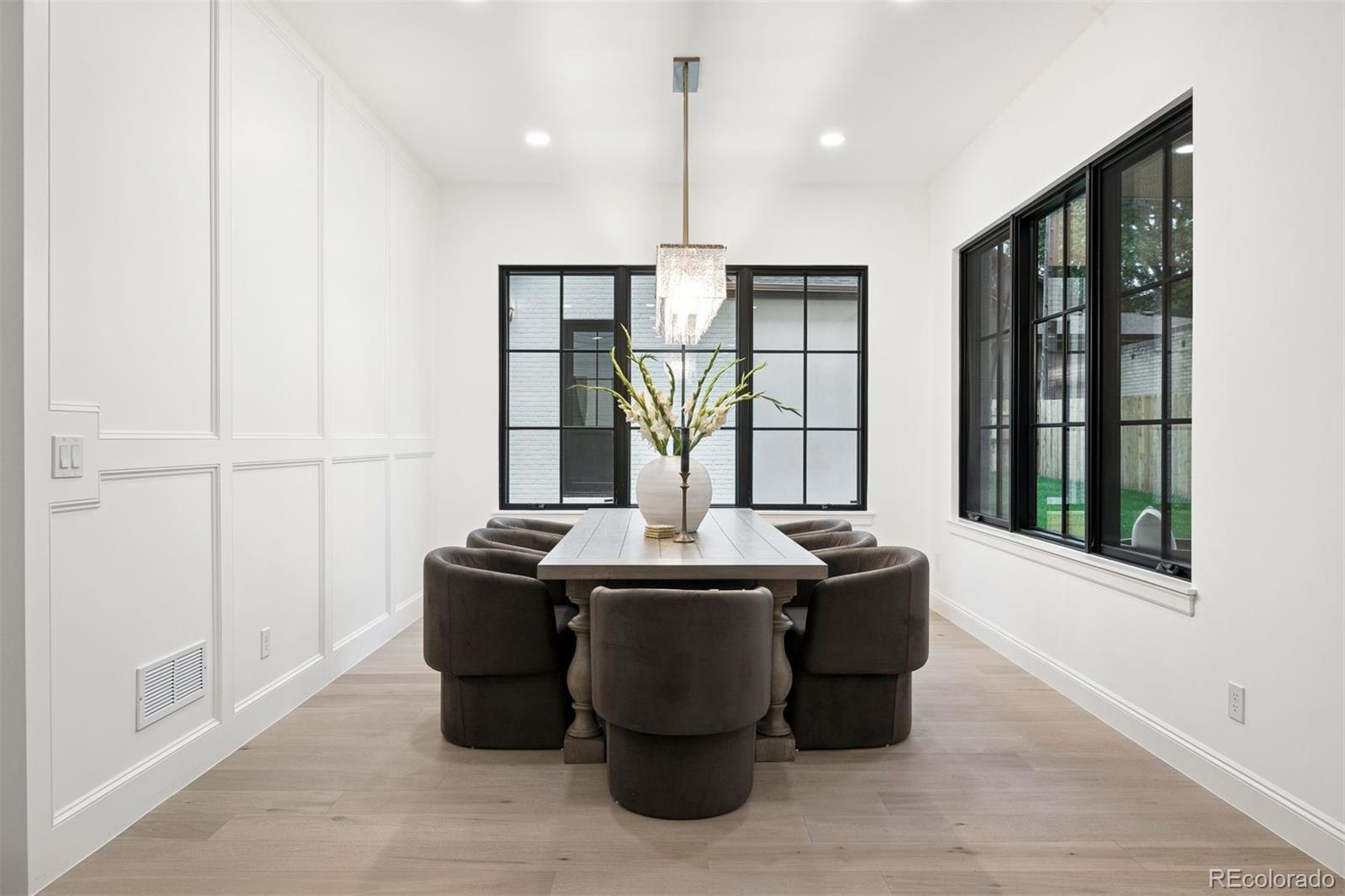 Exquisite NEW home in East Wash Park. Situated on a quiet tree-lined street ideally centered between Wash Park & the shopping and restaurants on S Gaylord. Transitional design with rich, layered textures that combine with an airy, organic feel. The main floor features a chef’s kitchen with Wolf & SubZero appliances, natural wood floors, a striking dining room surrounded by oversized windows, a custom fireplace mantle with an art TV, beautiful custom millwork, and a show-stopping floating staircase set against a dramatic wall of windows. A private home office color drenched with custom built-ins and a striking entryway, is the first impression. Upstairs, you’ll find four ensuite bedrooms, including a luxurious primary retreat with marble finishes, a soaking tub, oversized shower, and sophisticated gold fixtures. The fully finished basement offers soaring 11 ft+ ceilings, a spacious family room with space for a theater and game room, two additional bedrooms, and a full bath—perfect for guests or extended living. The basement offers a ton of flexibility for a home gym, pool table, or guest suite. The indoor-outdoor living is ideal in this home. Just a short stroll from Wash Park and the shops and dining along Gaylord Street, this home blends modern charm with everyday convenience in one of Denver’s most desirable neighborhoods.