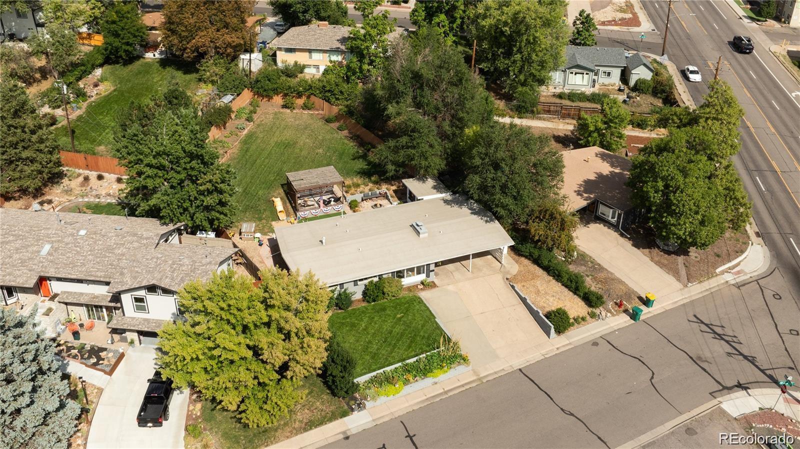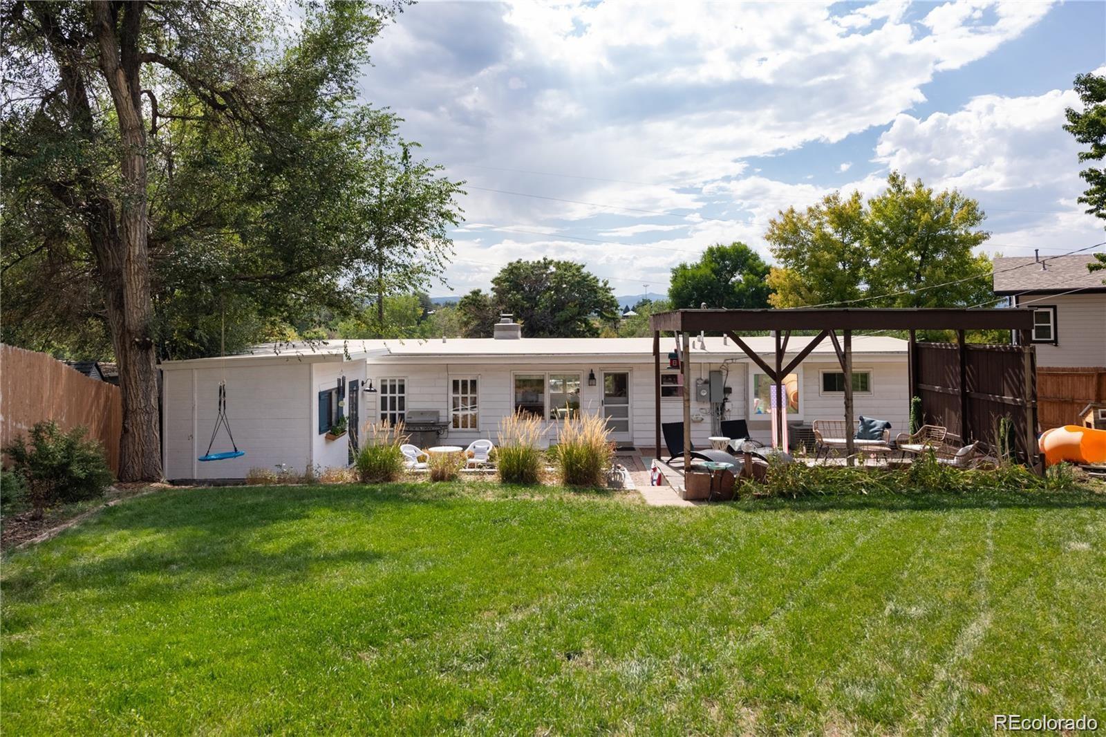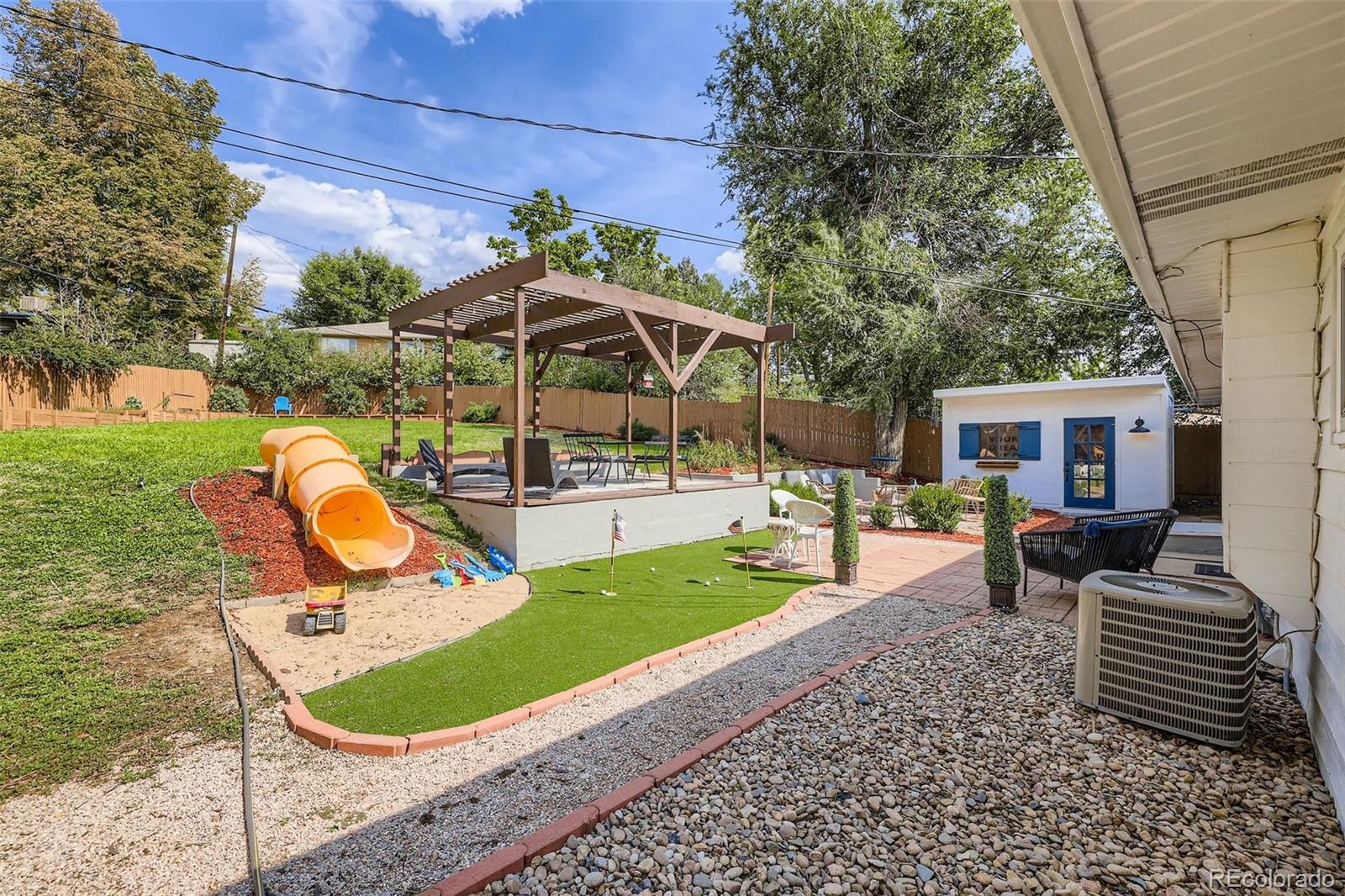 Welcome to 5080 S Inca Drive, a mid-century ranch that combines comfort, character, and location in the heart of Englewood. This 3 bedroom, 2 bath home offers 1,653 square feet of living space, and because it is all above grade, it feels even larger. One of the bedrooms is non-conforming, giving you flexibility for a guest room, studio, or workout space. Large windows fill the home with natural light and frame views of the mountains and colorful sunsets. A wood-burning fireplace anchors the living area and has been recently serviced. Updates include new herringbone brick flooring in the mudroom, a high-efficiency water heater, and a certified hail-resistant roof that can lower insurance costs. A detached home office of about 200 square feet provides a quiet space to work or create without leaving home. Set on more than a third of an acre, the outdoor living space is designed for both relaxation and fun. Enjoy evenings around the fire pit with built-in seating, practice on the private putting green, or spend afternoons in the garden and greenhouse. Kids will love the sandbox and water slide, while the large deck and patio are ideal for gatherings. Over 1,000 square feet of storage in the crawl space, with sections over five feet tall, keeps everything organized. The location adds to the appeal. Directly across the street is a park with a petting zoo, trails, playgrounds, pickleball courts, and Pirates Cove Water Park. The neighborhood hosts community events and festivals, and wildlife sightings are part of daily life. Downtown Littleton is within walking distance, and both Denver and the DTC are only a short drive or light rail ride away. This home offers a rare blend of indoor comfort, outdoor living, and community in a spot that is hard to beat.