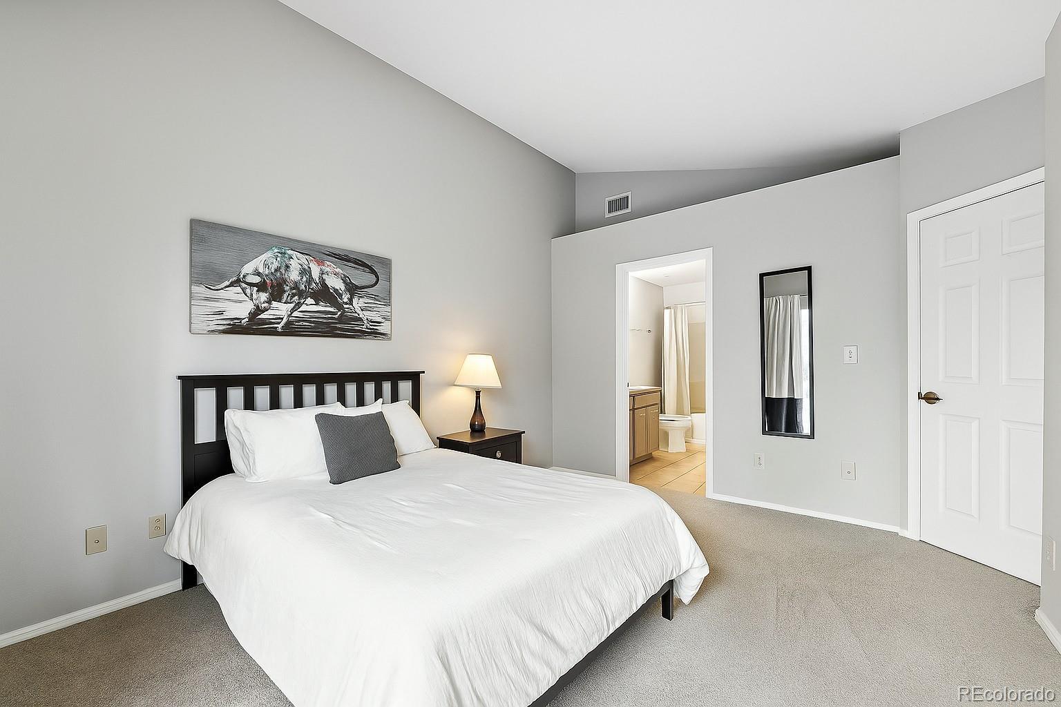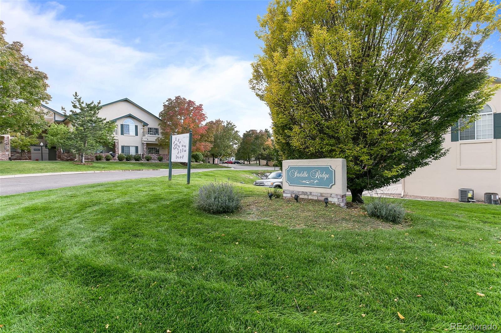 TOP CORNER CONDO WITH PRIVATE ATTACHED GARAGE, VAULTED CEILINGS, LARGE WINDOWS and BRAND NEW CARPET! Open and bright top floor END UNIT in Saddle Ridge boasts LARGEST floorplan 1 bedroom in the complex. VAULTED ceilings and large windows provide an open bright home that is cozy with a gas fireplace, ceiling fan. The kitchen has a PANTRY, NEW REFRIGERATOR, NEW DISHWASHER, large snack bar, plus stainless steel appliances and newly upgraded cabinets. Enjoy the vaulted ceilings in the primary bedroom and walk in closet plus a slider door out to a private balcony that extends your living space outdoors. A full-sized side-by-side washer and dryer is included. Safety and security for your vehicle, bikes, belongings. NO NEIGHBORS ABOVE. Very close to C-470 and Arapahoe Rd, with quick access to DTC and 1-25 commuting. Newly painted with quick possession. Affordable convenient living; this community has a range of amenities, including a clubhouse, pool, hot tub, and fitness center. Located within the desirable Cherry Creek School District and just a short drive from Park Meadows Mall and a variety of shopping. Quick possession.