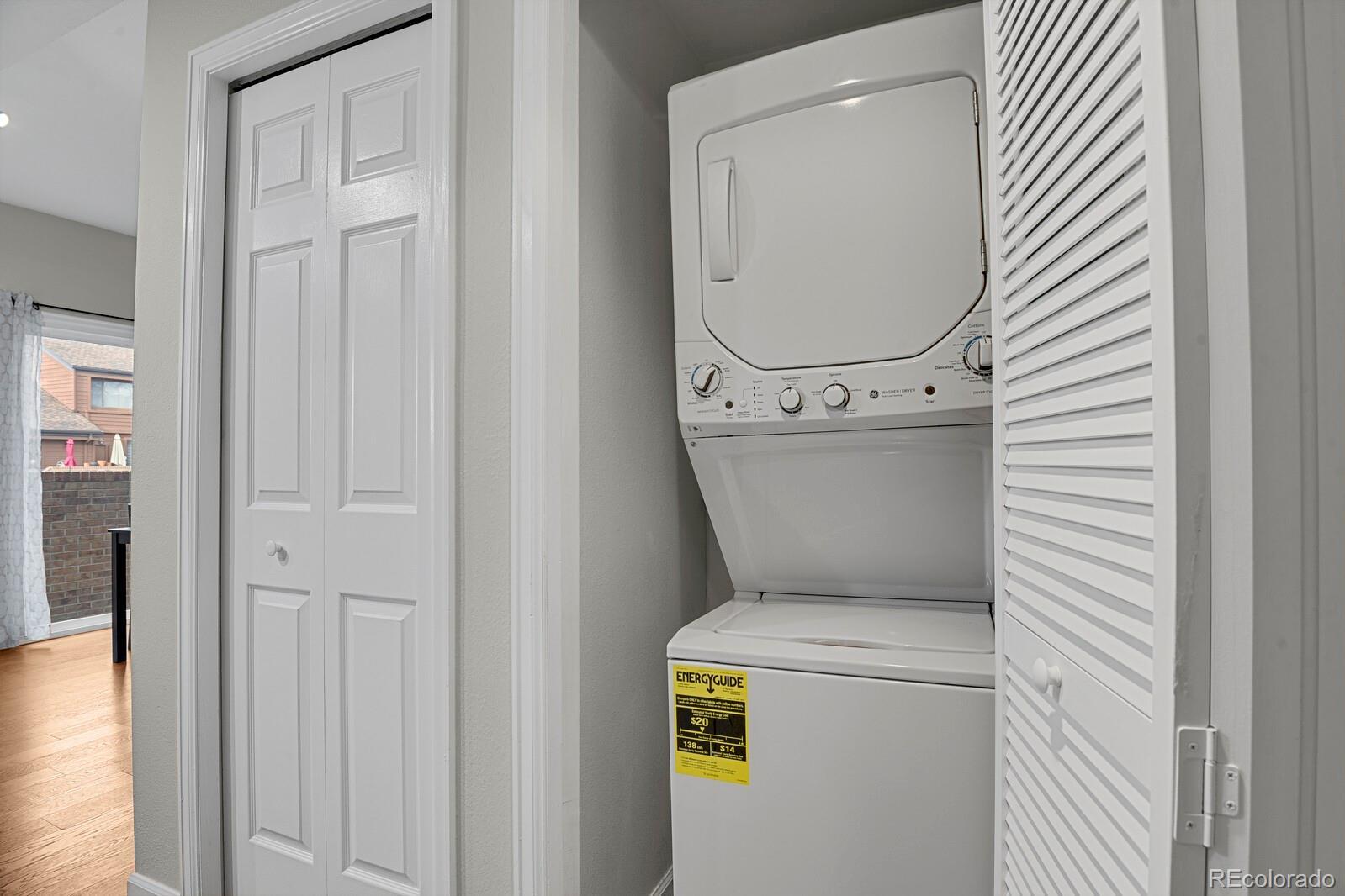 THIS PROPERTY IS FHA APPROVED! Welcome to Beaumont Place, where comfort meets convenience in this beautifully updated ground-level condo. Thoughtfully designed on a single floor, this one-bedroom, one-bath home combines warmth, charm, and easy living in one inviting package. This lovely homes also sports fresh paint throughout, brand new carpet, brand new washer/dryer/kitchen appliances. Step inside to a light-filled living room featuring real hardwood floors and a striking exposed wood beam that adds character and architectural appeal. A cozy wood-burning fireplace anchors the space, creating the perfect setting for relaxing evenings at home. The kitchen is both stylish and functional with granite tile counters, sleek new appliances, and ample cabinetry. The spacious bedroom offers a large walk-in closet and all windows are fitted with elegant upgraded shutters for privacy and light control. A few steps outside your door, the Beaumont Place community provides access to a sparkling pool and spa—ideal for unwinding or meeting neighbors. The location is a dream for outdoor enthusiasts, with the High Line Canal Trail, Kennedy Golf Course, and Cherry Creek Country Club all just a short stroll away. Restaurants, shops, and everyday conveniences are nearby, making this home an exceptional choice for those seeking lifestyle and location in equal measure. Discover easy living at its best—schedule your showing today.