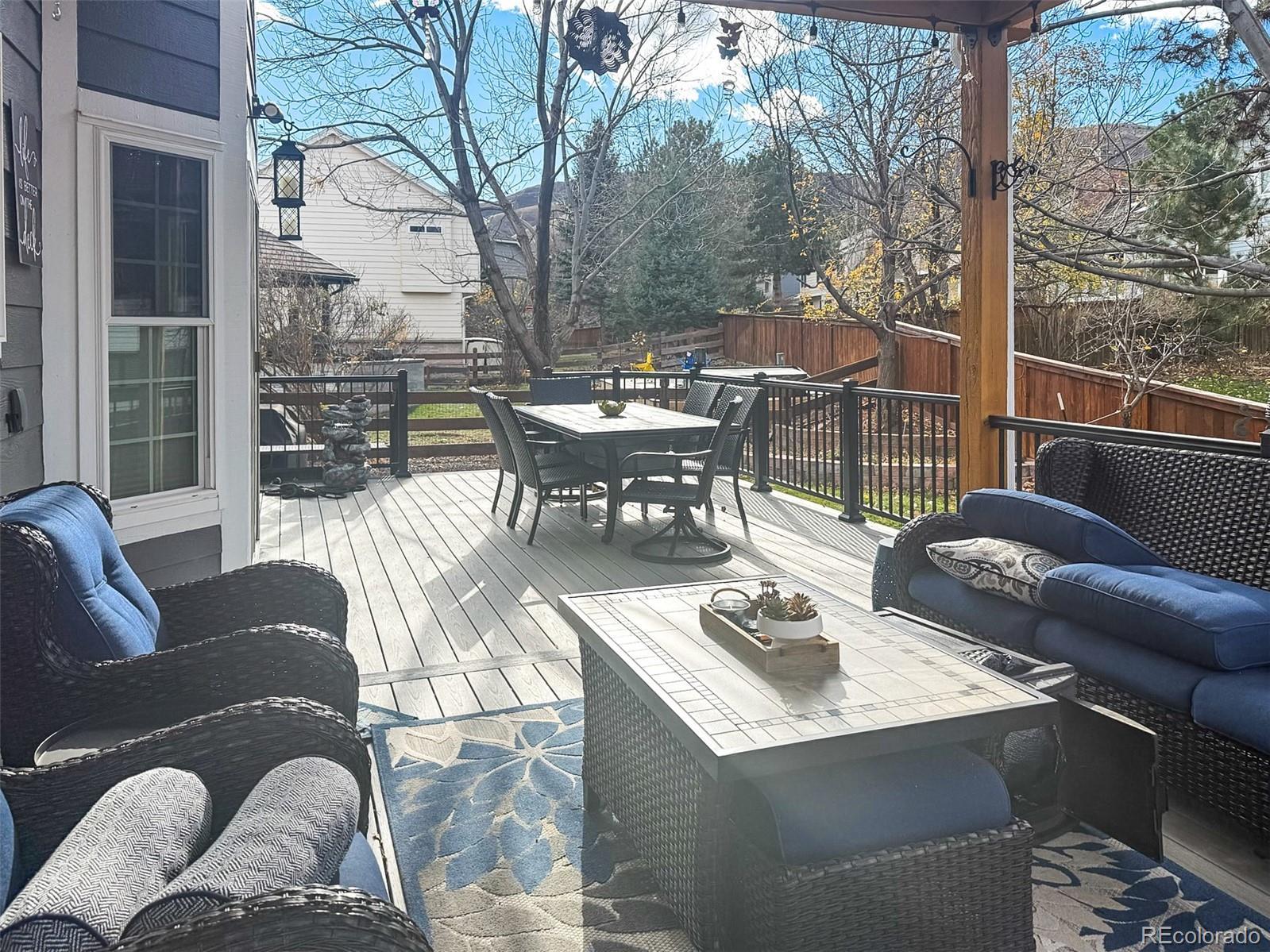Ken-Caryl at its finest - Immaculate and Updated home. This is the perfect family floor plan with a large family room open to the kitchen, 4 bedrooms on the upper level, 5 baths total, Finished garden level basement with 3/4 bath, bedroom, mother-in-law space and huge storage. This home is a rare and unique floor plan for Ken-Caryl - built after all the homes neighboring it, which makes it feel semi-custom. Outdoor living space includes a Custom built covered deck in 2021 with lighting, fan and privacy/sun shade. In addition to this you must see the custom stamped concrete path and patio (total back yard improvements exceed $50K in upgrades)! Check this feature list: Brand new Furnace, A/C and hot water heater. Hardwood floors on main level. New fireplace and stone surround. Attic fan, ceiling fans in most rooms. Upgraded kitchen cabinets, quartz counters, marble tile backsplash, New black stainless steel appliances. Flooring on second level 2019. ALL New windows 2015 and 2019. New blinds 2019. Top of line Tuff shed (deluxe man shed with tool bench!) $5000 2020. Large under deck storage space added with new outdoor space. New garage doors with windows 2022. Exterior painted and new leaf filter gutter protection 2022. Kitchen and bath remodels 2022. Master bath refresh 2020.