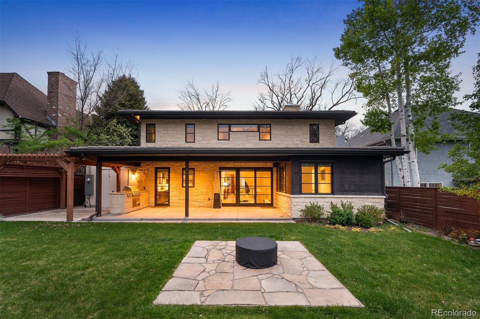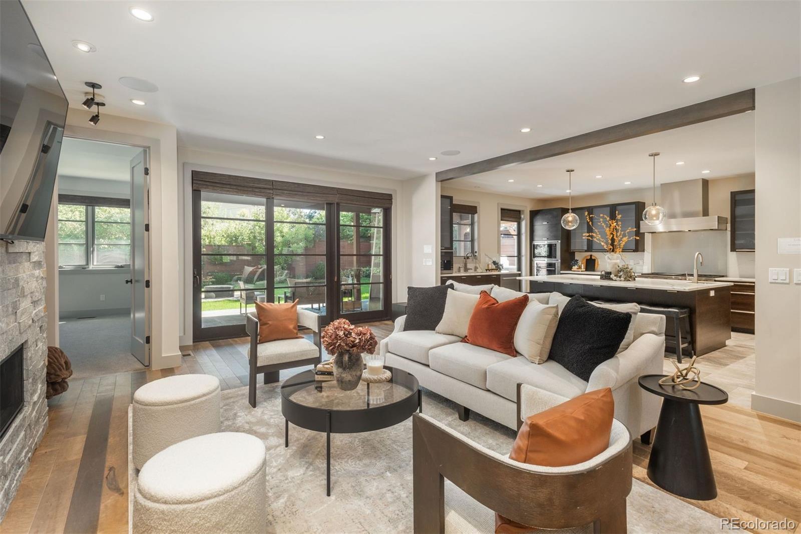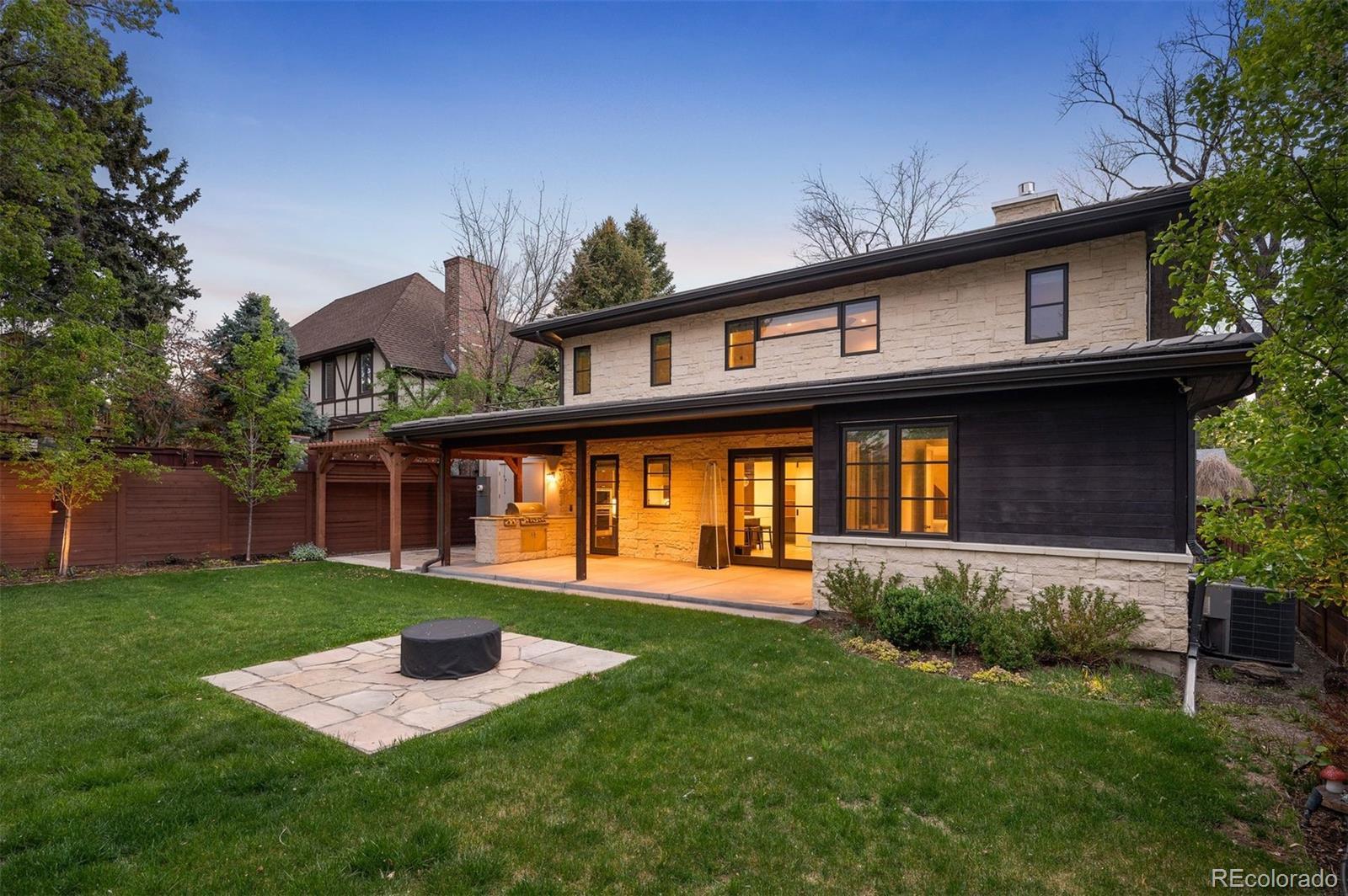 Experience elevated modern luxury in this custom 6-bed, 6-bath residence set in Denver’s prestigious Hilltop neighborhood. Showcasing striking architecture, high-end finishes, and advanced smart-home integration, this home delivers exceptional design and effortless living. A sleek wood entry, fully fenced front yard, and clean contemporary lines make a bold first impression. Inside, soaring ceilings, wide-plank hardwood floors, and a dramatic open staircase set the tone for the bright, sophisticated layout. The chef’s kitchen is a true centerpiece with Wolf and Sub-Zero appliances, Quartz countertops, custom cabinetry, a Miele coffee station, touchless fixtures, and a spacious walk-in pantry. The kitchen flows seamlessly into the sun-filled family room featuring a linear fireplace and access to the private backyard retreat. Outdoor living shines with a covered patio, outdoor fireplace, pergola, firepit lounge, and professional landscaping—perfect for year-round entertaining. The main level also includes a private guest suite with its own bath, ideal for visitors or multi-generational living. Upstairs, the luxurious primary suite offers a serene escape with a fireplace, balcony, dual closets, and a spa-style bath complete with a Victoria + Albert soaking tub, heated floors, and oversized rain shower. Three additional bedrooms, two full baths, and a convenient laundry room complete the upper level. The finished lower level expands your living space with a custom wet bar, wine room, media area, guest suite, and ¾ bath—perfect for hosting or unwinding. Additional features include whole-home automation for lighting, entry, and security, plus a 3-car tandem garage with EV charging. Close to Cherry Creek, neighborhood parks, and the Denver Tennis Club, this Hilltop residence offers an exceptional blend of luxury, function, and contemporary design.