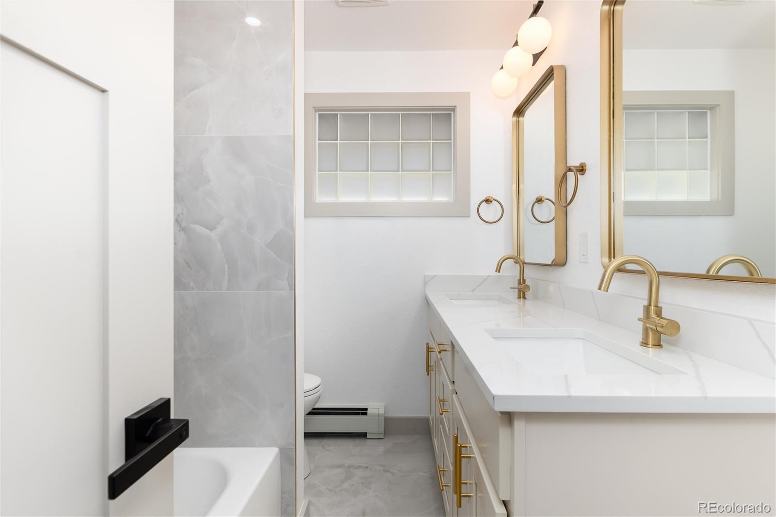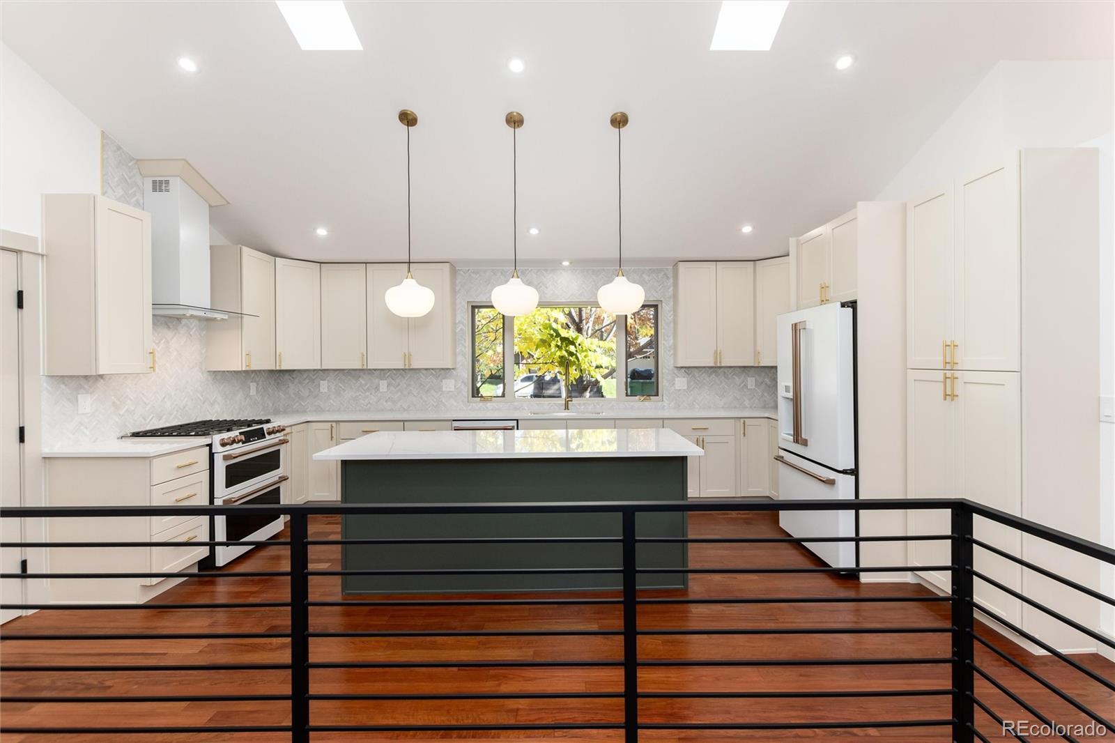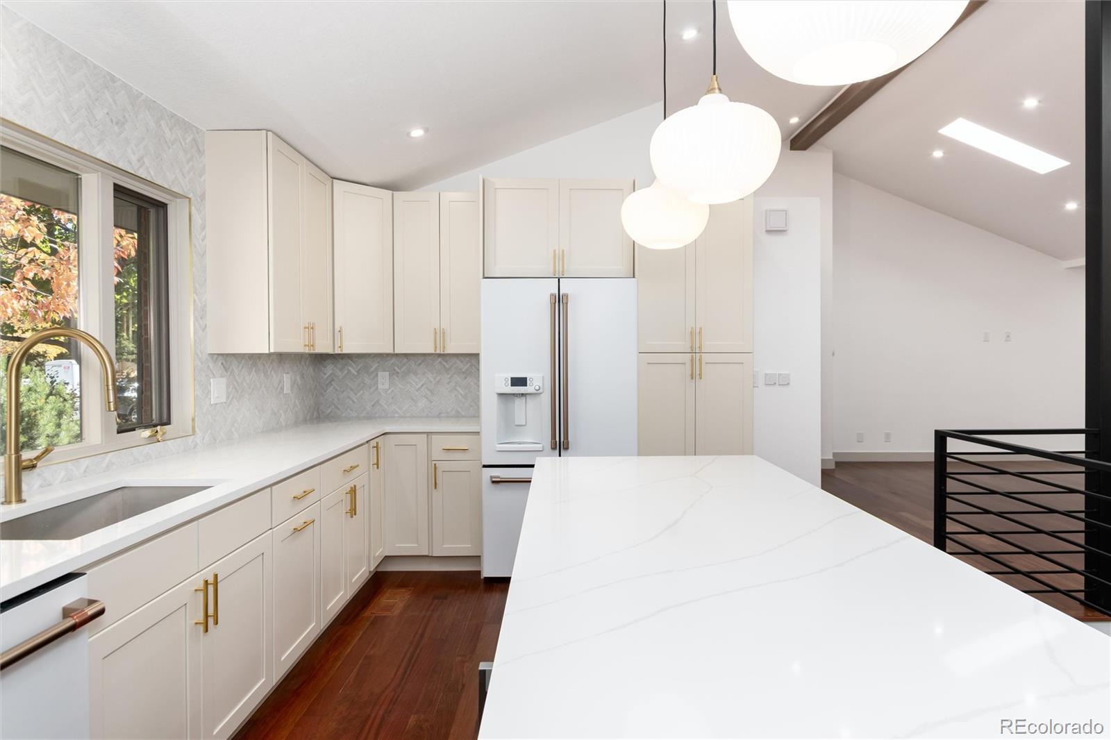 Don’t miss this fully permitted, professionally remodeled home in the heart of the coveted Wellshire neighborhood, just two minutes from award-winning Slavens K-8! Set on a beautifully landscaped lot with mature trees, this bright and spacious ranch combines timeless elegance with modern comfort. The open floor plan features vaulted ceilings, new skylights, and abundant natural light that flows seamlessly throughout the home. Every system is new—including the furnace, A/C, electrical panel, electrical system, roof, sewer line, plumbing, kitchen, bathrooms, and basement, ensuring true move-in readiness. At the heart of the home, the stunning kitchen showcases custom cabinetry, quartz countertops, and high-end appliances. The main-floor primary suite offers a walk-in closet and a luxurious en-suite bath with dual vanities and a custom glass shower. The dining room opens directly to the backyard, creating effortless indoor-outdoor living with access to the covered patio and private yard—perfect for entertaining or relaxing. Two additional bedrooms, a remodeled full bath, and a powder room complete the main level. The fully finished basement expands the living space with a large recreation room featuring egress windows and a wet bar—ideal for movie nights or gatherings. Two conforming bedrooms with egress windows, a beautifully updated full bath, and a dedicated laundry room with a new washer, dryer, and utility sink complete the lower level. Enjoy quiet Colorado evenings on the covered patio surrounded by fresh landscaping and a fully fenced yard. A two-car garage with an EV charger adds both convenience and storage. Located near Wellshire Golf Course, the High Line Canal, Cherry Creek, and the Denver Tech Center, this one-of-a-kind home offers design-forward living in one of Denver’s most desirable neighborhoods.