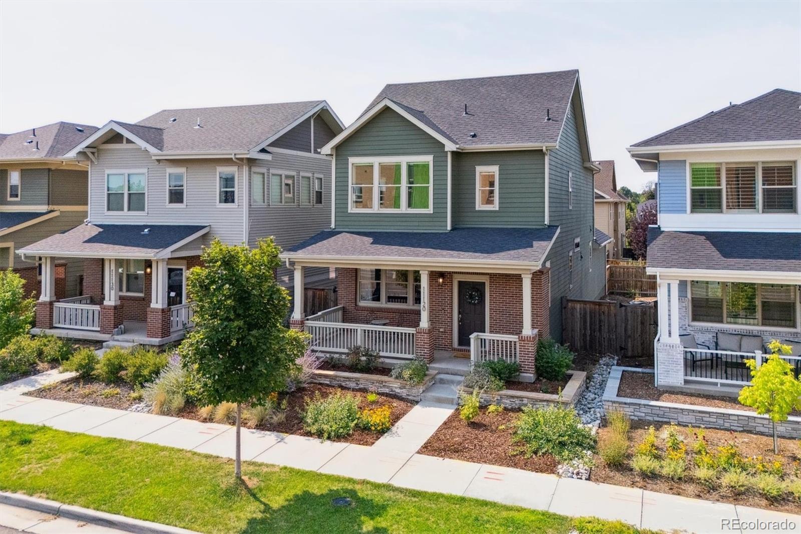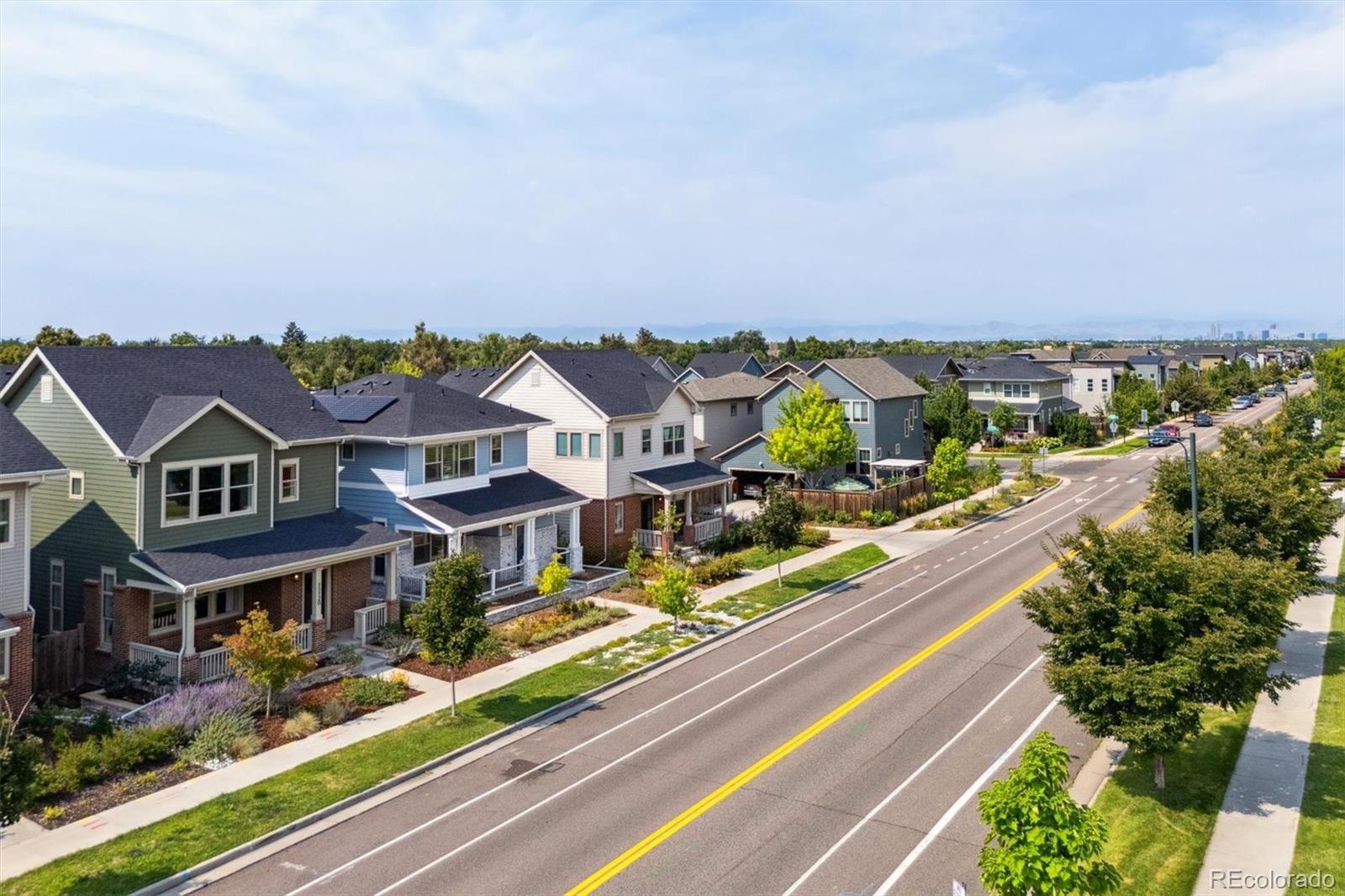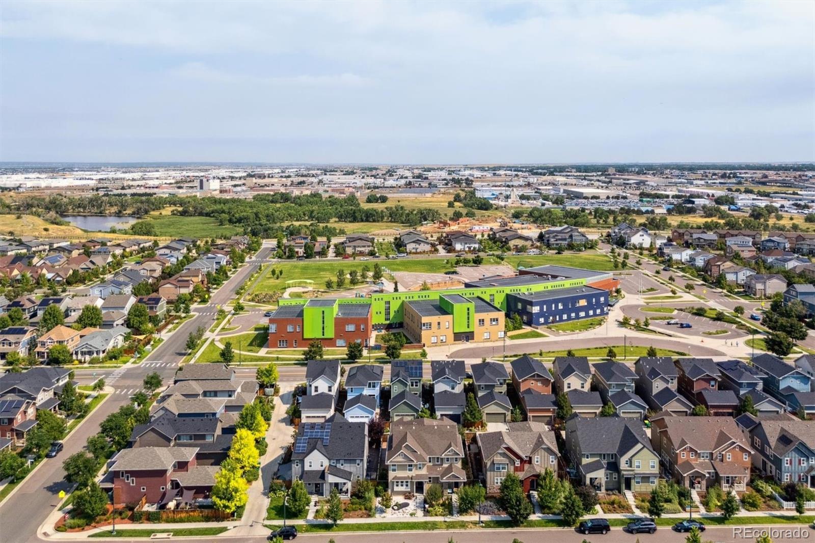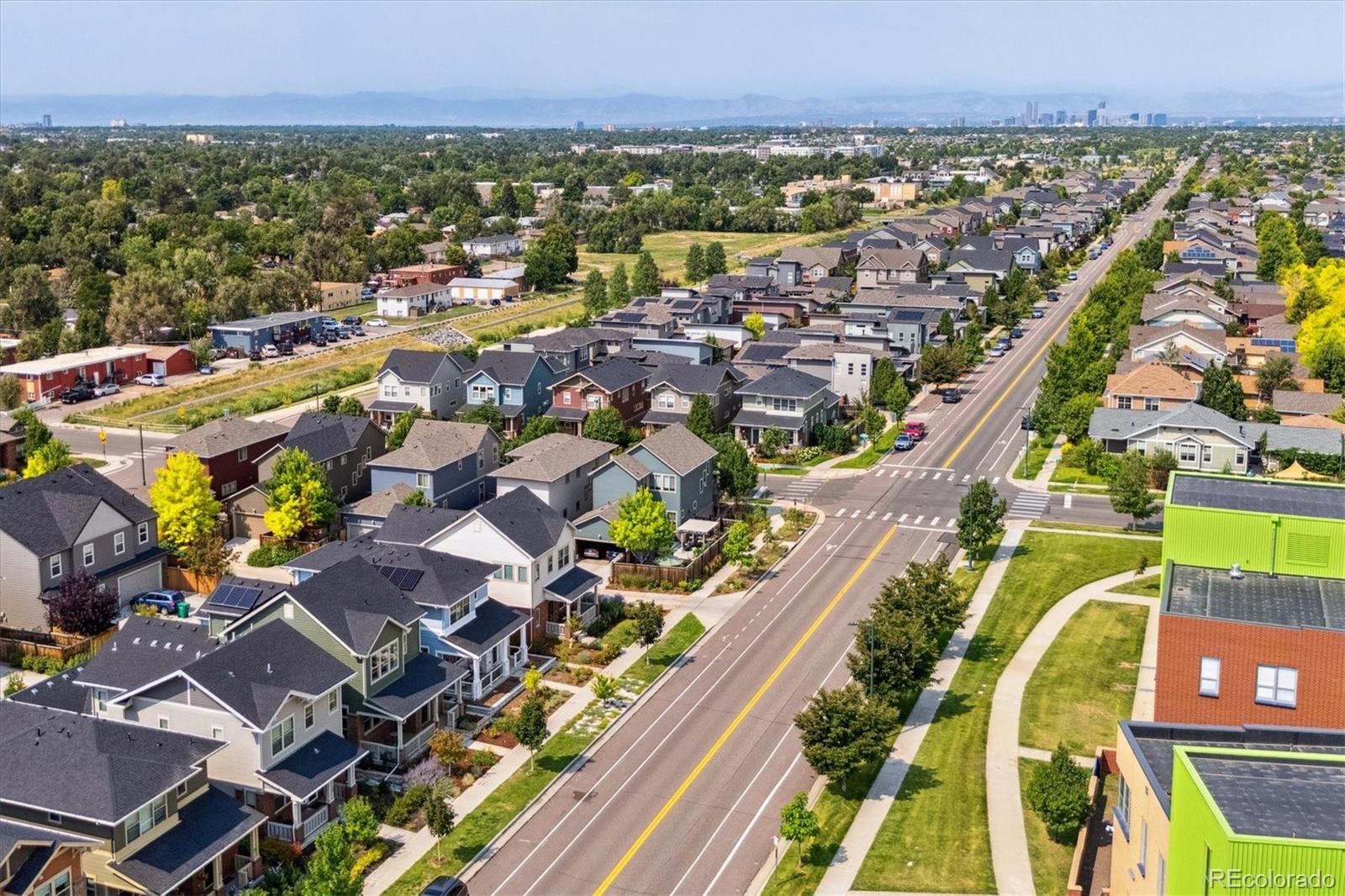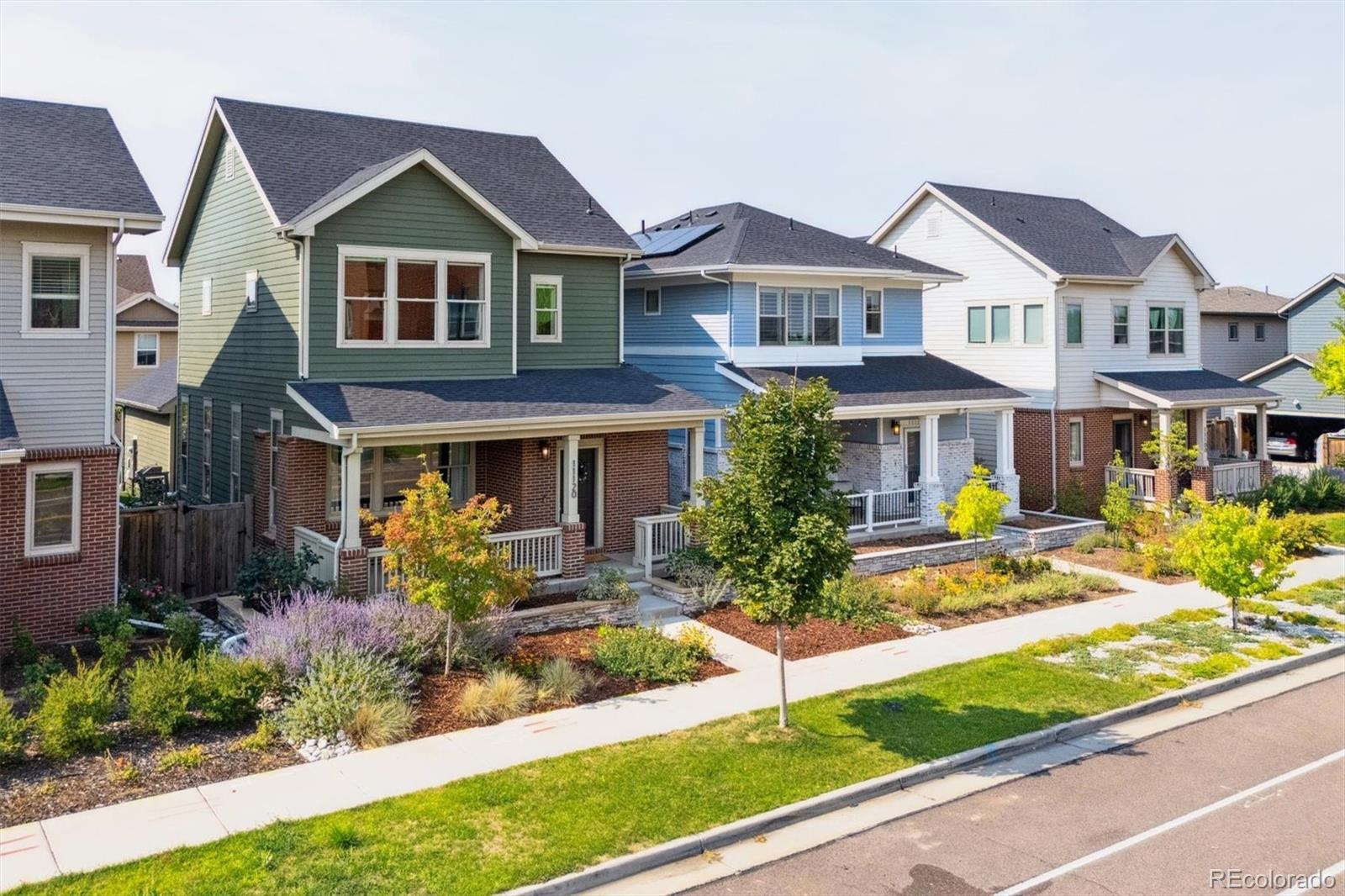 Embrace a lifestyle where sustainability meets sophistication. This meticulously designed green energy Central Park residence offers the perfect blend of eco-conscious living and modern amenities. From the moment you arrive and approach the cozy front porch to coming inside to see the designer upgrades you know you are in a special place. The main level that is bright and open with a fantastic kitchen area offers seamless indoor outdoor living. The expanded private patio and yard with turf grass and raised garden beds provides an out door oasis. Upstairs this home features a spacious primary suite with walk-in closet and gorgeous bathroom plus 2 more bedrooms and additional bathroom feature custom touches like built-in shelving and an upstairs laundry room to make your everyday life as convenient as possible. The fully finished basement adds additional living options, with a versatile family room, an additional bedroom with murphy bed, plus built-in storage or dry bar area, a convenient storage area or play room under the stairs and a full bathroom. Achieving LEED certification, this home boasts solar power integration, ENERGY STAR appliances, and advanced insulation, ensuring reduced utility costs and a minimal carbon footprint. In addition to the efficiencies this home is a healthy home with active radon mitigation system and whole house air purifier. Located across from Isabella Bird Community School which offers a gifted and talented program and situated in the vibrant community near the Stanley Marketplace, Eastbridge Town Center’s shops and restaurants, Bluff Lake Nature Center and Central Park. Plus this home offers easy access to Anschutz Medical Center, Children’s Hospital and so much more including I-70, I-225, and Denver International Airport (DIA). Commuting and exploring in Central Park couldn’t be more convenient.