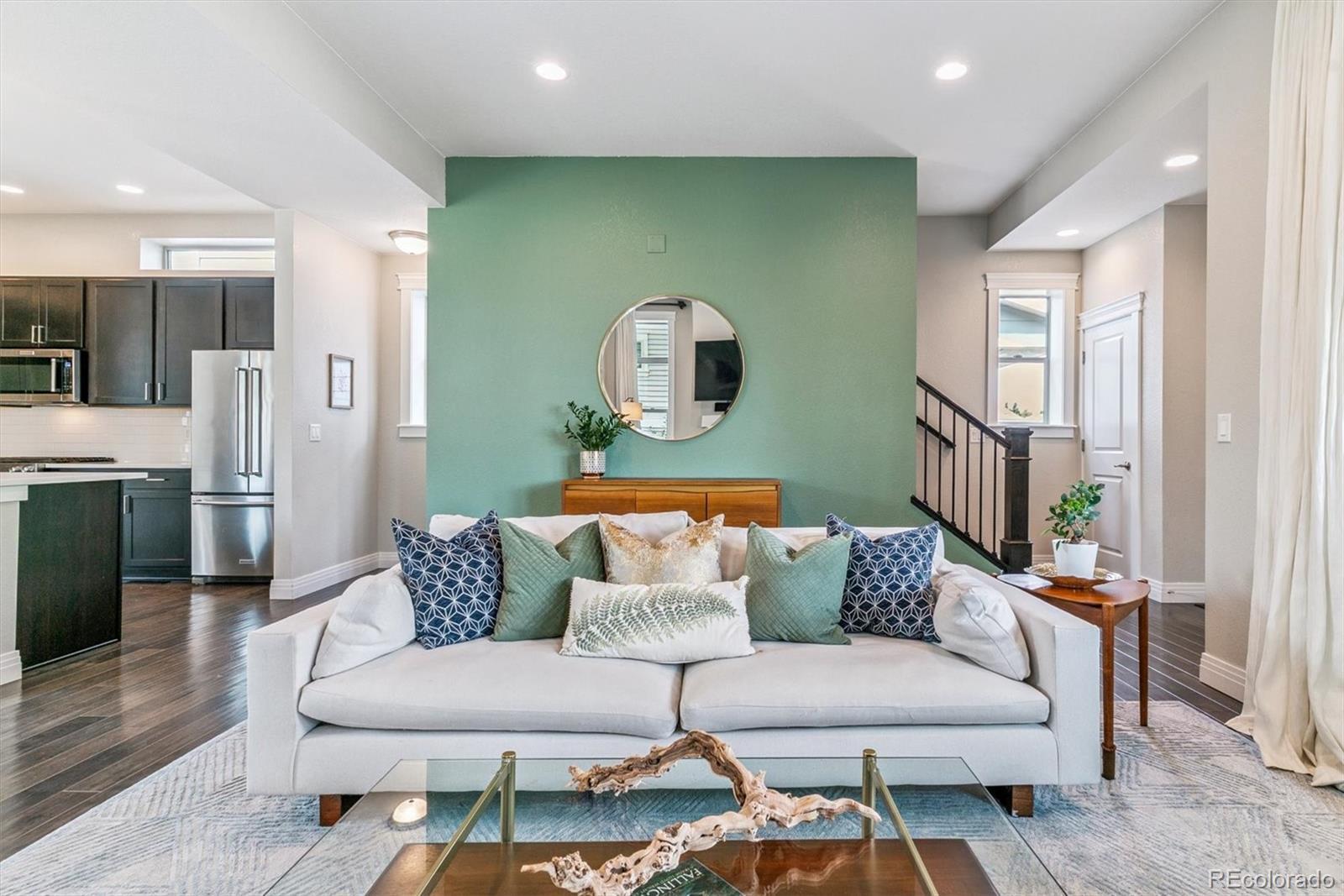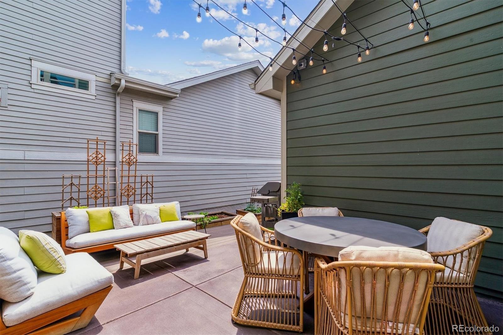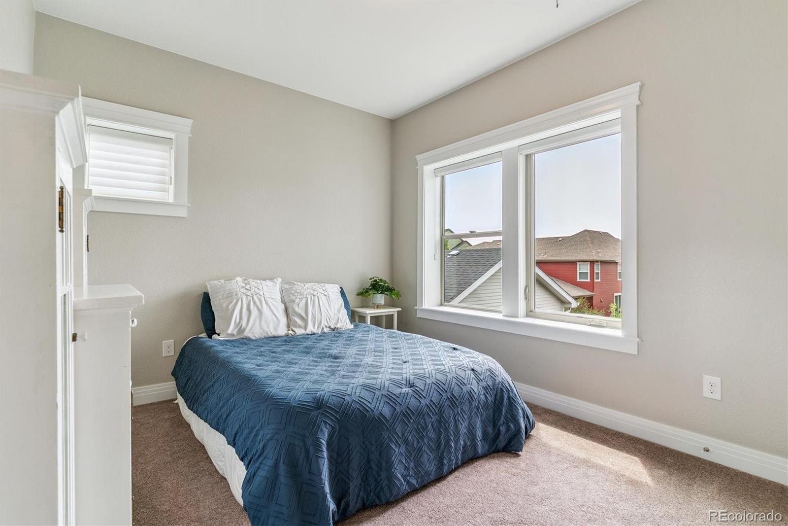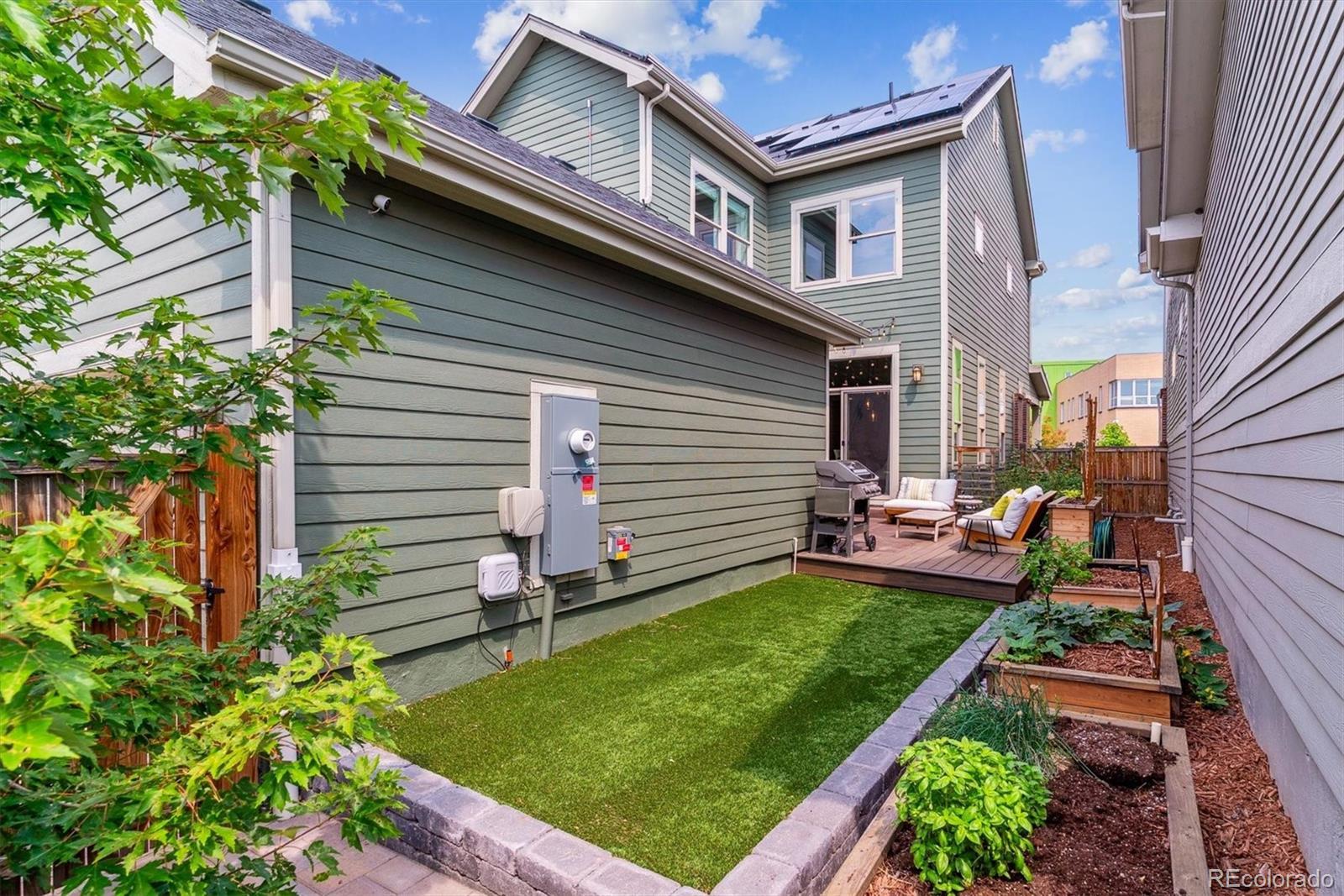 Embrace a lifestyle where sustainability meets sophistication. This meticulously designed green energy Central Park residence offers the perfect blend of eco-conscious living and modern amenities. From the moment you arrive and approach the cozy front porch to coming inside to see the designer upgrades you know you are in a special place. The main level that is bright and open with a fantastic kitchen area offers seamless indoor outdoor living. The expanded private patio and yard with turf grass and raised garden beds provides an out door oasis. Upstairs this home features a spacious primary suite with walk-in closet and gorgeous bathroom plus 2 more bedrooms and additional bathroom feature custom touches like built-in shelving and an upstairs laundry room to make your everyday life as convenient as possible. The fully finished basement adds additional living options, with a versatile family room, an additional bedroom with murphy bed, plus built-in storage or dry bar area, a convenient storage area or play room under the stairs and a full bathroom. Achieving LEED certification, this home boasts solar power integration, ENERGY STAR appliances, and advanced insulation, ensuring reduced utility costs and a minimal carbon footprint. In addition to the efficiencies this home is a healthy home with active radon mitigation system and whole house air purifier. Located across from Isabella Bird Community School which offers a gifted and talented program and situated in the vibrant community near the Stanley Marketplace, Eastbridge Town Center’s shops and restaurants, Bluff Lake Nature Center and Central Park. Plus this home offers easy access to Anschutz Medical Center, Children’s Hospital and so much more including I-70, I-225, and Denver International Airport (DIA). Commuting and exploring in Central Park couldn’t be more convenient.